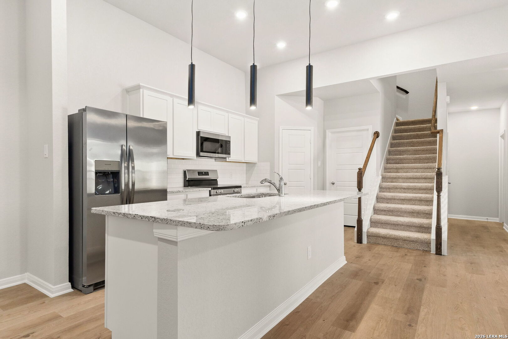 Move in ready, newly built 4-bedroom, 2.5-bath luxury duplex with primary suite downstairs! Enjoy an open concept kitchen and living area, perfect for everyday living and entertaining. Step outside to a covered patio and private outdoor space. Conveniently located near Potranco Elementary and Loma Alta Middle School, shopping, dining, and major roads. Schedule your showing today!