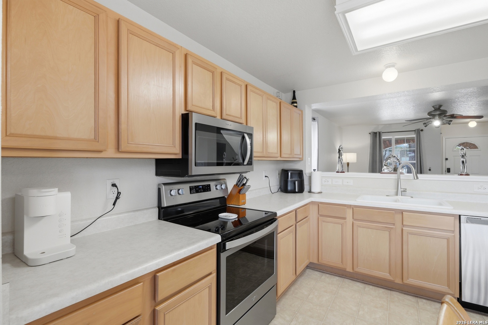 Bright, welcoming, and clearly well cared for, this beautiful two-story home sits on a cul-de-sac lot with a convenient location close to Loop 410 and Bandera Road that makes commuting, shopping, and dining around San Antonio/Medical Center simple and accessible. Pride of ownership shows throughout, with the home thoughtfully maintained by only ONE OWNER! This 3 bedroom, 2.5 bath home offers a layout designed for both everyday living and gathering, with just the right amount of space for everyone. The kitchen overlooks the main living area and features plenty of counter space, ample cabinetry, and enough space for the eat-in dining area; creating a comfortable, open space that naturally becomes the heart of the home. Natural light fills the living areas, helping the home inviting. Upstairs, all bedrooms are thoughtfully arranged, offering privacy from the main living spaces. The primary suite provides a relaxing retreat with its own ensuite bath, while the secondary bedrooms are comfortably sized with great closet spaces. Due to the cul-de-sac lot, the property offers a little extra breathing room compared to many nearby homes. The backyard provides a great space to relax or entertain. Additional highlights include a garage EV charger for electric vehicle owners and the clear care and attention the homeowner has invested in maintaining the property. Don't miss your chance to see this home for yourself and imagine making it your next Home Sweet Home.
