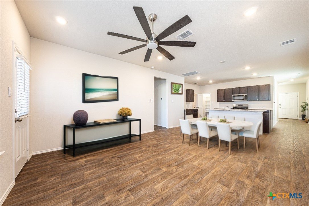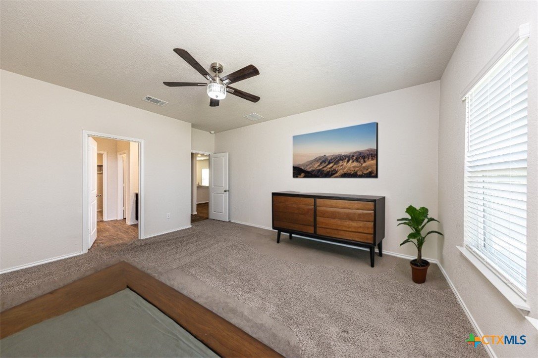 Discover your dream home! This spacious 2,043 sqft gem boasts 4 bedrooms and 2.5 baths, nestled in the vibrant community of Riverstone at Westpointe. This subdivision is filled with amenities that must be seen to be believed! Step inside and be captivated by the open-concept main floor, perfect for entertaining. The large kitchen features a convenient eat-in island, ideal for casual meals or afternoon gatherings. The primary bedroom, also located on the main level, offers convenience and the bathroom features a good size walk-in shower,, along with a generous walk-in closet. Head upstairs to find a fantastic game/family room, designed for fun and relaxation. The additional bedrooms are spacious and well-proportioned, each with ample closet space. Outside, unwind on the lovely covered patio that overlooks a tranquil green belt, providing a serene backdrop and extra privacy in your backyard oasis. Additional features include gas cooking, a security system, and an efficient sprinkler system to simplify your life. This home combines comfort, style, and practicality, making it a perfect choice for your family.