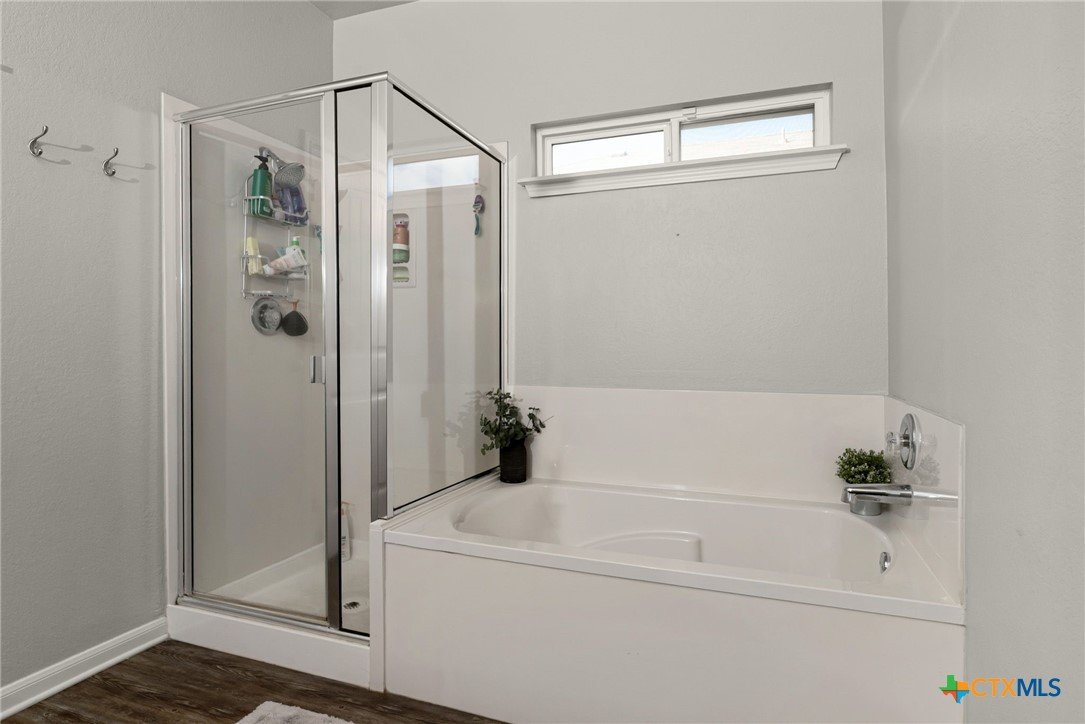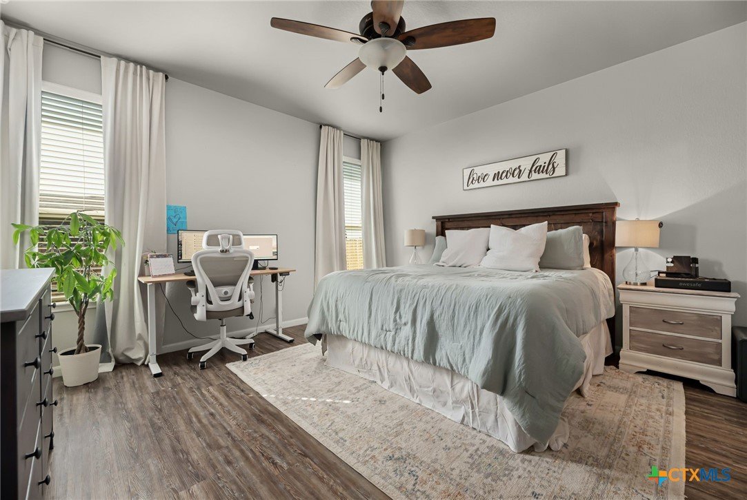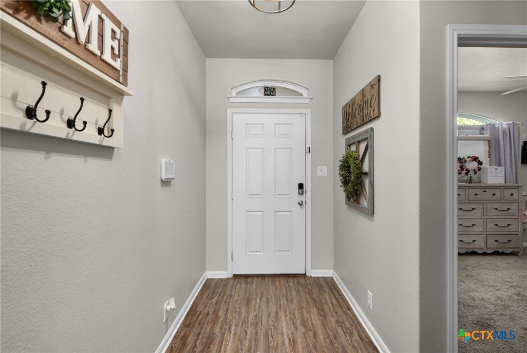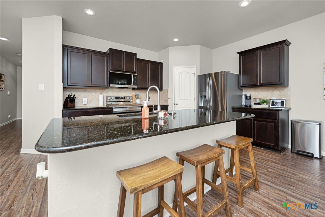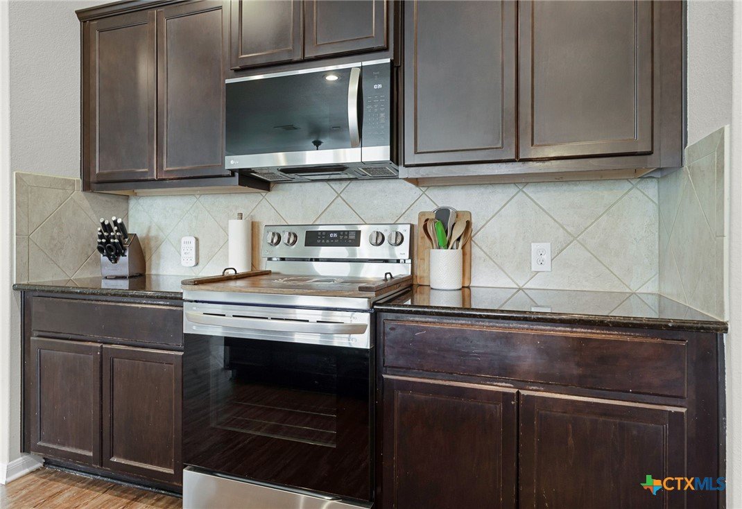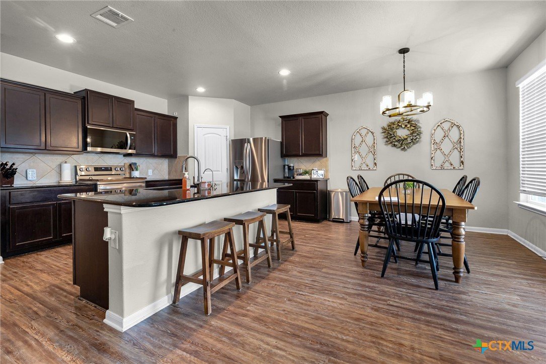 This 3 bedroom 2 bath home resides on a corner lot within the Saengerhalle community. This is a short drive to downtown New Braunfels, IH 35, Creekside, and IH10. This open concept design features an island kitchen, stainless LG appliances, granite counters, upgraded laminate/wood flooring, and plenty of outdoor living space with the additional 10 x 20 covered patio. The owner's suite features a walk-in closet, double vanity, and separate tub/shower.