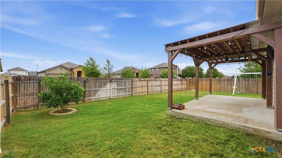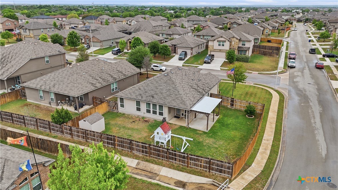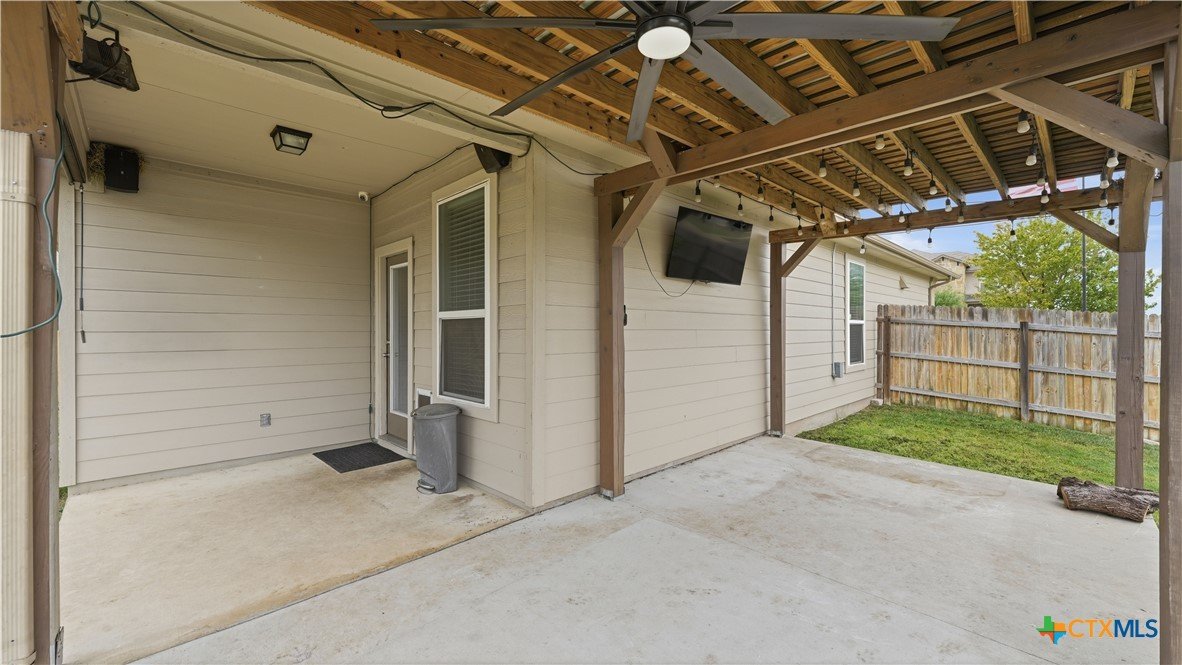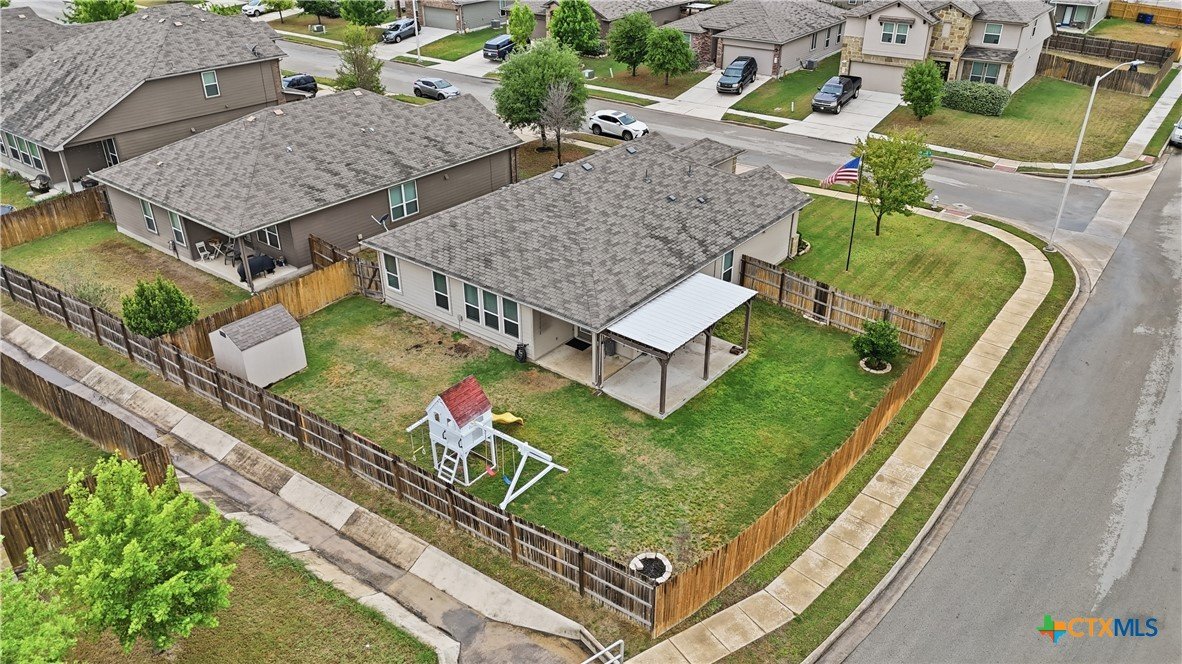 This BEAUTY is move-in READY and waiting for its new owners !! With this CORNER LOT, you will have one of the largest backyards in the subdivision as the fence has been extended 26' for added security and outdoor living space! Add to that a 10 x 20 covered patio with ceiling fan, an 8 x 10 shed for extra storage and irrigation system. *Playscape is negotiable! The open floor plan allows plenty of space for entertaining while having a very cozy feel. The kitchen has a garden sink with 2 stage water filter, newer stainless LG appliances (refrigerator can convey), granite counters, and an island for casual dining. Interior upgrades include lighting, fixtures, ceiling fans, recently painted walls, laminate wood flooring, new water heater, and purchased water softener. Enjoy added privacy afforded by the split floor plan. Located in a smaller, quiet subdivision, you will be close to shopping, dining and entertainment so that you can enjoy the big city life with the small town feel of beautiful New Braunfels, Texas!