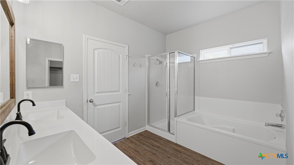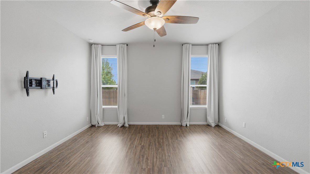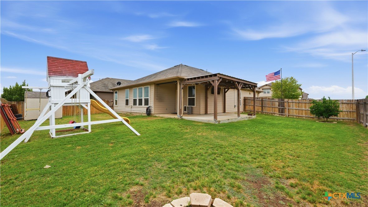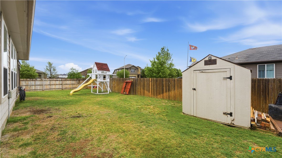 This BEAUTY is move-in READY and waiting for its new owners !! With this CORNER LOT, you will have one of the largest backyards in the subdivision as the fence has been extended 26' for added security and outdoor living space! Add to that a 10 x 20 covered patio with ceiling fan, an 8 x 10 shed for extra storage and irrigation system. *Playscape is negotiable! The open floor plan allows plenty of space for entertaining while having a very cozy feel. The kitchen has a garden sink with 2 stage water filter, newer stainless LG appliances (refrigerator can convey), granite counters, and an island for casual dining. Interior upgrades include lighting, fixtures, ceiling fans, recently painted walls, laminate wood flooring, new water heater, and purchased water softener. Enjoy added privacy afforded by the split floor plan. Located in a smaller, quiet subdivision, you will be close to shopping, dining and entertainment so that you can enjoy the big city life with the small town feel of beautiful New Braunfels, Texas!