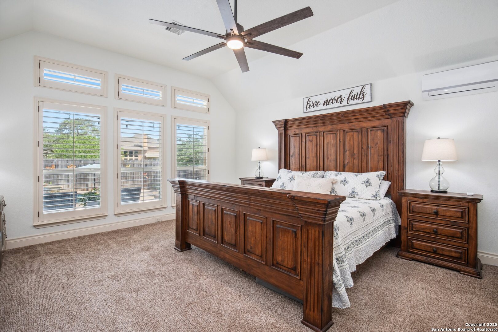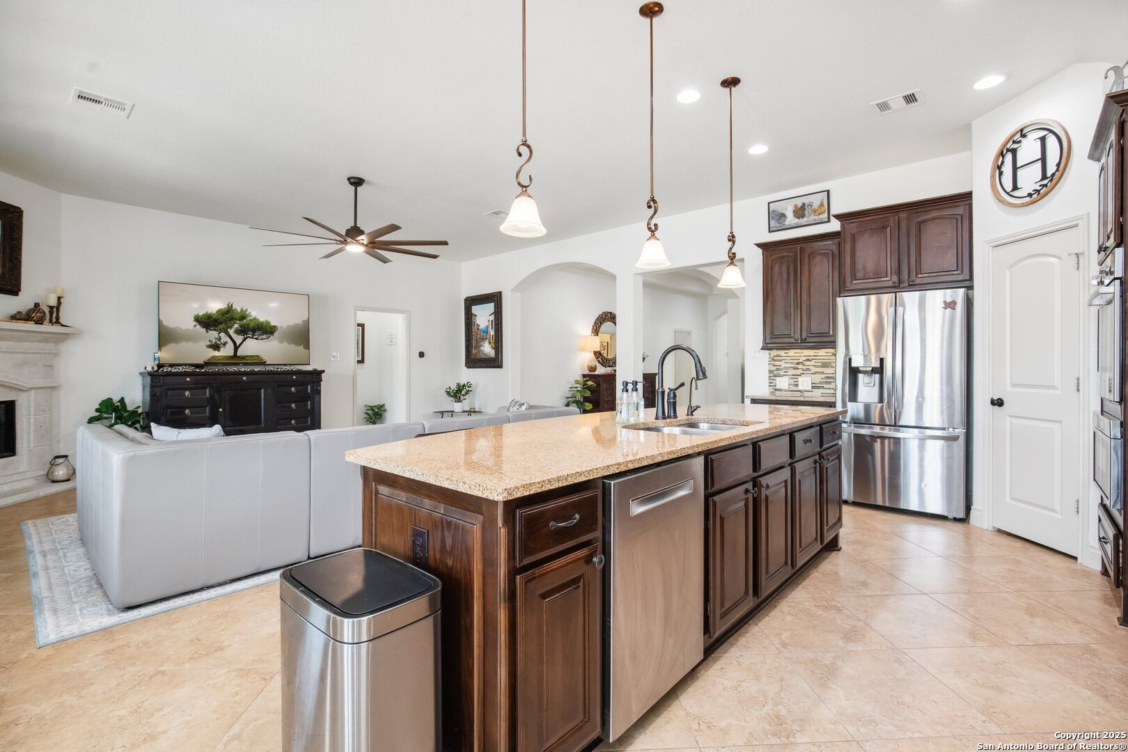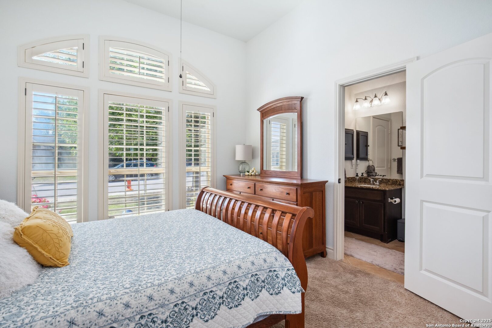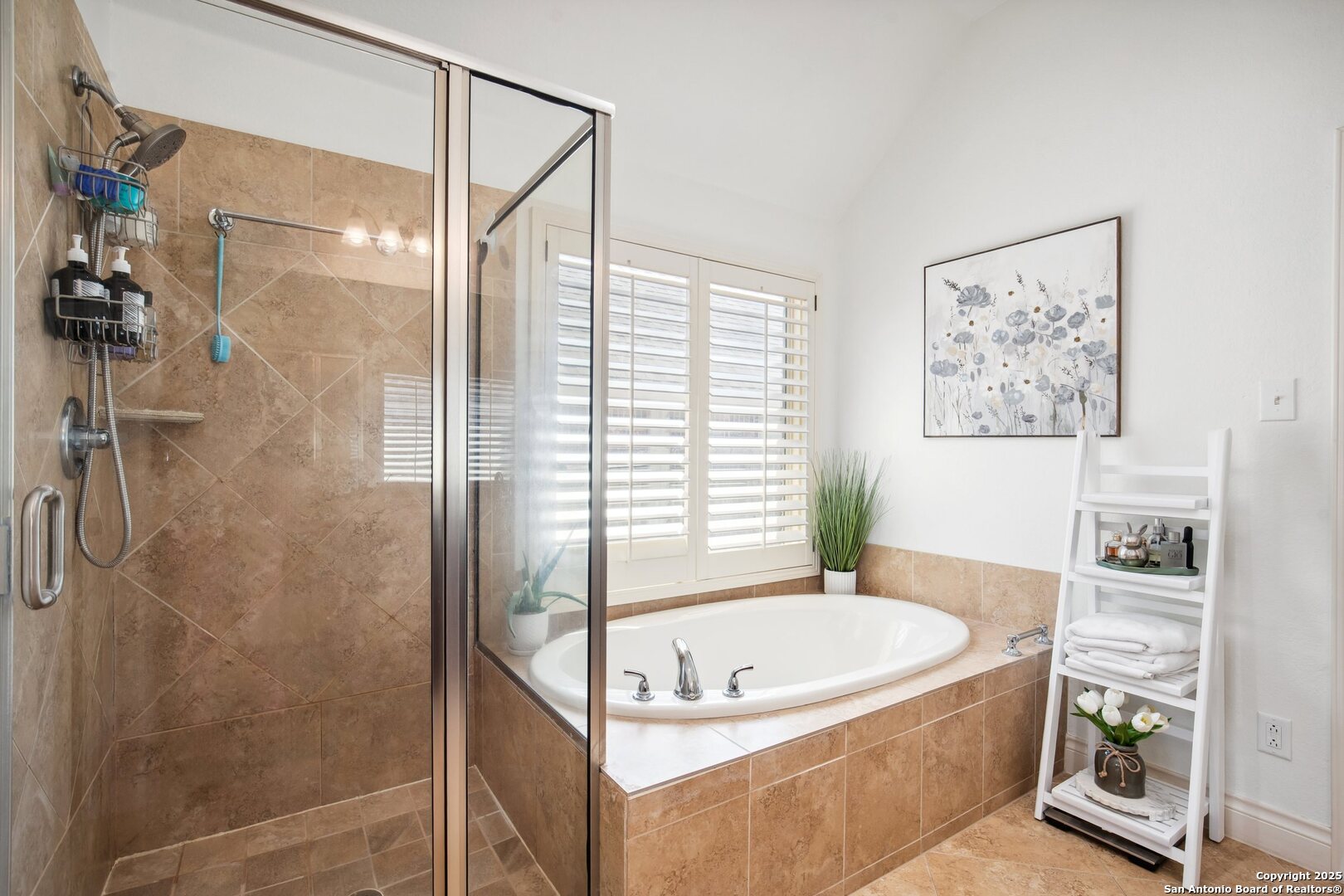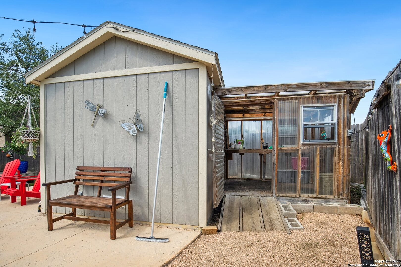 SELLER IS MOTIVATED! ALL OFFERS PRESENTED! Located in the gated community of Champions Village, this lovely single-story home offers comfort, space, and a functional layout. Inside, you'll find an open floor plan with high ceilings, wood plantation shutters, upgraded ceiling fans, and neutral tones that create a welcoming atmosphere throughout. The spacious living room features a cozy fireplace and flows seamlessly into the island kitchen and breakfast area, making it ideal for both daily living and entertaining. The kitchen is equipped with stainless steel Bosch appliances, a gas cooktop, pendant lighting, a breakfast bar, and a walk-in pantry. A formal dining room offers additional space for gatherings and special occasions. This home also includes a dedicated home office and a versatile den/media room to suit your lifestyle. The split primary suite provides a private retreat, complete with an ensuite bath that includes a soaking tub, walk-in shower, and an added mini-split A/C unit for personalized comfort. Additional upgrades include fresh interior paint, a water softener, reverse osmosis system under the kitchen sink, an alarm system, and a Tuff shed for extra storage. Step outside to the backyard oasis featuring a covered patio and open area, a swimming pool with beach entry and seating area, a privacy fence, and a storage shed and greenhouse. Don't miss your chance to own this beautifully maintained home-schedule your showing today!