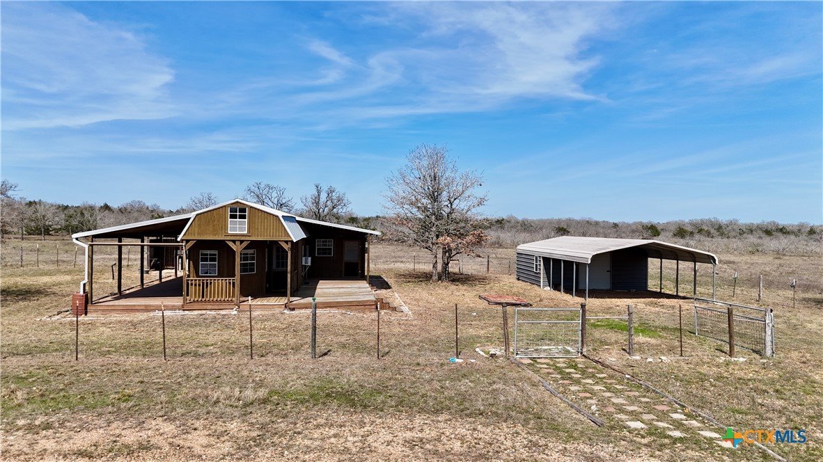 15 acres with a 1 bedroom, 1 bath cabin, 15x20 workshop, pole barn, and pond on a paved road just 5 minutes North of I-10 in Flatonia, TX! The property has 2 heavily wooded areas, as well as open pasture that has been cleared of mesquite and huisache, allowing for multiple recreational activities. Pin Oak Creek is a seasonal creek that runs through the south side of the property. The cabin has an open concept, with plenty of overhead storage, a large bedroom, and kitchenette. Come enjoy as a weekend retreat, or a comfortable temporary house until you build your dream home! A large spacious porch sits along 3 sides, allowing for views of the country side and a great place to sit and watch both the sunrise and sunset! The west porch has a 3 bay sink and is a perfect place for outdoor cooking! The 35x20 pole barn can be used to house both livestock and equipment. Just a short drive north of I-10 this property is ideally located halfway between Houston and San Antonio. 40 minutes to Bastrop and an hour and 10 minutes to Austin Bergstrom International Airport. Come take a look and start enjoying the country life!