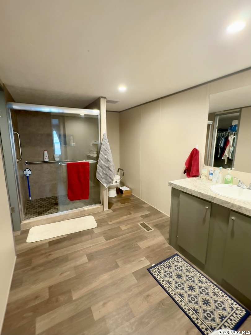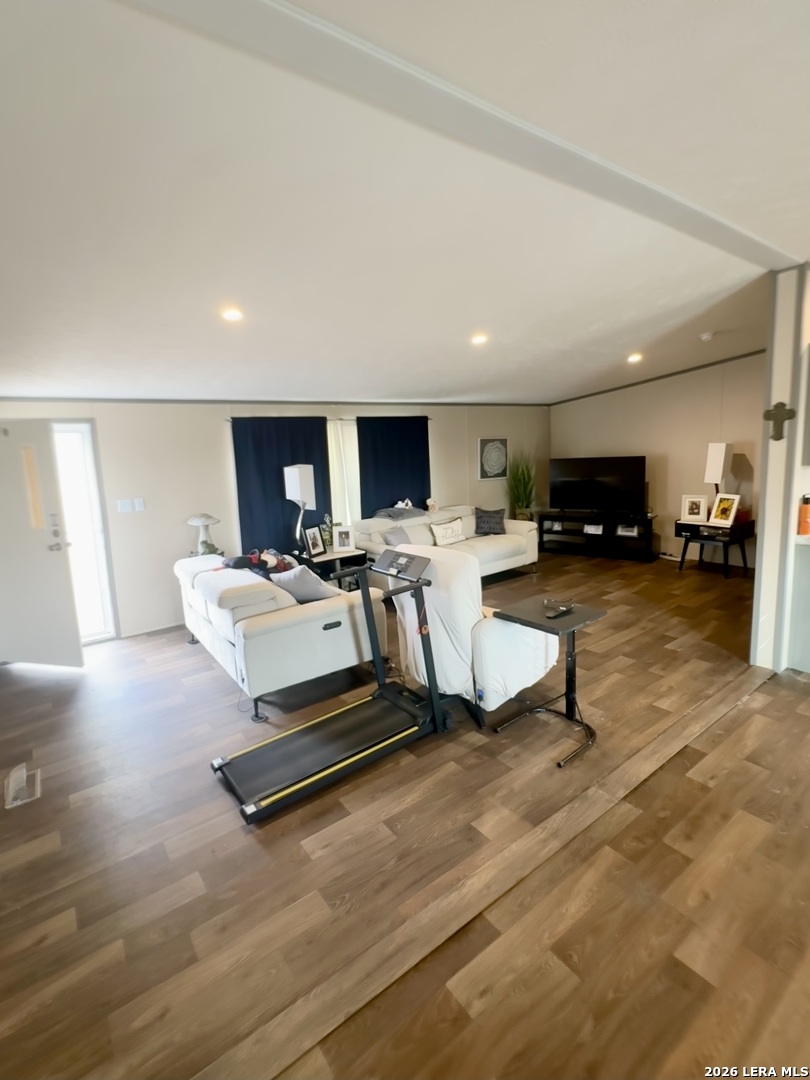 Nearly new 2023 manufactured home on 3.8 fenced & cross-fenced acres in Adkins, TX-located in East Central ISD and close to Randolph AFB. Enjoy no city taxes, an automatic gated entrance, and a separate garage for added functionality. Inside features an open layout with a spacious primary suite offering a large walk-in shower and walk-in closet. Peaceful country living with easy access to San Antonio. Space, privacy, and convenience all in one property.