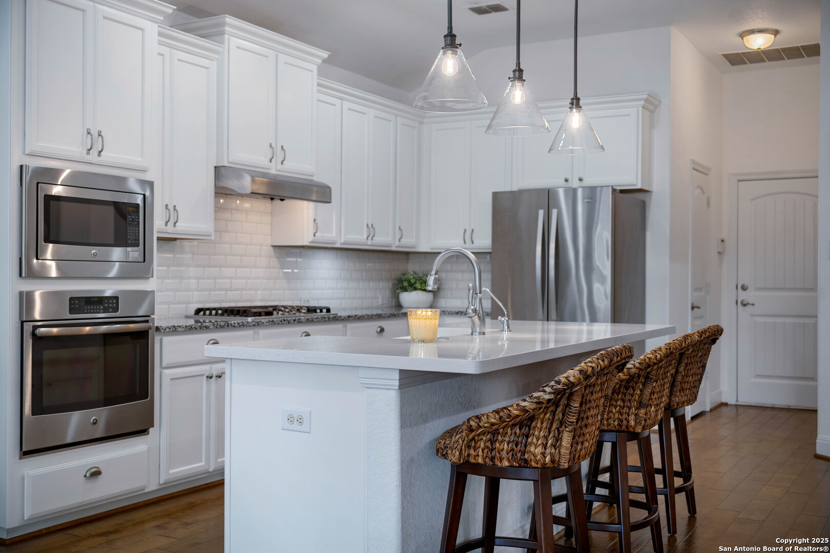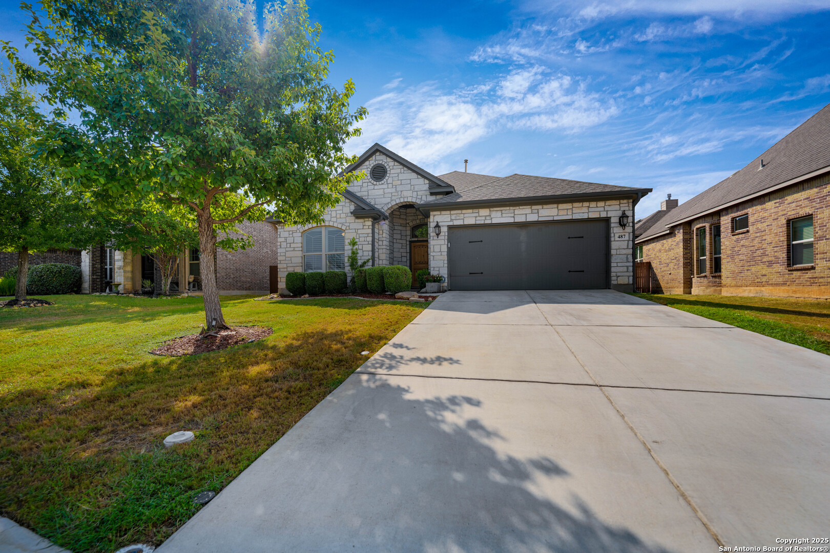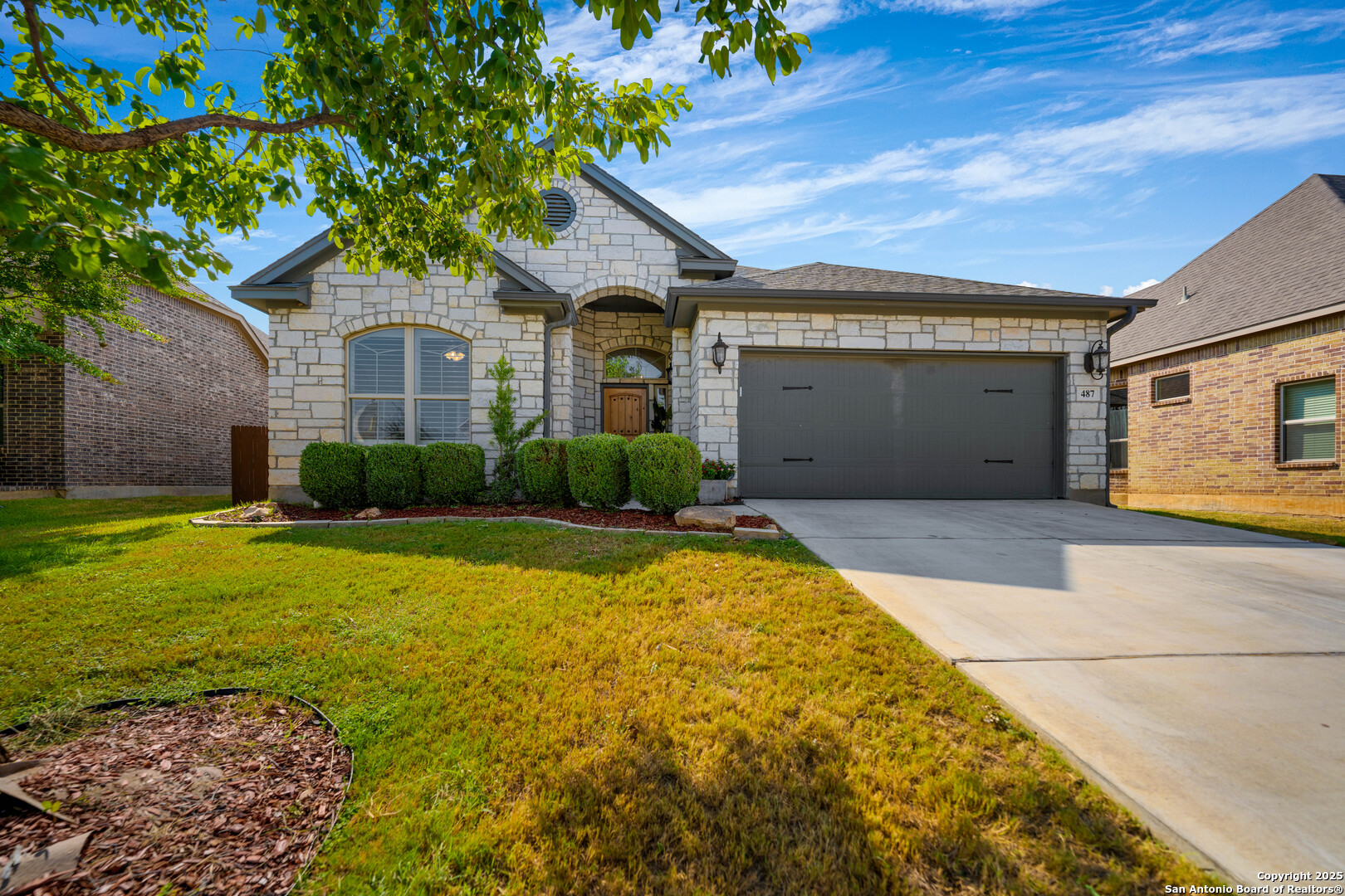 Welcome to 487 Mission Hill Run, New Braunfels, TX 78132. This beautifully maintained home offers the perfect balance of comfort, style, and location in the highly sought-after gated community. With its spacious layout, modern upgrades, and inviting outdoor spaces, this property is ready to be called home. Step inside to find an open-concept floor plan filled with natural light, high ceilings, and elegant finishes. The kitchen is designed for both function and style-featuring granite countertops, stainless steel appliances, ample cabinetry, and a large island perfect for entertaining. The adjoining living and dining areas create a seamless flow for everyday living and gatherings. The primary suite is a true retreat, complete with a spa-like bathroom boasting dual vanities, a soaking tub, separate shower, and generous walk-in closet. Additional bedrooms are thoughtfully positioned for privacy and flexibility, ideal for family, guests, or a dedicated home office. Outside, enjoy a covered patio overlooking the spacious backyard-perfect for relaxing evenings, weekend BBQs, or creating your dream outdoor oasis. Located in New Braunfels ISD and just minutes from shopping, dining, and major highways, this home offers the best of New Braunfels living with easy access to San Antonio and Austin.