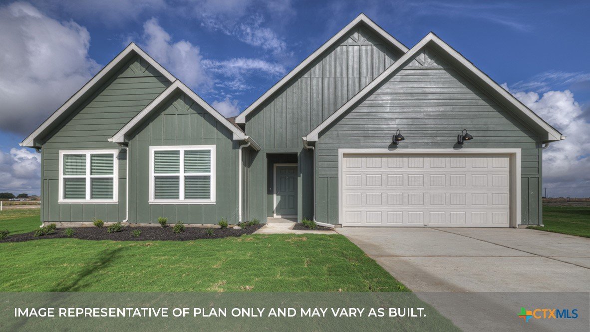 MOVE IN READY! BACKS TO GREENSPACE. INCLUDES REFRIGERATOR, BLINDS, GARAGE DOOR OPENER, WASHER/DRYER. The Irving is one of our most popular floorplans. This one-story home includes 5 bedrooms, 3 bathrooms, and a study within 2,592 square feet of living space and a 2 car garage. Enter the home from the covered front porch, you’ll cross the foyer to the dining room, family room and kitchen. This large open concept space is perfect for entertaining and everyday living. The kitchen includes an island with undermount sink, quartz countertops, decorative tile backsplash, a corner pantry closet, stainless-steel appliances and 36’’ upper cabinets. The utility room with an extra closet is located just off the kitchen. Check out the primary bedroom, located at the back of the home. This oversized bedroom will become your oasis at the end of the day. Enjoy the 5’ walk in shower, raised cultured marble vanity with double sinks and toilet area with a separate door. A walk-in closet with generous shelving is connected to the bathroom. In the opposite rear corner of the home, you’ll find Bedroom 2 and Bath 2. This private space could be perfect for your guests or any family member that needs their own space. At the front of the home, you’ll find the additional 3 bedrooms and Bath 3. Each secondary bedroom includes a closet with shelving, and the secondary bathrooms include a shower/tub combination and shelving for extra storage or décor. The study is off the family room and features a closet as well. The Irving includes vinyl flooring throughout the common areas of the home and the primary bedroom, and carpet in the secondary bedrooms. All our new homes feature a covered back patio, full sod, an irrigation system in the front and back yard, and full gutters. This home includes our America’s Smart Home base package, which includes the Amazon Echo Pop, Front Doorbell, Front Door Deadbolt Lock, Home Hub, Thermostat, and Deako® Smart Switches.