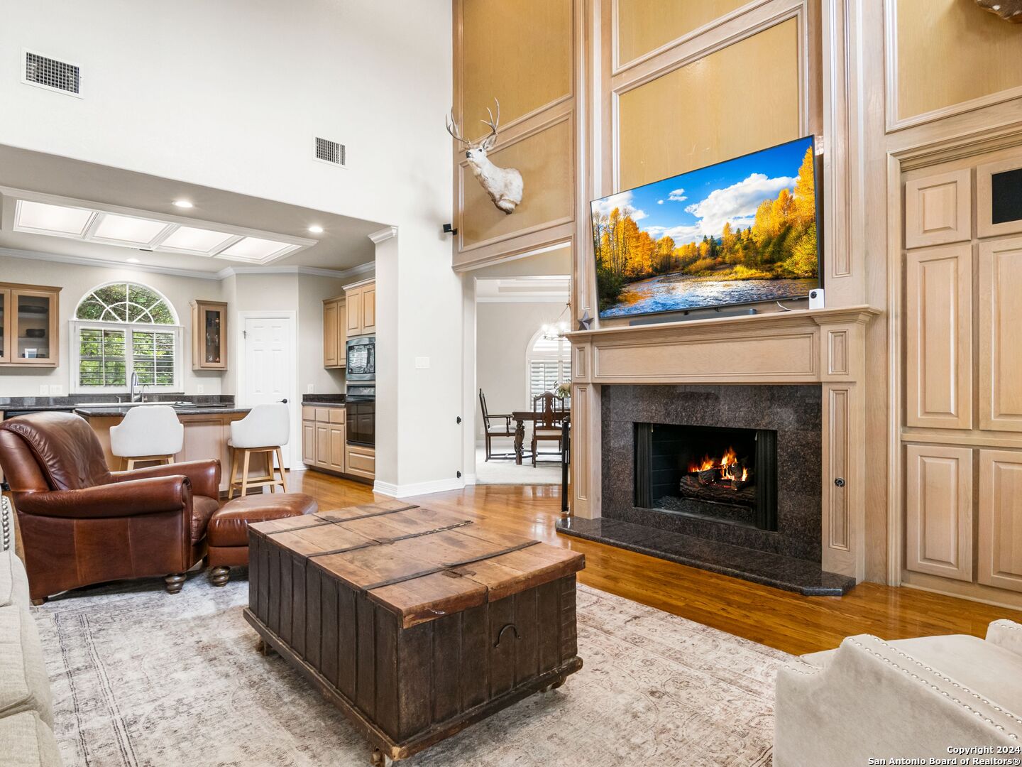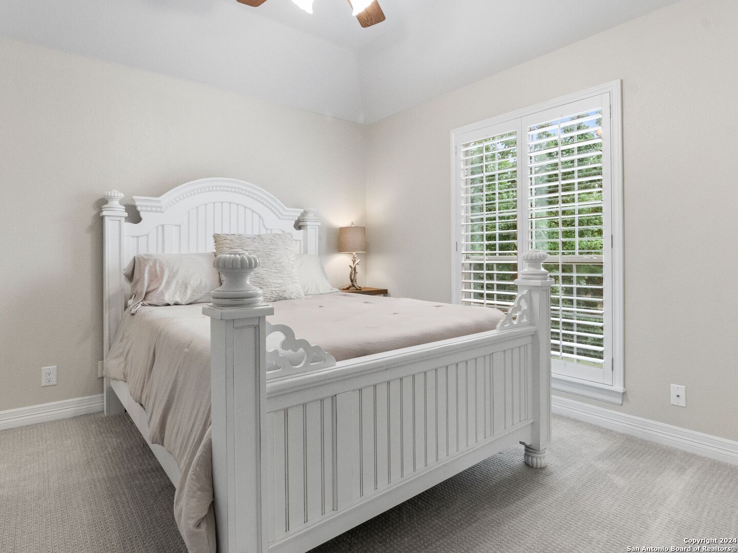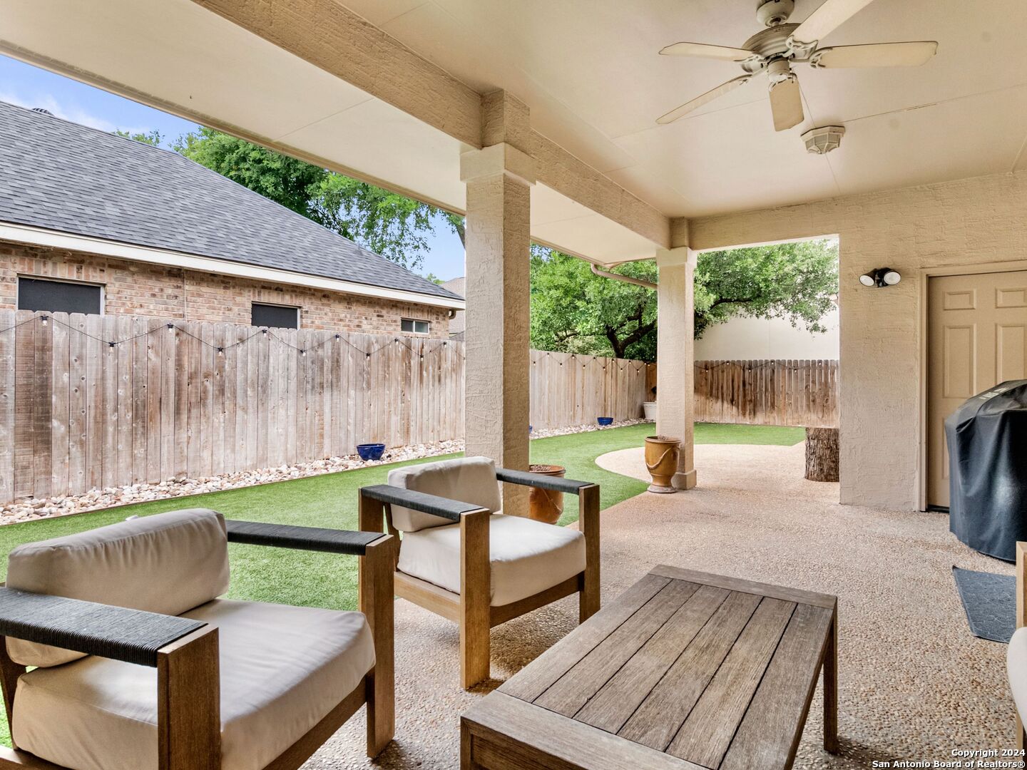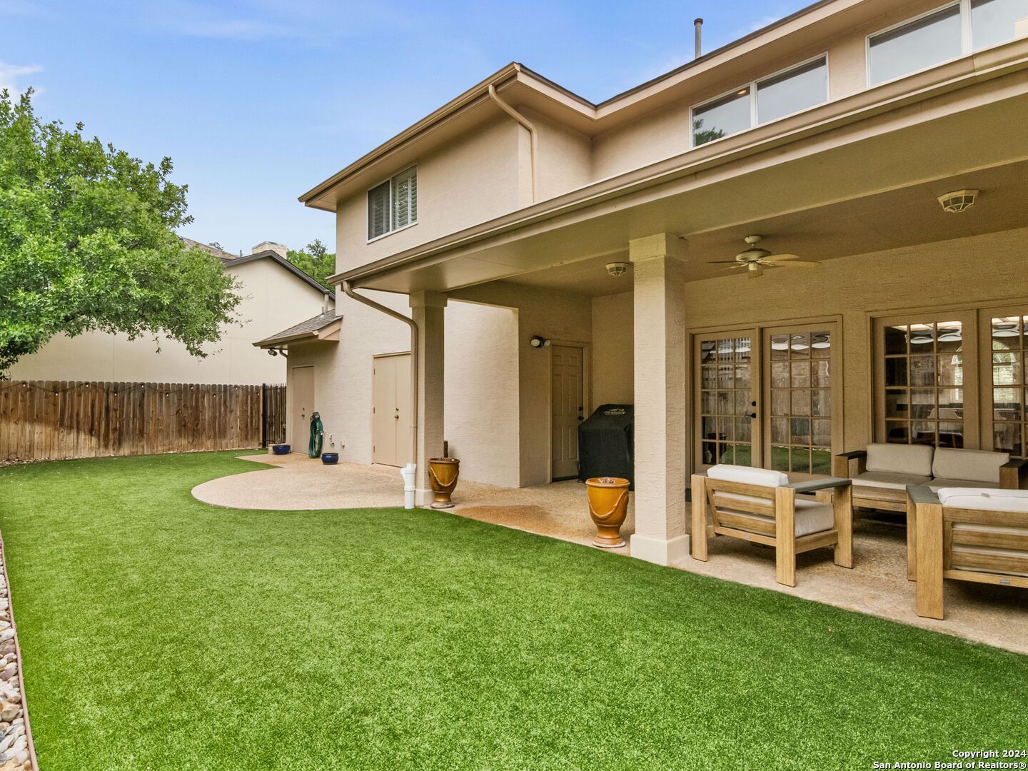 Welcome to a cozy retreat in a gated community that prioritizes safety and privacy. This charming two-story home offers practicality and comfort, making it ideal for family living. Inside, you'll find four spacious bedrooms (with optional flex to office space) and 2.5 baths, including a master ensuite, ensuring everyone has their own space to unwind and recharge. This home features 2 living areas, with 19ft ceilings in the family room. Storage solutions abound throughout the house, keeping clutter at bay and ensuring everything has its place. Hobbyists will appreciate the convenience of the oversized two-car garage with an ADDITIONAL workshop area, providing ample space for projects and storage. This quiet neighborhood offers tennis and pickleball courts as well as a pool/clubhouse and walking access to Silverhorn Golf Course. This home is located within the highly regarded NEISD school district, ensuring access to quality education. See additional documents for a list of recent updates.