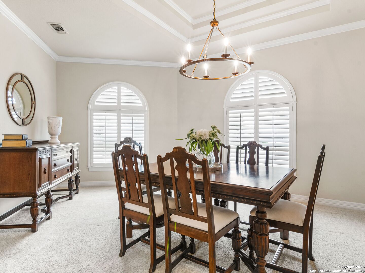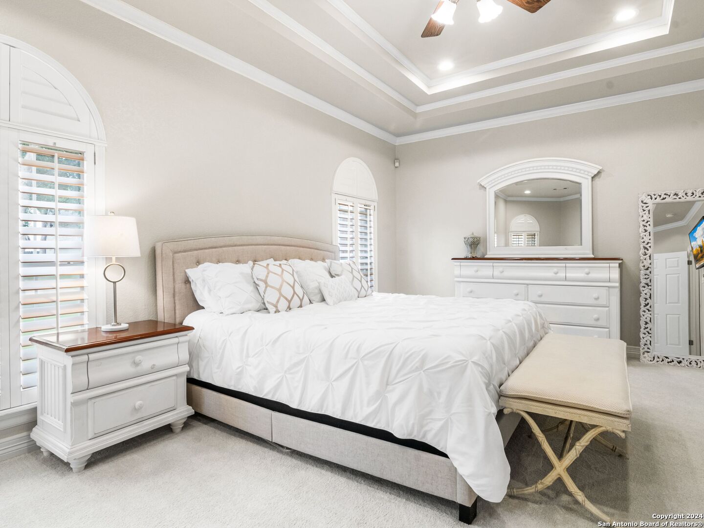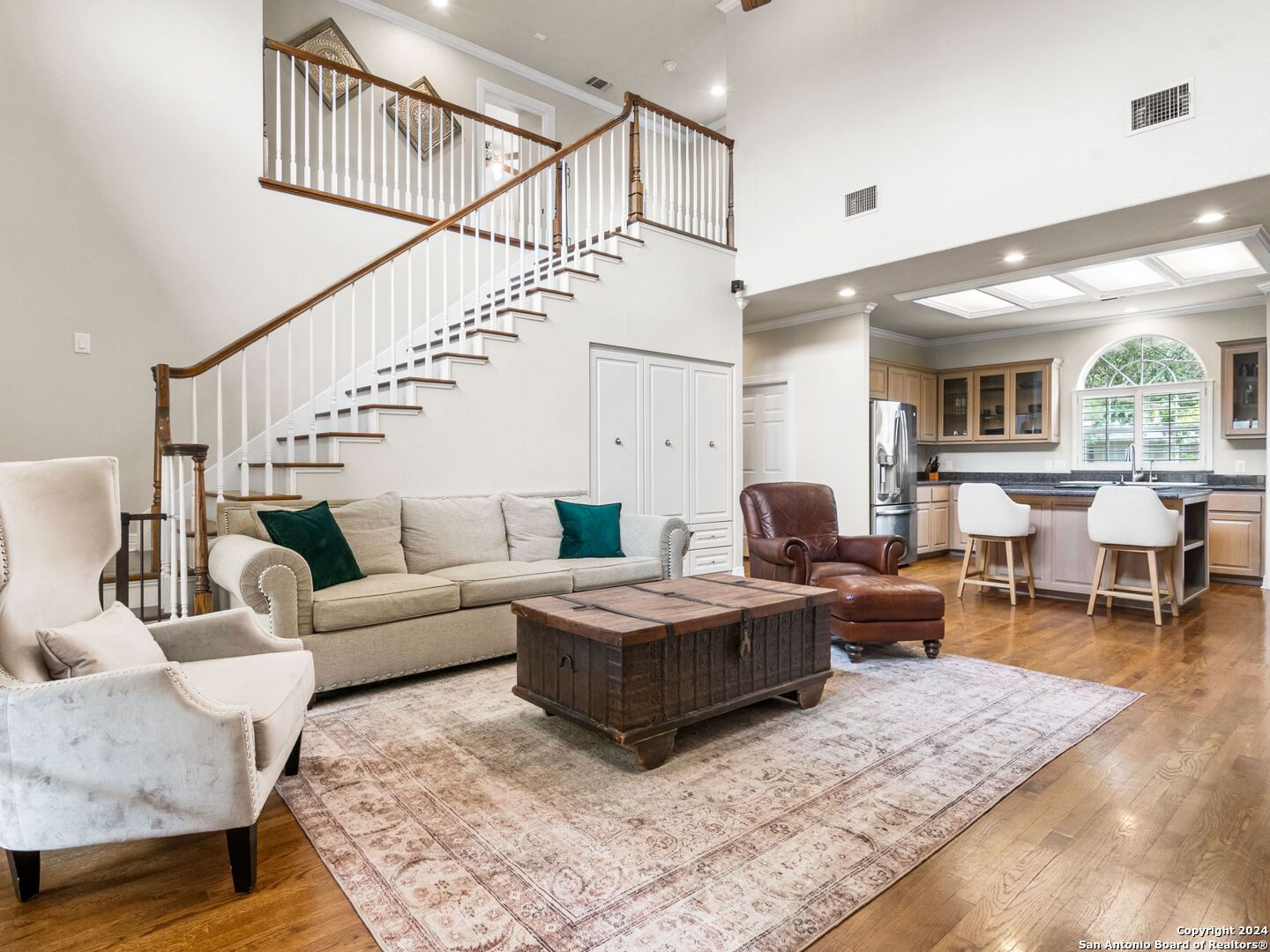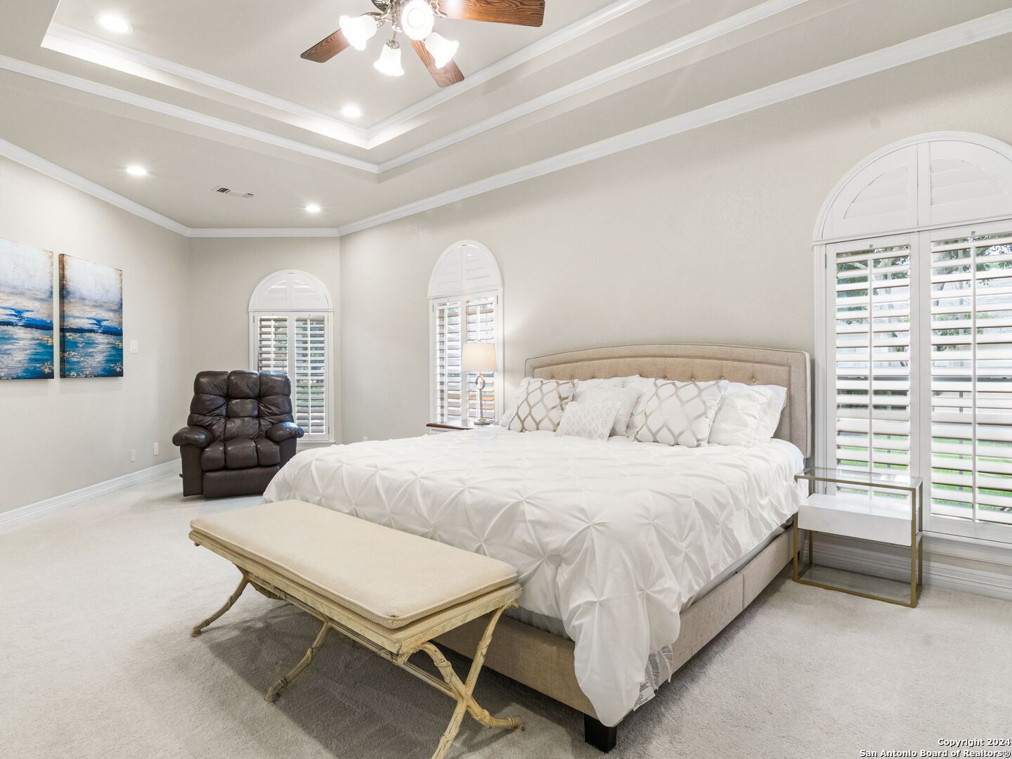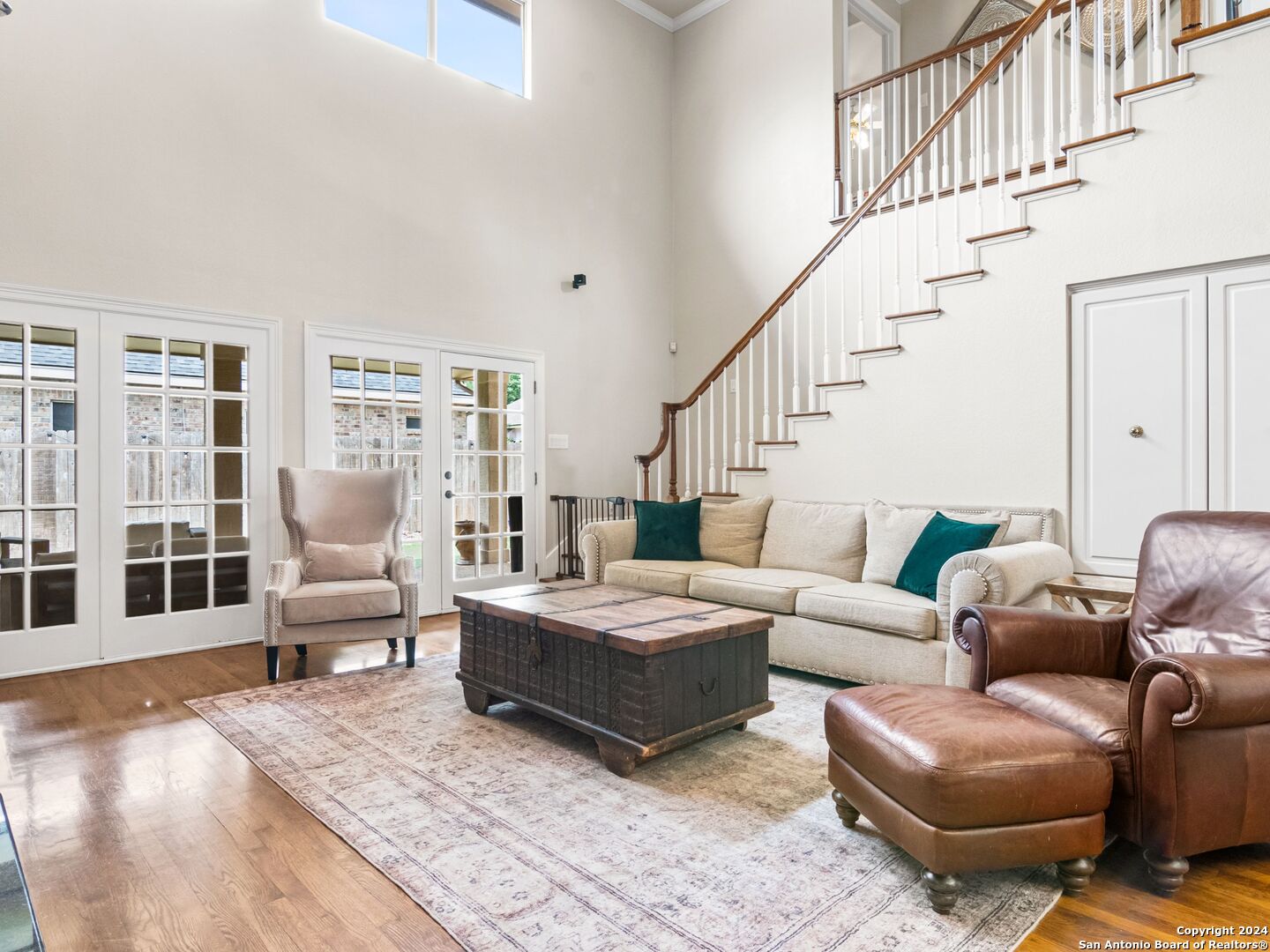 Welcome to a cozy retreat in a gated community that prioritizes safety and privacy. This charming two-story home offers practicality and comfort, making it ideal for family living. Inside, you'll find four spacious bedrooms (with optional flex to office space) and 2.5 baths, including a master ensuite, ensuring everyone has their own space to unwind and recharge. This home features 2 living areas, with 19ft ceilings in the family room. Storage solutions abound throughout the house, keeping clutter at bay and ensuring everything has its place. Hobbyists will appreciate the convenience of the oversized two-car garage with an ADDITIONAL workshop area, providing ample space for projects and storage. This quiet neighborhood offers tennis and pickleball courts as well as a pool/clubhouse and walking access to Silverhorn Golf Course. This home is located within the highly regarded NEISD school district, ensuring access to quality education. See additional documents for a list of recent updates.