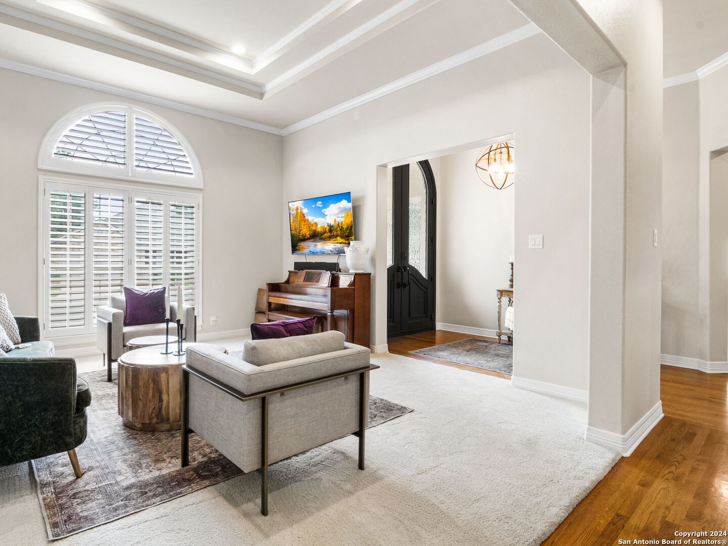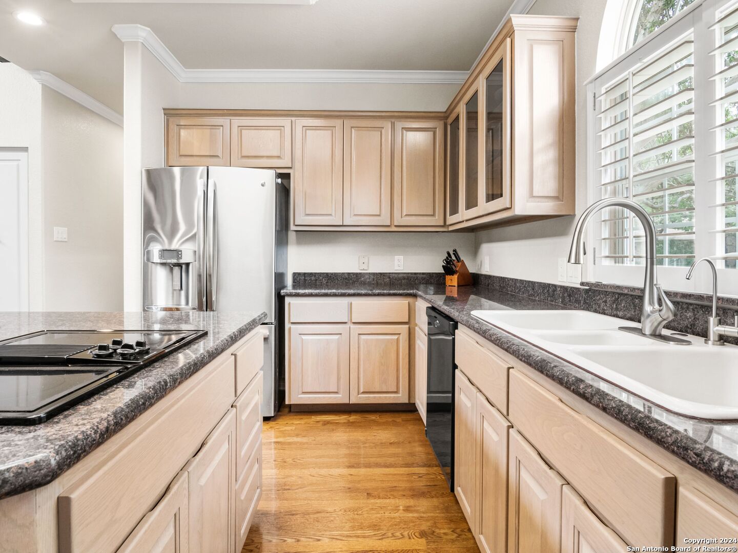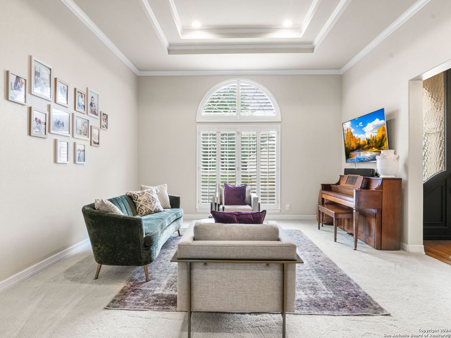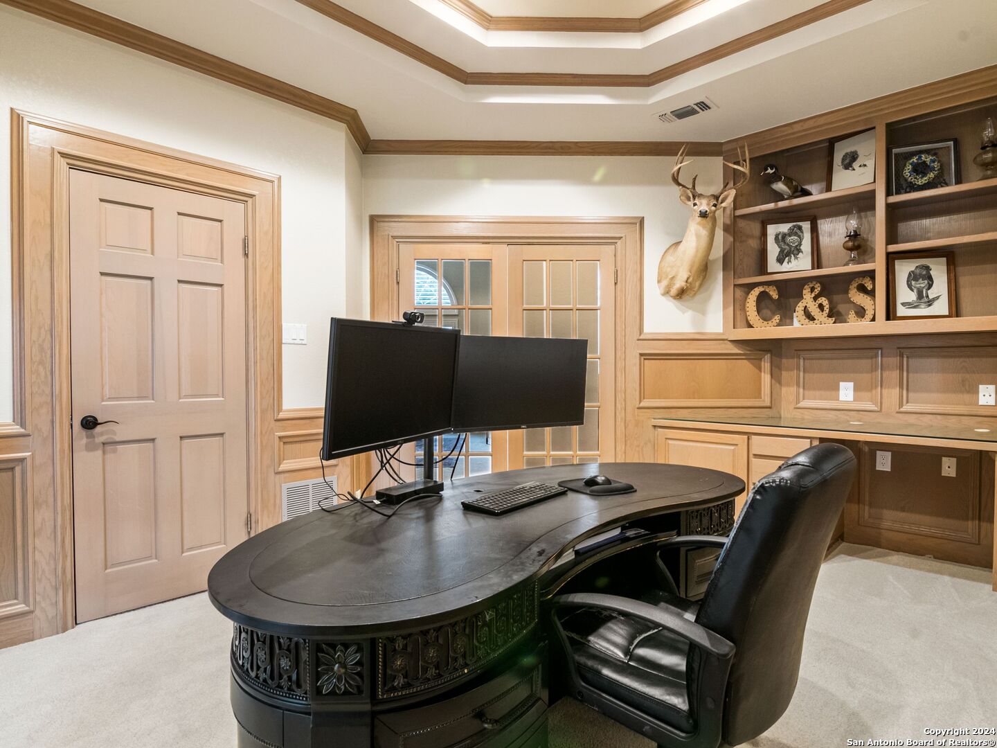 Welcome to a cozy retreat in a gated community that prioritizes safety and privacy. This charming two-story home offers practicality and comfort, making it ideal for family living. Inside, you'll find four spacious bedrooms (with optional flex to office space) and 2.5 baths, including a master ensuite, ensuring everyone has their own space to unwind and recharge. This home features 2 living areas, with 19ft ceilings in the family room. Storage solutions abound throughout the house, keeping clutter at bay and ensuring everything has its place. Hobbyists will appreciate the convenience of the oversized two-car garage with an ADDITIONAL workshop area, providing ample space for projects and storage. This quiet neighborhood offers tennis and pickleball courts as well as a pool/clubhouse and walking access to Silverhorn Golf Course. This home is located within the highly regarded NEISD school district, ensuring access to quality education. See additional documents for a list of recent updates.