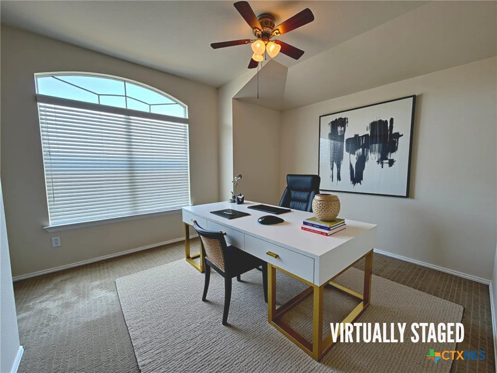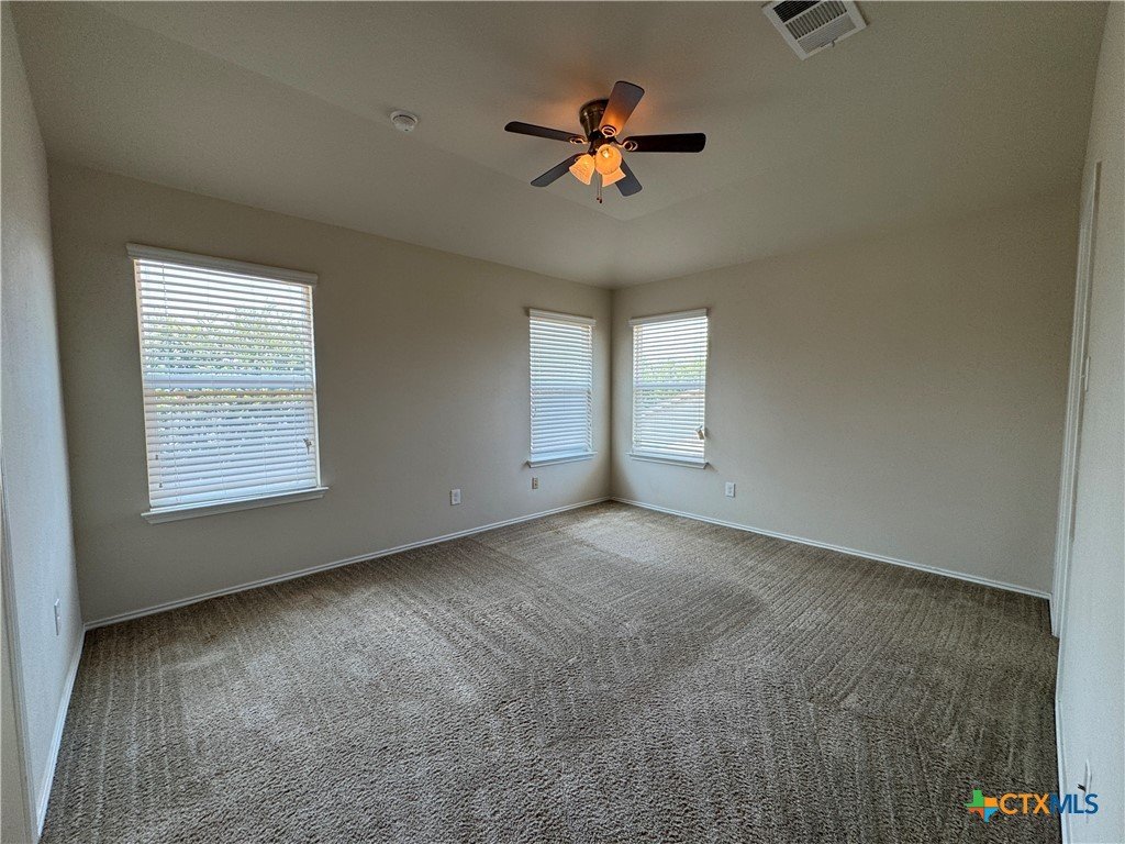 3 bedroom 2.5 bathroom all electric home with carpet throughout and large windows for natural light. Bedrooms are located upstairs along with an additional living area. The master bedroom includes a walk in shower, a spacious soaker tub, and ceiling fans throughout the home. The kitchen features black appliances, and there are washer and dryer hookups. Outside, enjoy a large fenced backyard with a covered patio. The home also includes an attached 2 car garage. Property can also be rented.