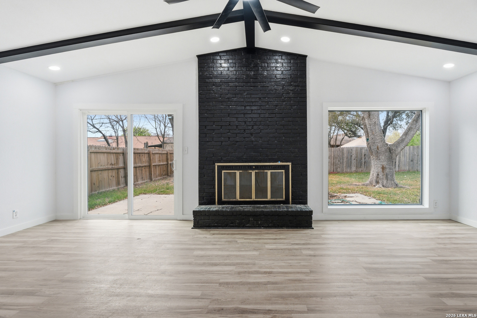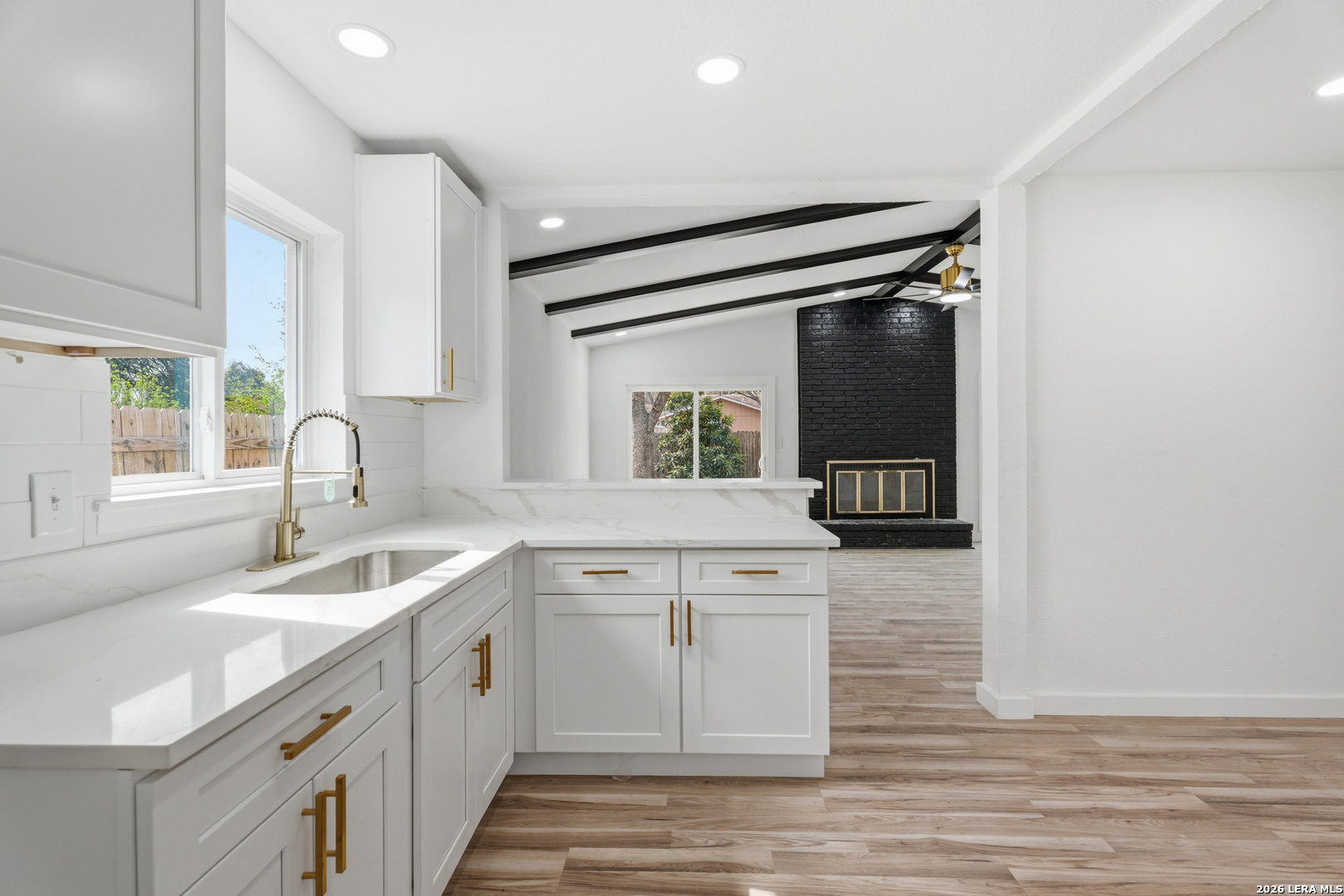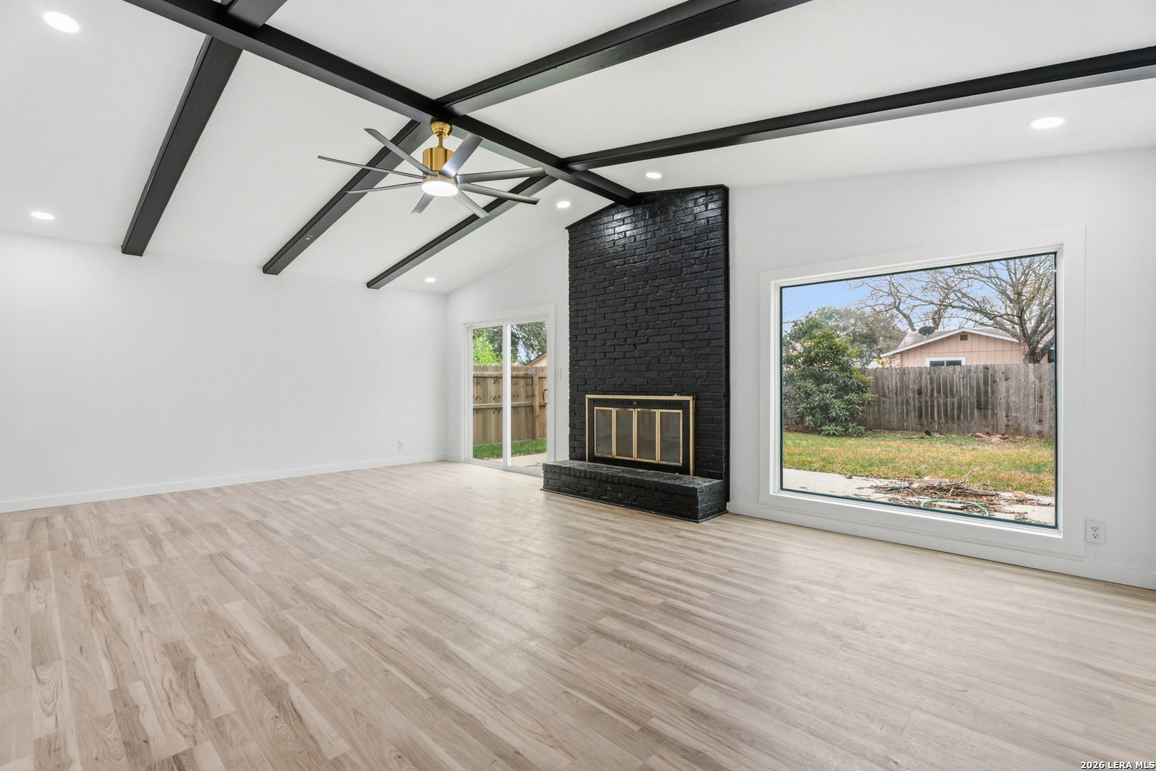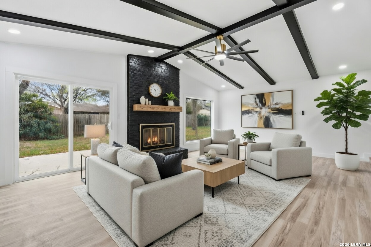 This beautifully fully renovated home features dramatic vaulted ceilings with exposed black beams and a striking floor-to-ceiling black brick fireplace as the focal point of the living area. This beautifully updated 3-bedroom, 2-bath single-family home offers approximately 1,499 sq ft of modern living space on a spacious corner lot This soon-to-be your home boasts contemporary finishes, an open and inviting layout, and abundant natural light. The kitchen and baths have been tastefully updated, while the interior flows seamlessly for both everyday living and entertaining. Outside, enjoy the shady backyard with mature trees, perfect for barbecues and outdoor relaxation. The corner lot includes double gates that can accommodate a boat or RV, plus a convenient dog run. Additional features include a 2-car garage with openers, a security system, and easy access to a nearby walk/bike trail that allows kids to reach school safely away from traffic. This move-in-ready gem is loaded with charm and modern updates, a true standout in the neighborhood! Tour this beauty today and have a signed contract by tomorrow!