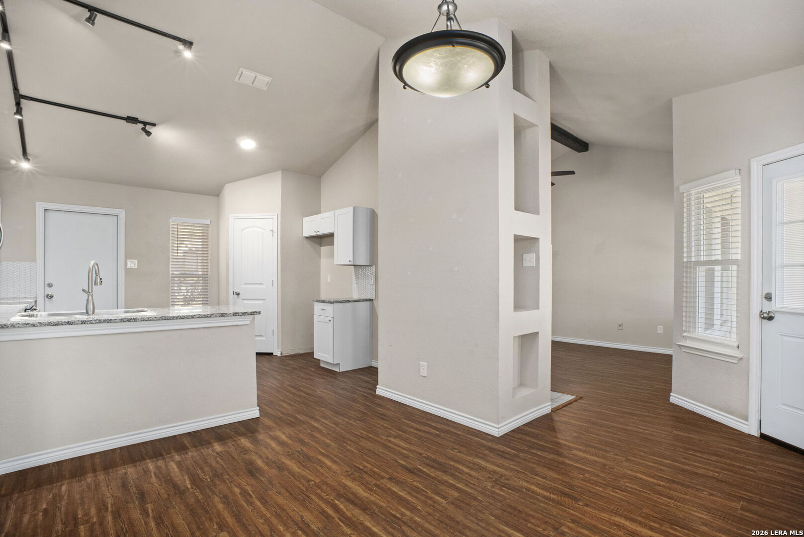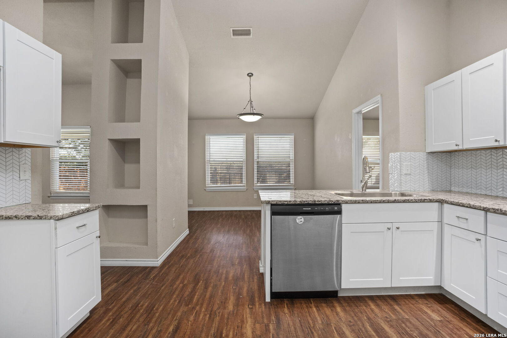 Charming 3-bedroom, 2-bath home in an award-winning school district. Located in Northcliffe-a quiet, family-friendly, and established Schertz neighborhood-this house has it all. This home features vinyl wood looking flooring, high ceilings, and an open floor plan. Enjoy coming home and cooking in the bright kitchen featuring granite countertops, tile backsplash with plenty of counter and cabinet space. Spend your evenings on the back patio enjoying the sunset. Recent updates include new windows (2021), gutters (2023) and sewer line repaired (2025) Ideal as a great starter home, it is located near top-rated schools and great shopping. Also conveniently located near 1103 with quick access to I-35, making for an easy commute to Randolph AFB, San Antonio, or New Braunfels. A welcoming community awaits you here.