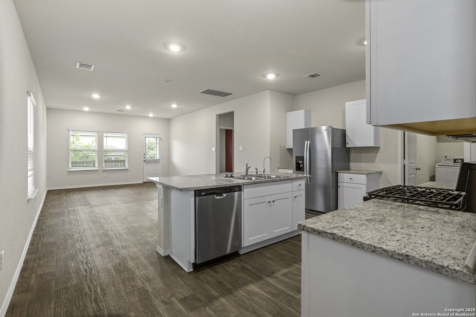 **** First 2 weeks available at $0 rent or same amount may be deducted from move-in cost **** Tours available 7 days a week from 8am-8pm ** Welcome to your stunning two-story residence that perfectly blends style, comfort, and convenience. This spacious home, boasting 4 bedrooms and 2.5 baths, is designed for modern living with an open concept floor plan that seamlessly connects the kitchen, dining, and family rooms. As you step through the inviting entry foyer, you'll immediately notice the thoughtful layout that includes a convenient powder bath for guests. The heart of this home is undoubtedly the gourmet kitchen. Equipped with sleek stainless steel appliances, elegant granite countertops, and a functional kitchen island, it offers both beauty and practicality. The island overlooks a cozy family room, creating an ideal setting for entertaining or enjoying family time. Retreat to the tranquility of the downstairs primary bedroom, featuring an attractive ensuite with a separate water closet, granite vanity countertop, and an expansive walk-in closet. This private haven provides a perfect escape at the end of the day. Upstairs, you'll find all secondary bedrooms, thoughtfully situated to provide privacy and comfort for family members or guests. A spacious game room adds versatility to this level, offering endless possibilities for recreation or relaxation. Step outside to discover a rear covered patio directly off the family room - a perfect spot for outdoor dining or simply unwinding while appreciating your landscaped yard equipped with irrigation. Additional highlights include sheet vinyl flooring in key areas such as the entry, living room, and all wet areas, as well as granite countertops in all bathrooms. With a 2-car garage completing this inviting package, this home is ready to welcome you into an unparalleled lifestyle.