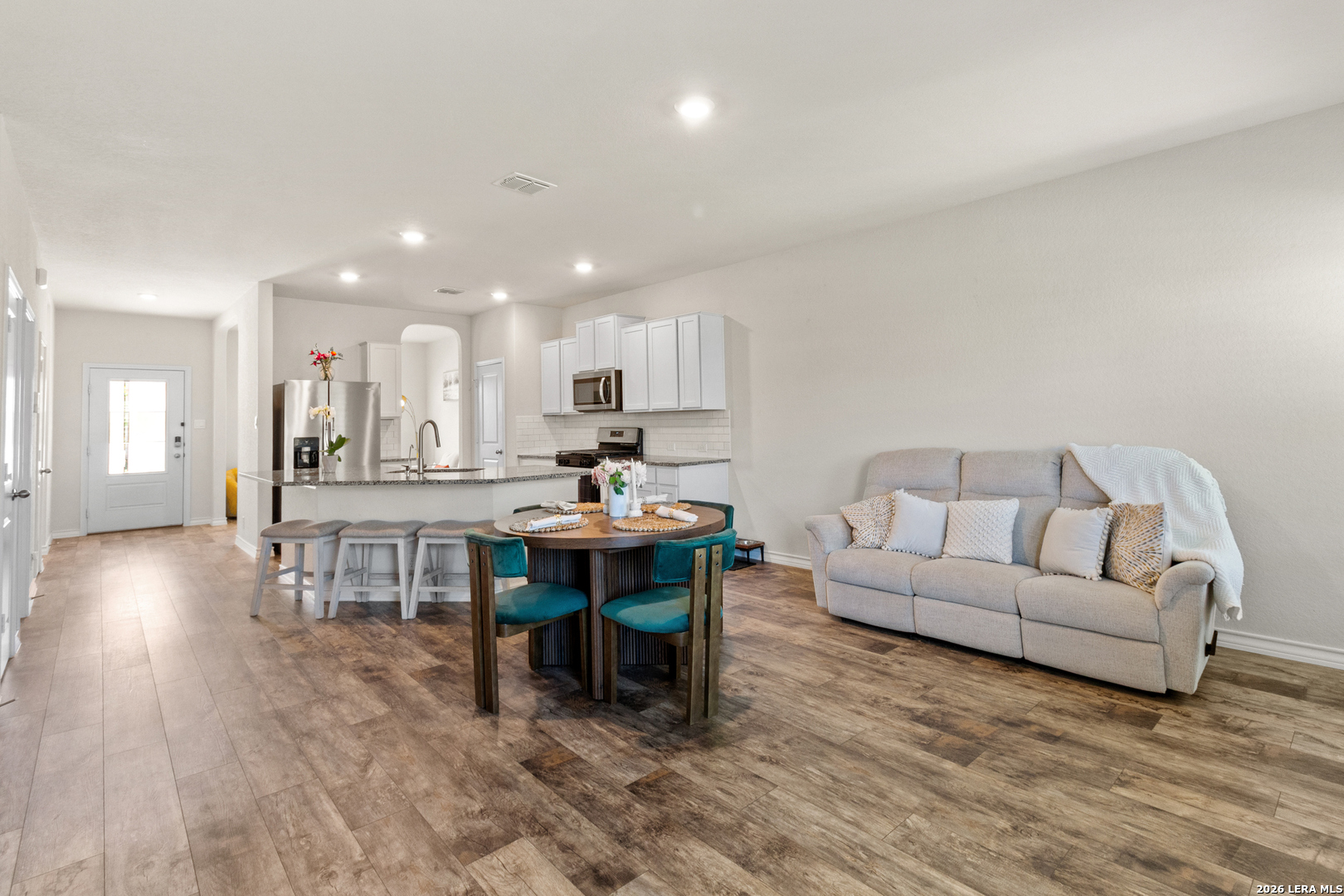 Fresh, like-new!!! This home offers 5 spacious bedrooms and 3.5 bathrooms in 2,678 sqft. With 2 seperate areas you can customize to your needs! Use the entry room as an office, exercise room, or it can be used as a formal dining! The master suite on the first floor is perfectly separated from the secondary bedrooms upstairs, offering privacy and comfort. The master bathroom features a relaxing garden tub, separate shower, dual vanities, and a huge walk-in closet perfect for all your luxury purses, shoes, and more.Upstairs, the oversized loft is a versatile space-ideal for a game room, play area, or media room. A water softener is included, keeping appliances in top shape and your showers free from residue.Enjoy outdoor living in your backyard with a covered patio and ample space for kids or pets to play. Just a short walk from one of San Antonio's nicest amenity centers, you'll have access to 2 amenity centers, including the newest with a gated playground, basketball court, pickleball courts, gyms open 24/7, swimming pool with a lazy river, and a kids' splash pad.Say goodbye to the lines at SeaWorld and enjoy your own oasis!Planning a party? Rental rooms are available to host events without the stress of having guests in your home. This home combines space, luxury, and convenience, making it a perfect choice for families who love comfort, community, and lifestyle amenities right at their doorstep! 13 minutes from shopping centers, restaurants, entertainment, gyms, in the Alamo Ranch area.