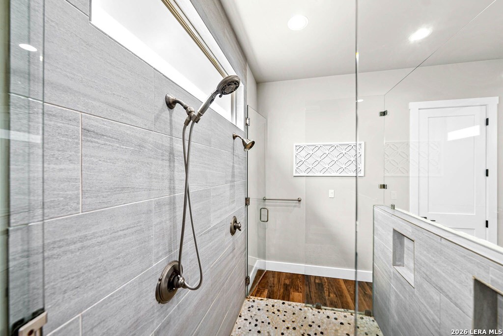 Located just outside the city limits of the highly desirable gated Saddlewood Estates community, this exceptional home offers the tranquility of country living while remaining just minutes from town, dining, shopping, medical facilities, & parks. Built by respected T5 Homes as the builder's personal residence, it showcases superior craftsmanship, smart design, long-term quality with elevated finishes & premium materials throughout. This 4-bedroom home features 2 bedrooms on the main level, with additional guest bedrooms upstairs, and all bedrooms offer private ensuite access, ideal for family & guests alike. The open-concept living area features a soaring vaulted ceiling, dramatic wall of windows, & stone fireplace, creating a warm & inviting space for everyday living & entertaining. The luxurious primary suite offers dual vanities, a spa-like walk-through shower, & electric fireplace. Outdoor living truly shines w/ a fenced backyard, sparkling pool, an expansive covered patio w/ outdoor kitchen. Additional highlights include a 3-car attached garage, 2-car detached garage, GYMNAMSIUM ideal for pickleball, basketball, and more.