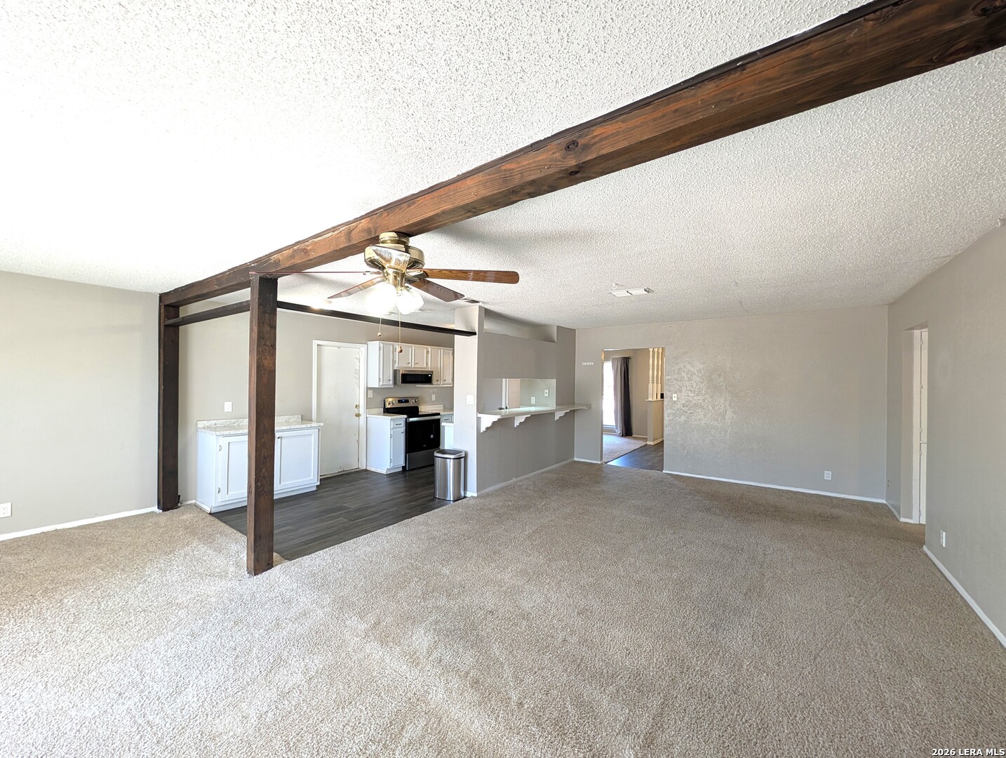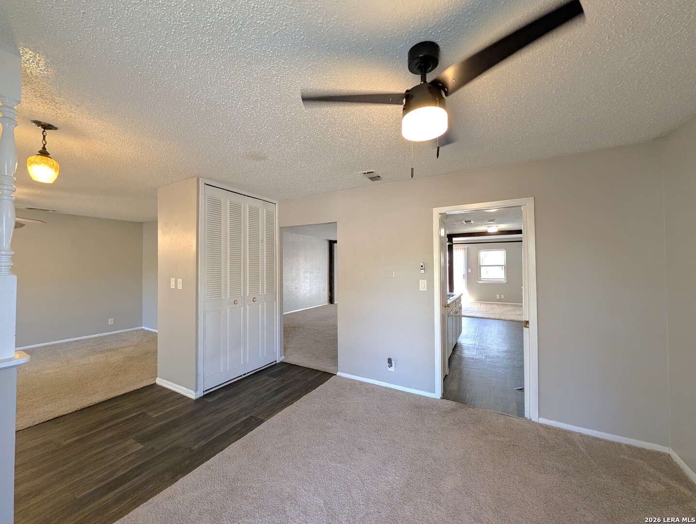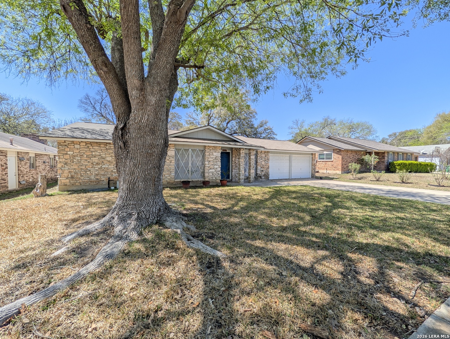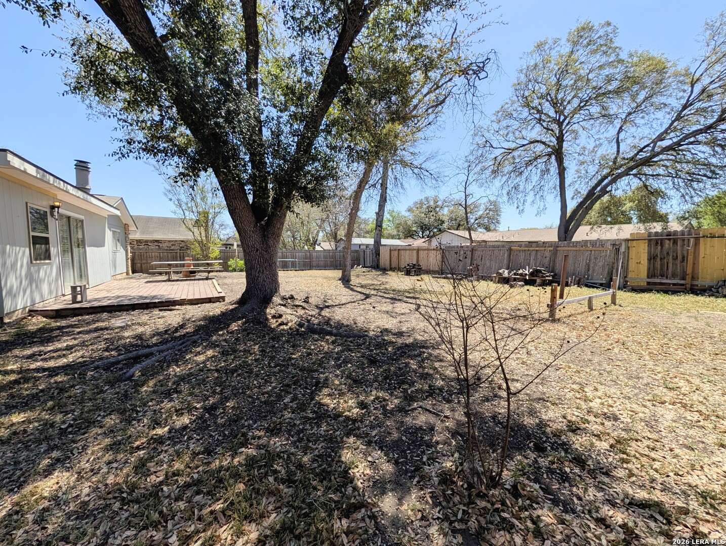 Welcome to this charming and versatile single-story home in the heart of San Antonio. This 3-bedroom, 2-bath residence offers a functional layout with thoughtful updates in the flexible living areas designed to fit your lifestyle. As you step inside, you are greeted by two spacious flex rooms, perfect for a formal dining area, home office, playroom or additional living space. The home features carpet throughout with durable VLP flooring in the entryway, kitchen, both bathrooms, and in one secondary bedroom for added convenience and style. The kitchen flows seamlessly into the main living area, where a cozy fireplace creates a warm and inviting focal point - perfect for relaxing evenings or gathering with family and friends. Both bathrooms were tastefully updated, with bathtubs converted into modern walk-in showers. Step outside to enjoy the expansive backyard, ideal for gatherings, pets, or simply relaxing under the Texas sky. A large wooden deck just off the living room sliding door provides the perfect spot for outdoor dining or weekend barbecues. Major updates include a new roof installed in early 2021 and indoor plumbing upgraded to PEX, offering peace of mind for years to come. With its flexible floor plan, inviting fireplace, improvements, and generous outdoor space, this home is a fantastic opportunity you won't want to miss!