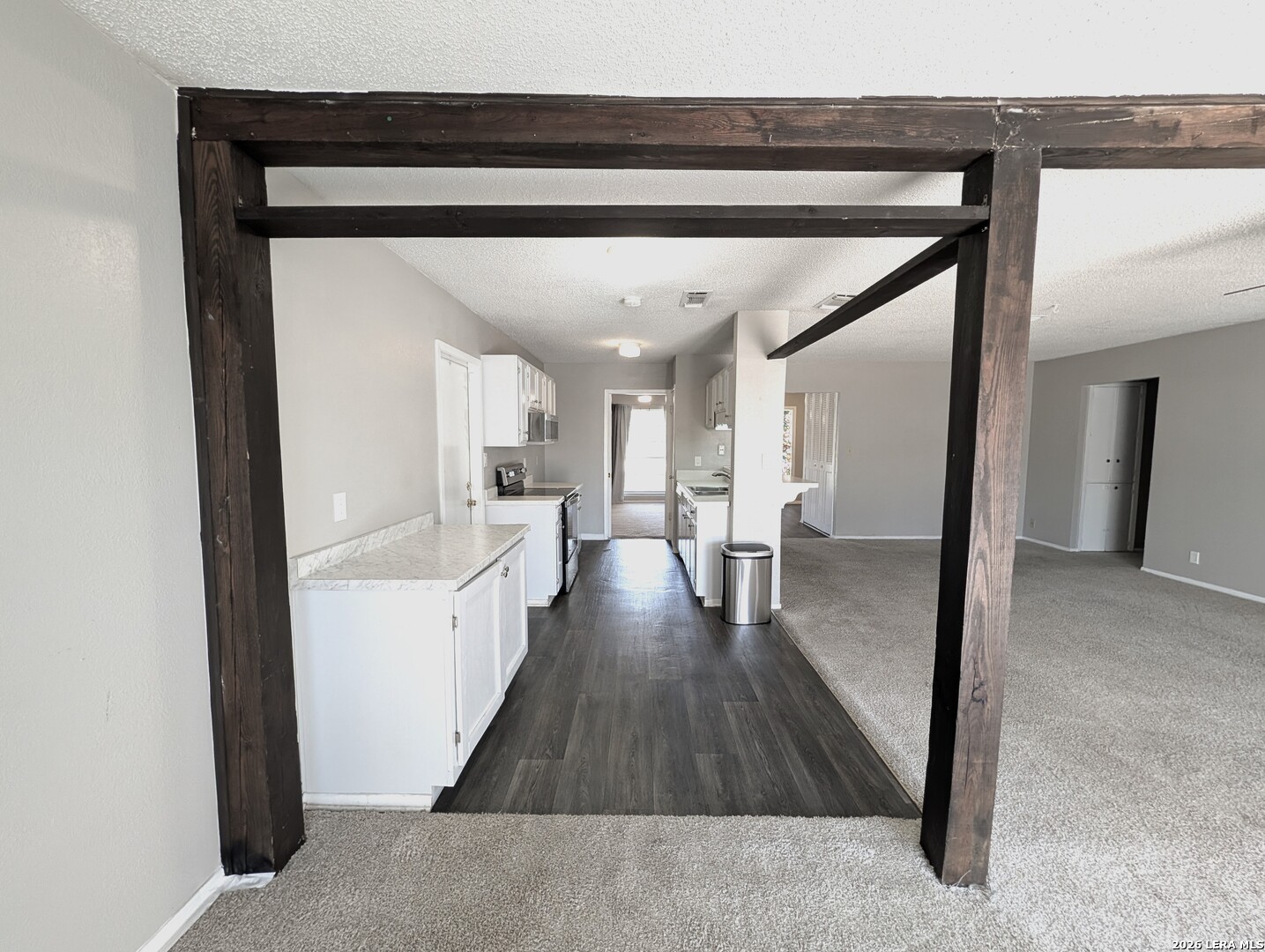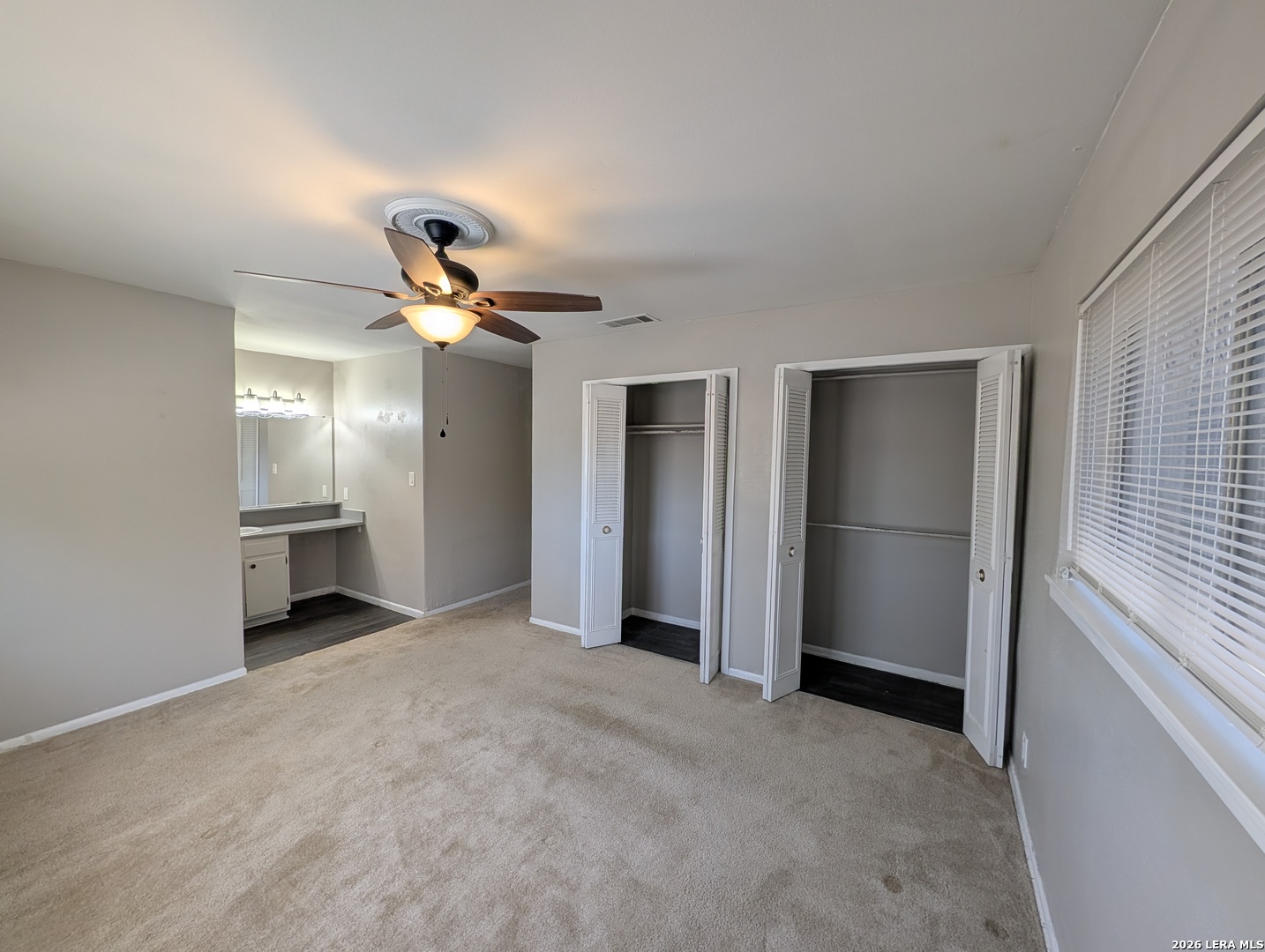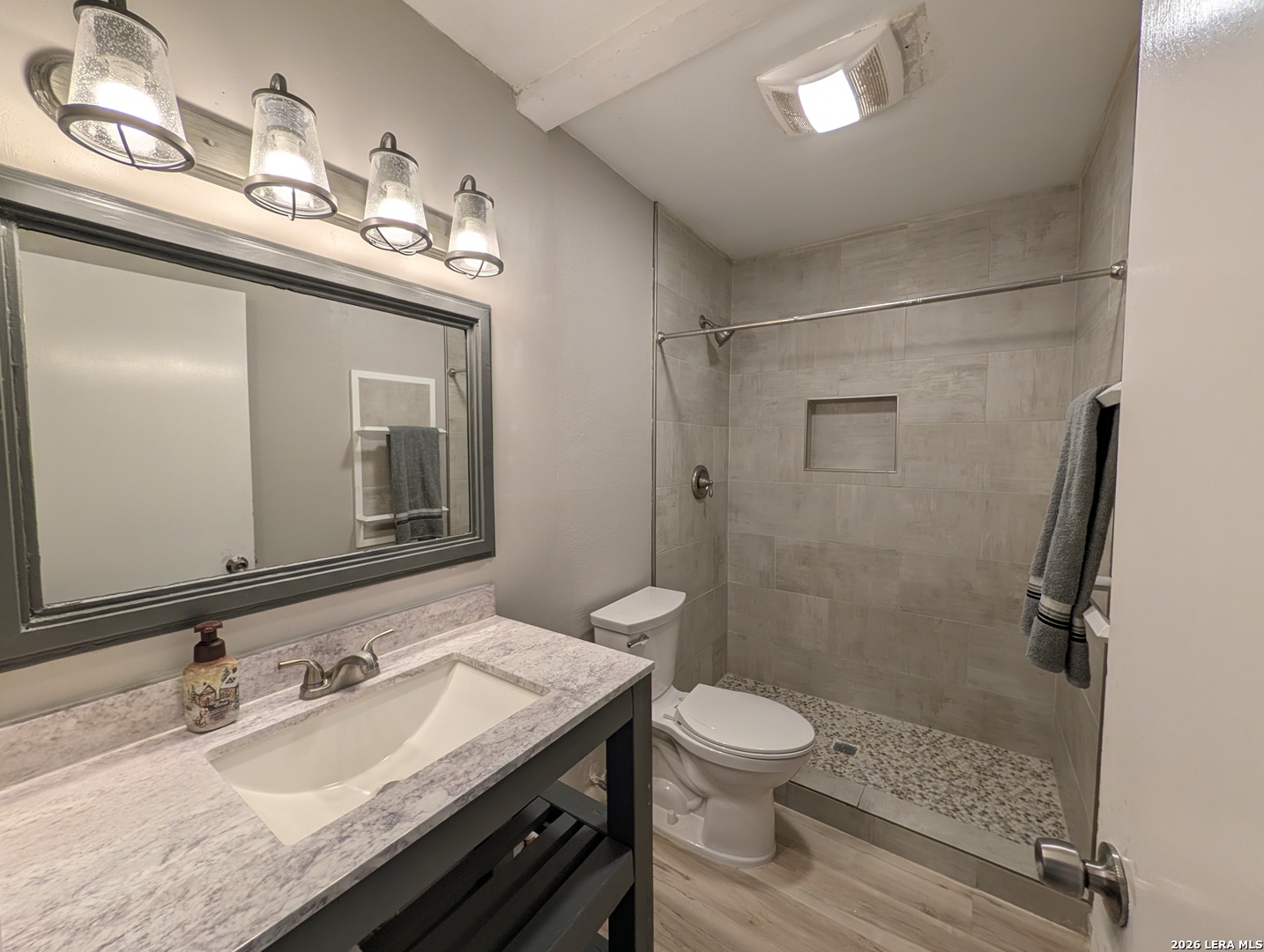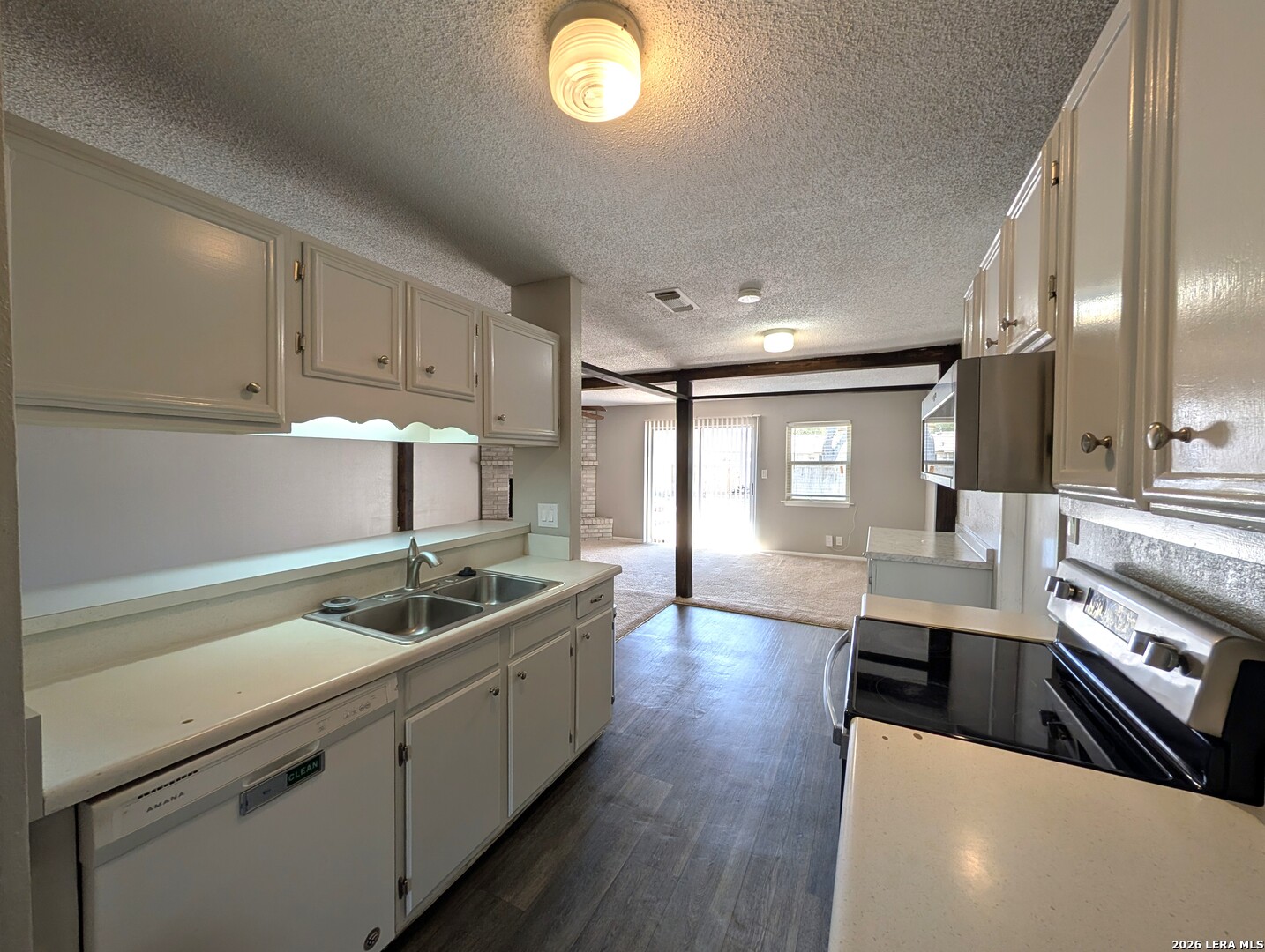 Welcome to this charming and versatile single-story home in the heart of San Antonio. This 3-bedroom, 2-bath residence offers a functional layout with thoughtful updates in the flexible living areas designed to fit your lifestyle. As you step inside, you are greeted by two spacious flex rooms, perfect for a formal dining area, home office, playroom or additional living space. The home features carpet throughout with durable VLP flooring in the entryway, kitchen, both bathrooms, and in one secondary bedroom for added convenience and style. The kitchen flows seamlessly into the main living area, where a cozy fireplace creates a warm and inviting focal point - perfect for relaxing evenings or gathering with family and friends. Both bathrooms were tastefully updated, with bathtubs converted into modern walk-in showers. Step outside to enjoy the expansive backyard, ideal for gatherings, pets, or simply relaxing under the Texas sky. A large wooden deck just off the living room sliding door provides the perfect spot for outdoor dining or weekend barbecues. Major updates include a new roof installed in early 2021 and indoor plumbing upgraded to PEX, offering peace of mind for years to come. With its flexible floor plan, inviting fireplace, improvements, and generous outdoor space, this home is a fantastic opportunity you won't want to miss!