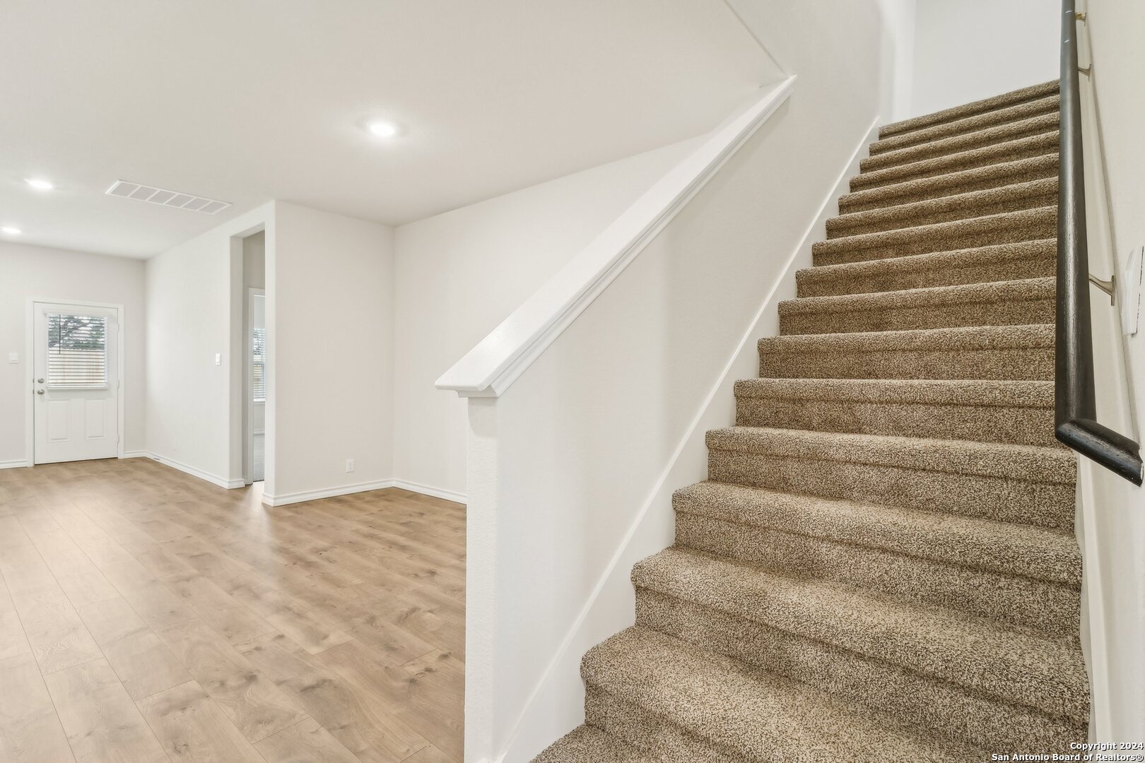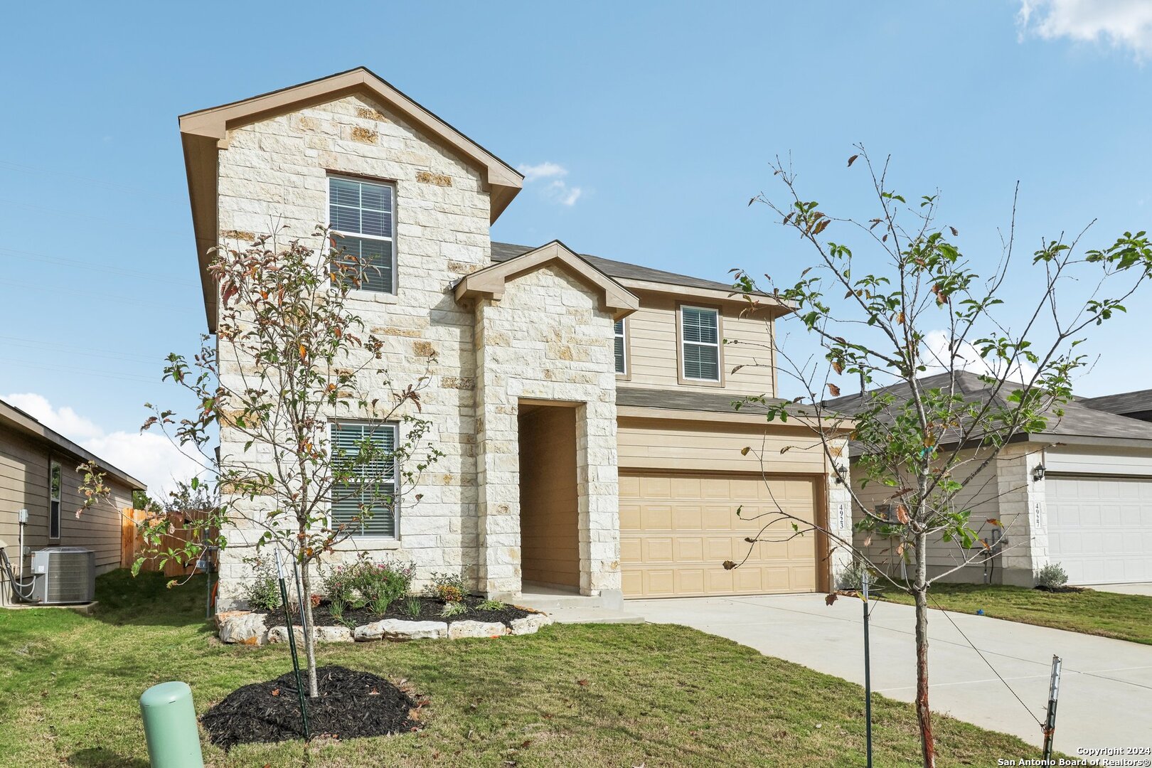 Discover this beautiful DR Horton home in the Brookstone Creek subdivision. Featuring 4 bedrooms and 2.5 bathrooms, this spacious residence offers an open floor plan, a modern kitchen, and a cozy living area. The primary suite, located on the first floor, includes a walk-in closet and en-suite bathroom. Upstairs, you will find 3 additional bedrooms, a full bathroom, and a large secondary living area. Enjoy outdoor relaxation in your backyard overlooking a peaceful greenbelt. Also included are the community amenities, pools, parks, and walking trails. Located in NEISD schools close to major highways and an abundance of shops and restaurants.