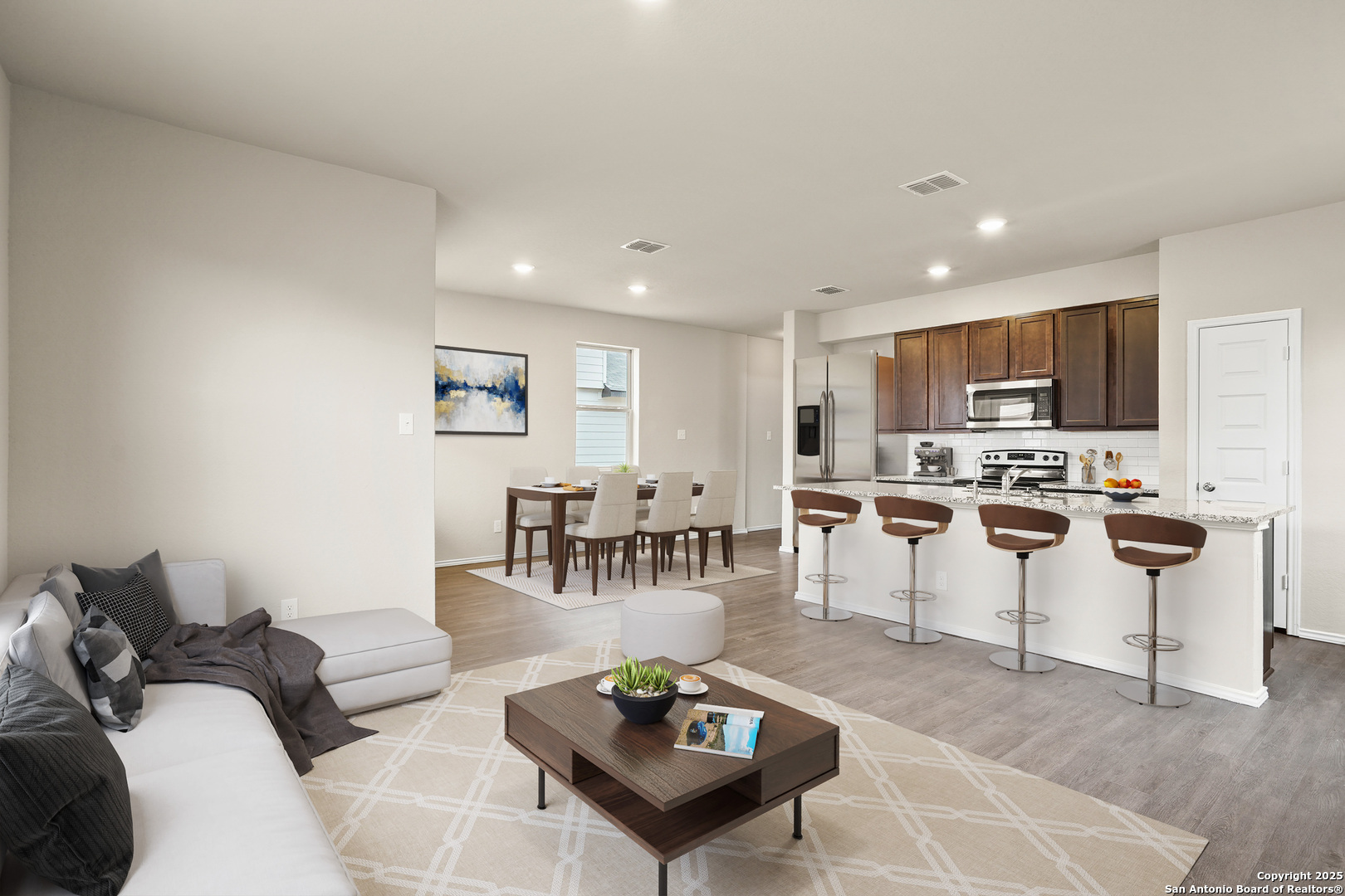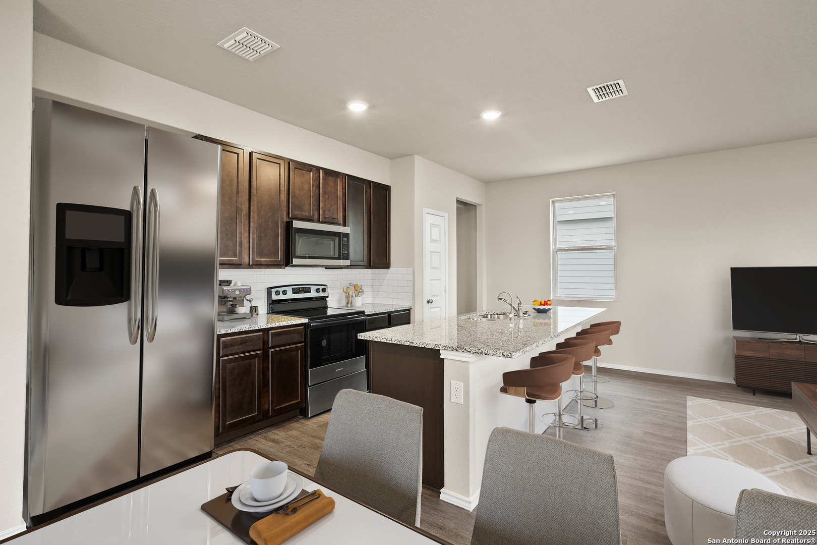 Love where you live in Blue Ridge Ranch in San Antonio, TX! The Sequoia floor plan is a spacious 2-story home with 3 bedrooms, 2.5 baths, and 2-car garage. The first floor offers the perfect space for entertaining with vinyl plank flooring and a large kitchen island open to both the living and dining areas! The gourmet kitchen is sure to please with 42-inch cabinetry, granite countertops, and stainless-steel appliances! Upstairs offers a split floor plan and private retreat for all bedrooms! Retreat to the Owner's Suite featuring double sinks, a sizable shower, and Texas-sized walk-in closet. Enjoy the great outdoors with full sod and a sprinkler system! Don't miss your opportunity to call Blue Ridge Ranch home, schedule a visit today!