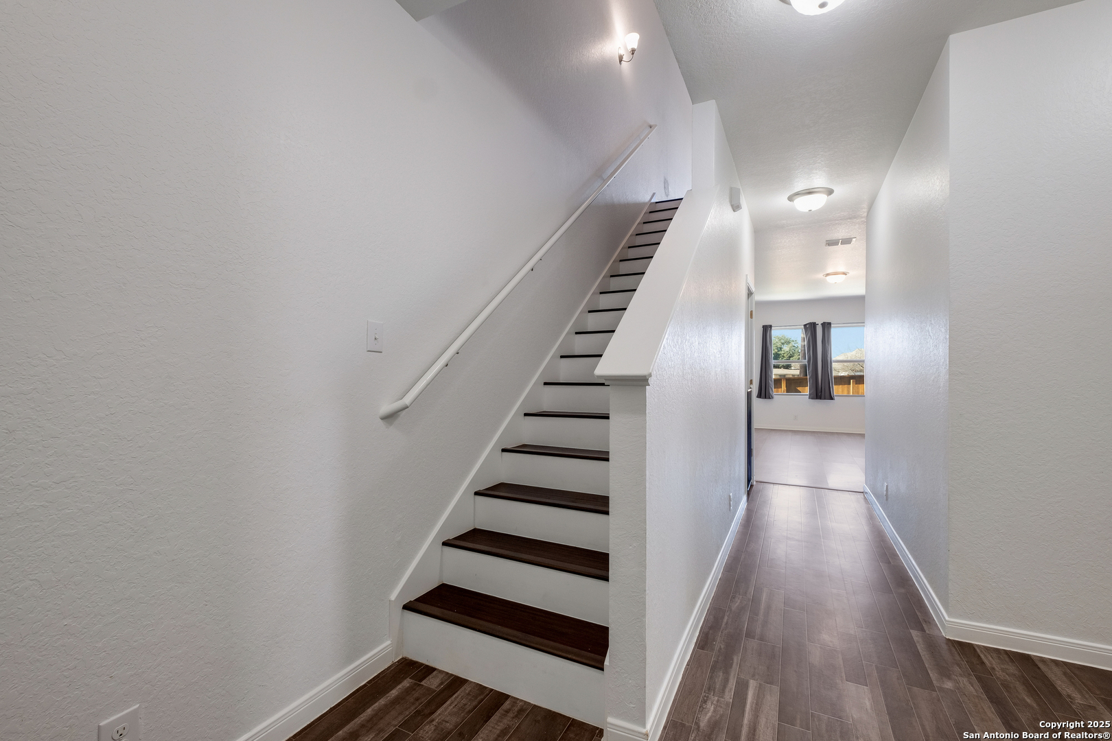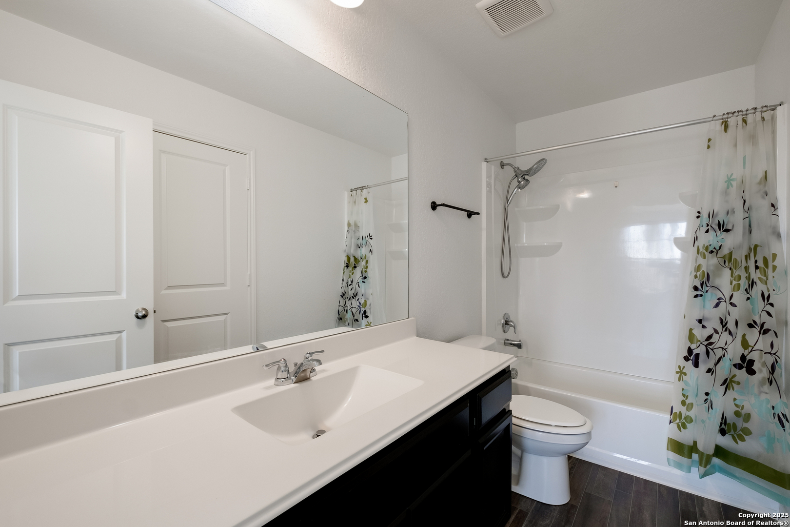 ***$500 OFF FIRST MONTH'S RENT*** Welcome to this stunning 4-bedroom, 3-bath home in the desirable Hallie's Ranch community! Featuring an open floor plan, this home offers a modern island kitchen with granite countertops, a breakfast bar, stainless steel appliances-including a refrigerator-and gas cooking. The interior boasts vinyl plank flooring throughout-NO carpet! A secondary bedroom downstairs provides flexibility for guests or multi-generational living. Upstairs, the spacious primary suite features a walk-in shower and ample closet space. Enjoy minimal electric bills with solar panels, adding incredible value and efficiency! Conveniently located near Randolph AFB, The Forum Shopping Center, and in the sought-after Schertz-Cibolo-Universal City ISD. Don't miss out on this move-in-ready home-schedule a showing today!