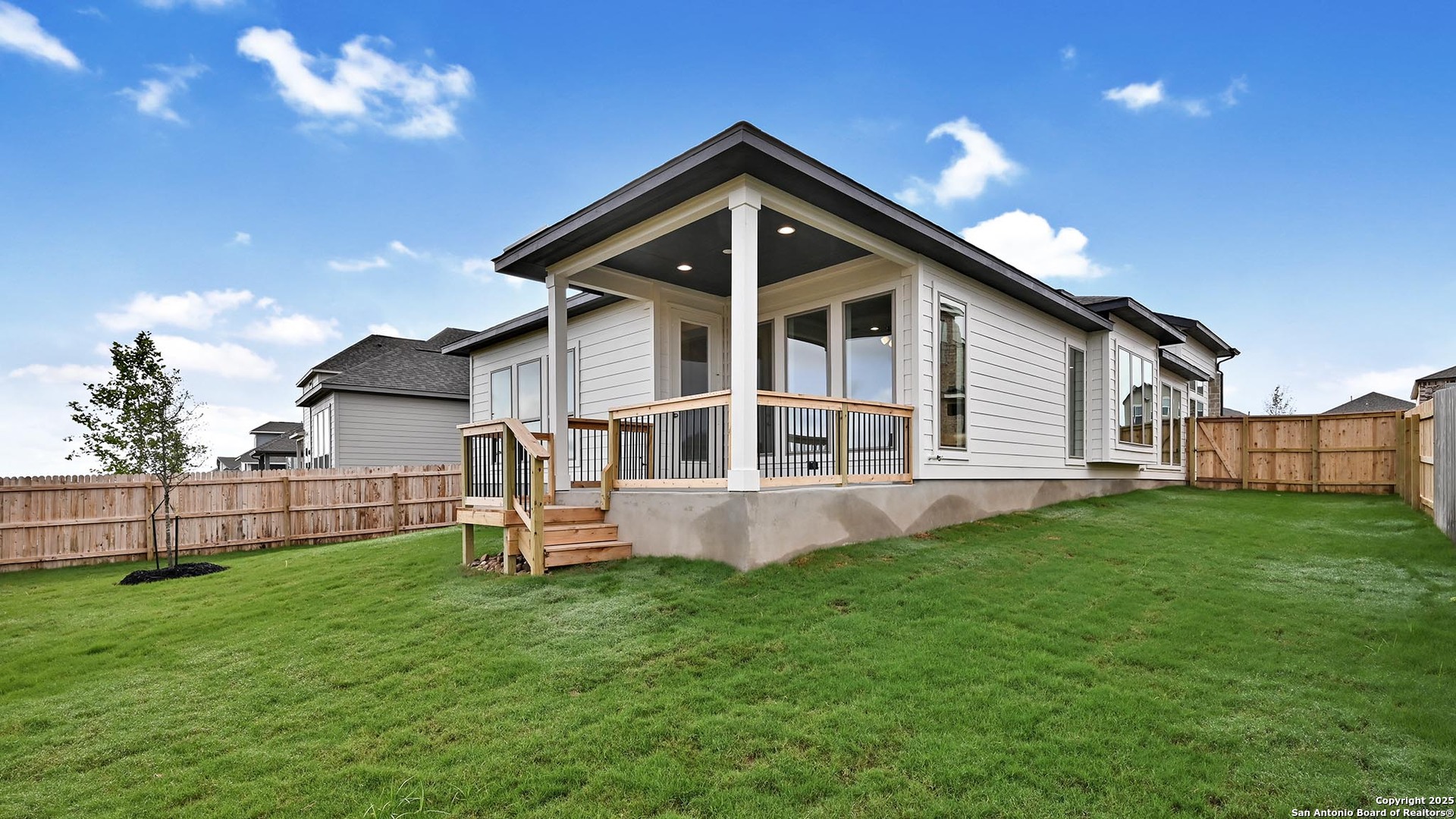 READY FOR MOVE-IN! Step through the front entrance and you'll find a spacious entryway adorned with three large windows allowing natural light to illuminate the space. Located right off the front entrance is the utility room. As you proceed into the family room, you'll be captivated by the 19-foot ceilings. The corner kitchen features an island with built-in seating and a walk-in pantry. The adjacent dining area is bathed in natural light from the corner wall of windows. Enter the private primary suite, where a wall of windows welcomes you filling the room with natural light. French doors lead you to the primary bath, which offers dual vanities, a spacious glass-enclosed shower, and two oversized walk-in closets. On the second floor, you'll discover an open game room. The secondary bedrooms feature walk-in closets, separate linen closets, and share a full bathroom. A private guest suite with a full bathroom completes the upstairs. Outside is an extended covered backyard patio. Completing the floor plan is a mud room located just off the two-car garage.