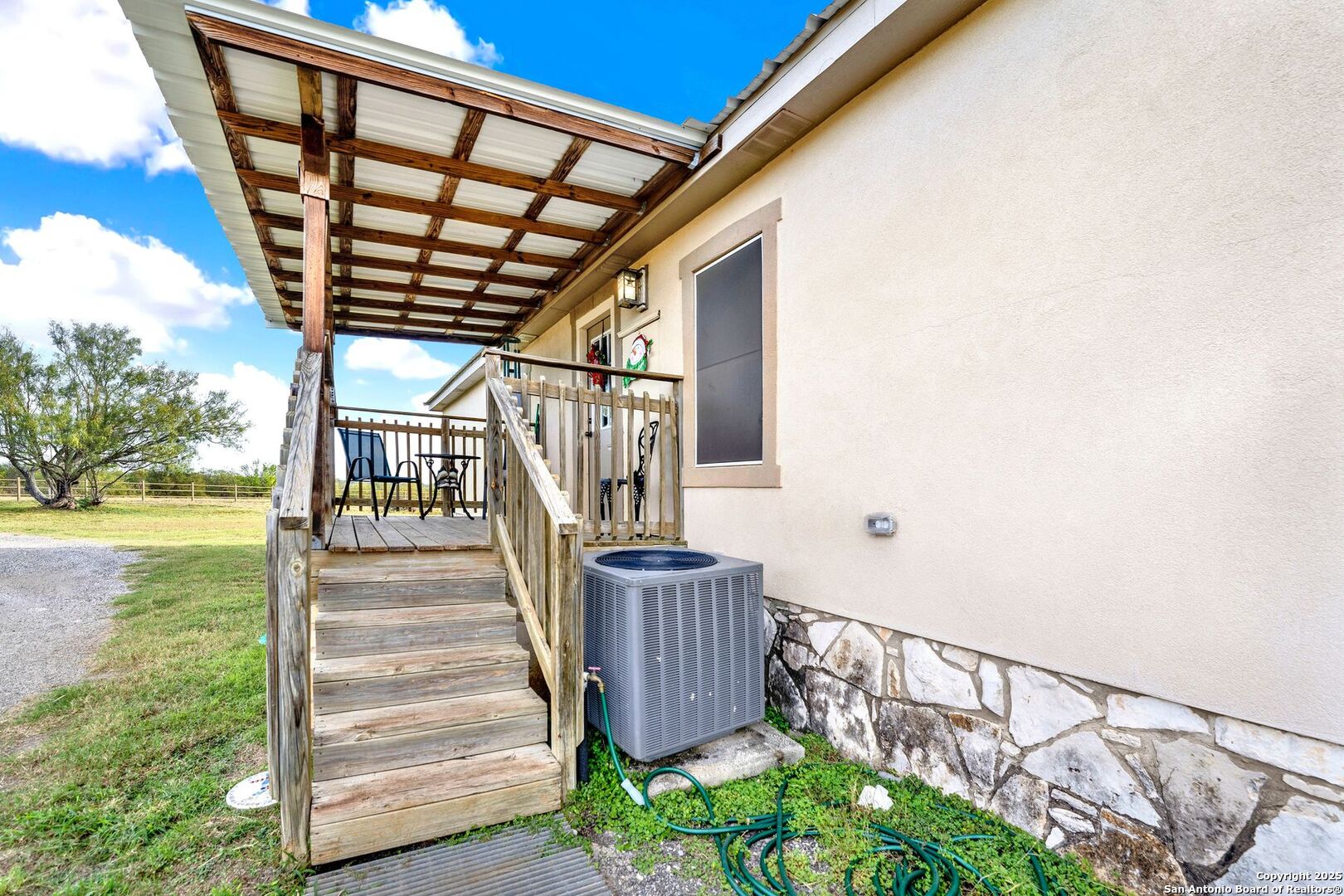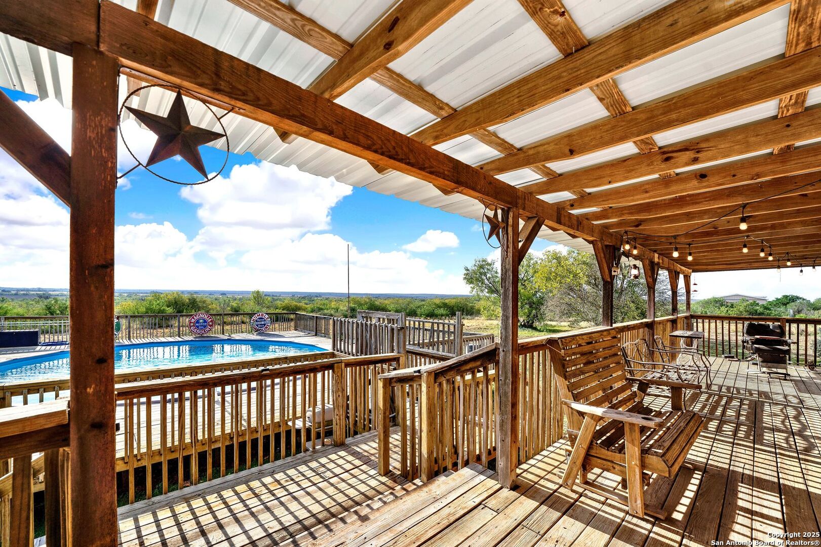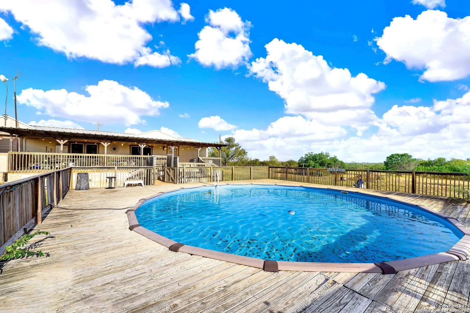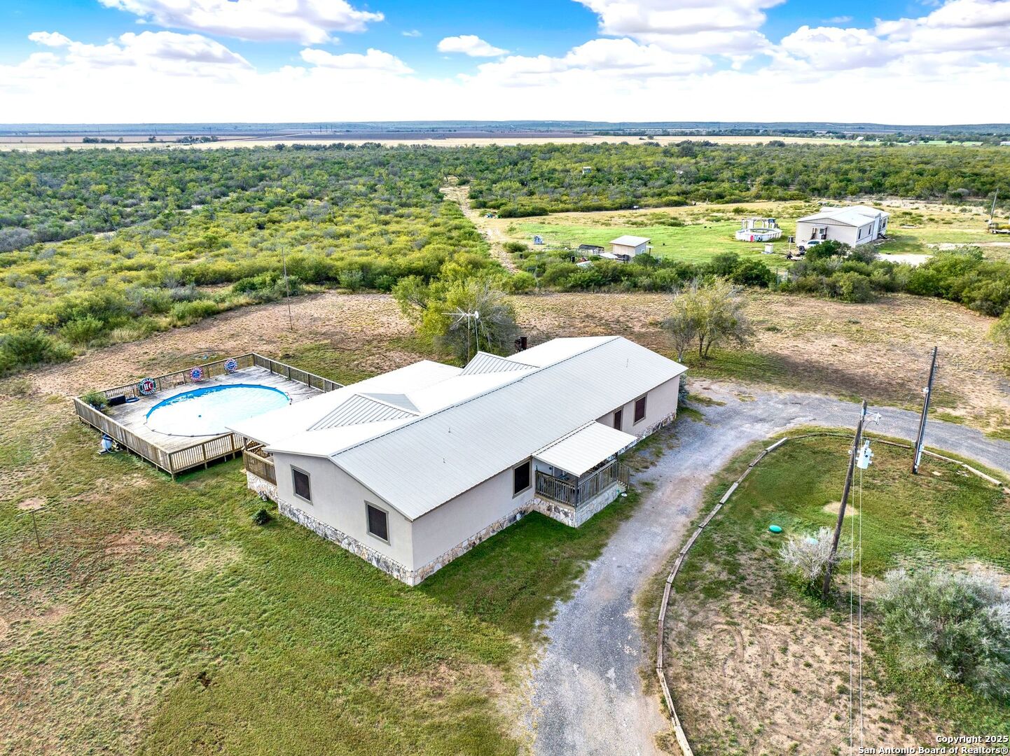 Escape to your own private retreat on 10.3 acres just northeast of D'Hanis in Medina County. This spacious 4BR/2BA, 2,432 sq. ft. manufactured home has been thoughtfully updated with modern flooring, granite kitchen countertops, upgraded fixtures, and all kitchen appliances conveying. A metal roof, circular drive and new stucco/rock exterior are just a few of the upgrades. Step outside and enjoy true Texas Hill Country living. A sparkling pool with a recently replaced liner sits alongside an expansive wooden deck that connects seamlessly to the covered back porch-an ideal setting for relaxing, entertaining, or simply taking in the breathtaking panoramic views to the south. With no close neighbors in sight, this property offers a level of peace and privacy that's hard to find. The majority of the acreage is covered in thick native brush, providing natural seclusion and excellent wildlife habitat. Whitetail deer are frequent visitors, making this a great spot for hunting or just enjoying nature from your own backyard. If you're looking for space, tranquility, and beautiful views all in one place-this property delivers.