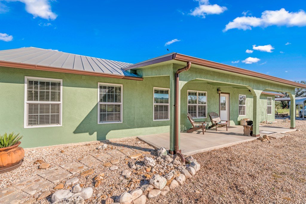 Nestled among gorgeous mature oaks, on a 9.2 ac. AG EX parcel, this stunning property offers the perfect blend of modern efficiency & rustic charm.The 1880sf home offers 3 bedrooms & 2 baths with SIP contruction (Super insulated panel) ensuring high-energy efficiency and year round comfort. Split bedroom layout offers privacy & functionality. Large country kitchen looks out into the Hill country views embracing the beauty of the hills. 30X40 metal shop on slab offers many options and includes an RV hook up &storage with large garage door on one side. Sustainability meets innovation with a state of the art rainwater collection system and well providing great water options. 400+ feet of N Llano River with access down to the water gives you everything you could want. Wildlife ex adds lower taxes and located only 4 miles from town gives you the perfect balance in convenience and country life. Come visit the lifestyle you have dreamed of to plant roots & grow your dreams!