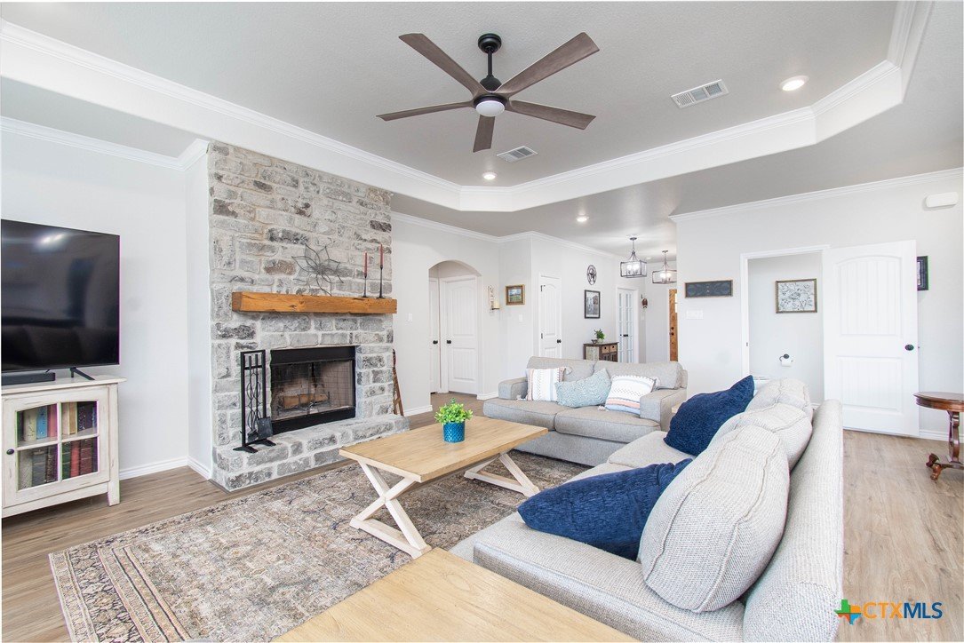 Welcome to your dream lake home in the highly sought-after North Belton School District / Tanglewood Subdivison! Sitting on a spacious 0.8-acre lot with a low tax rate, this stunning custom built home offers the perfect blend of luxury and functionality. Step inside to find a beautifully designed kitchen featuring custom cabinetry, beautifully designed center island, granite countertops, and high-end appliances, perfect for the home chef. The open-concept living area boasts wood-look luxury vinyl plank flooring and a hand-built fireplace, creating a warm and inviting space for gatherings. Outside, enjoy your own private oasis with a large, covered back patio that overlooks the sparkling pool ideal for entertaining or relaxing on warm Texas days. The three-car garage provides ample space for vehicles, storage, or a workshop. Easy access to lake Belton makes this home a perfect get away location for fishing and recreation! Don’t miss the opportunity to own this rare gem that combines custom craftsmanship, outdoor living, and a prime location.
