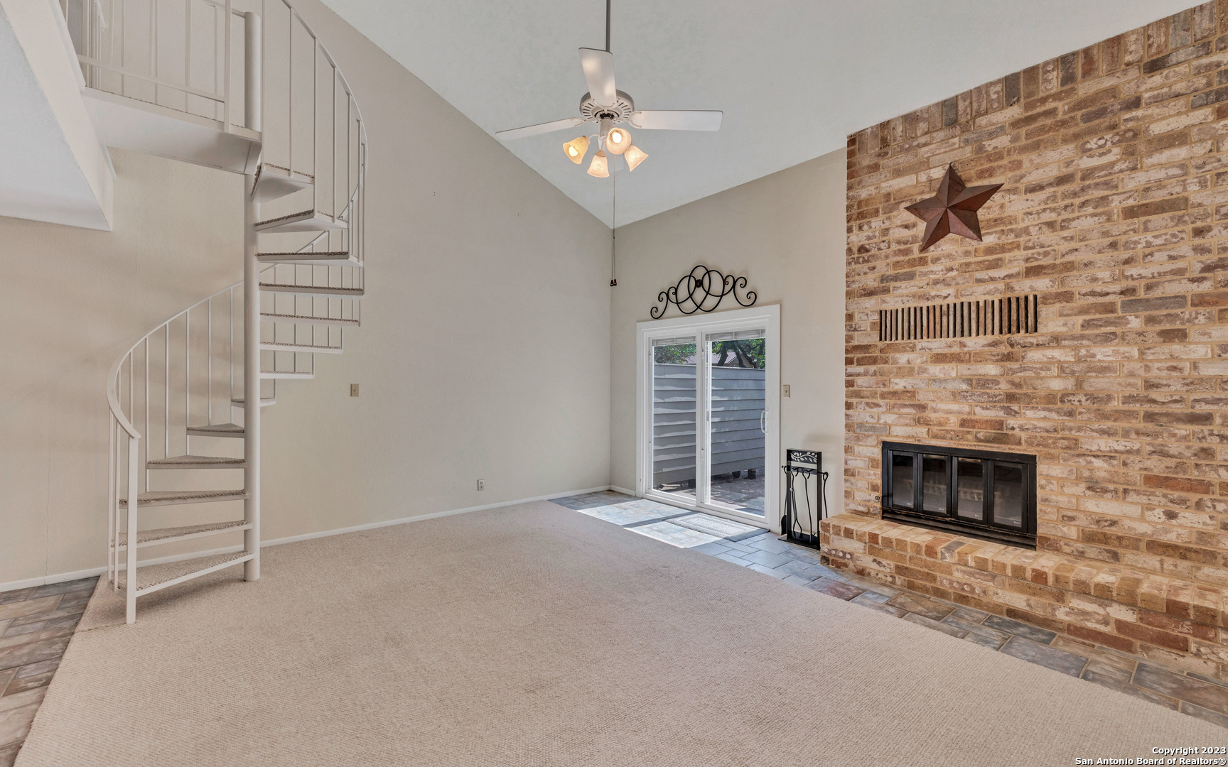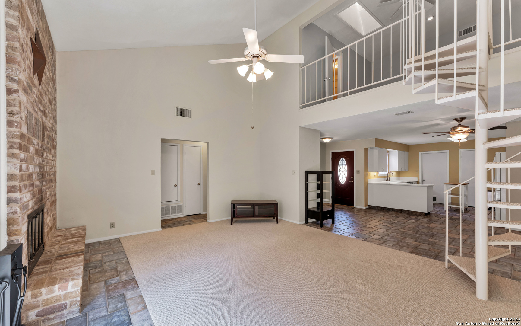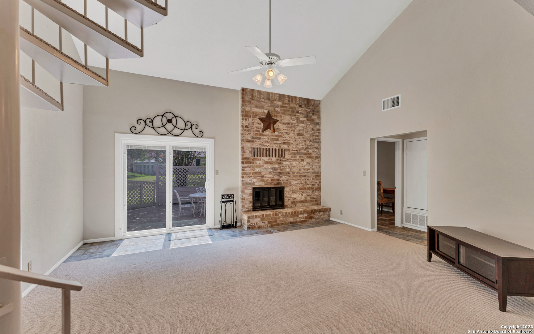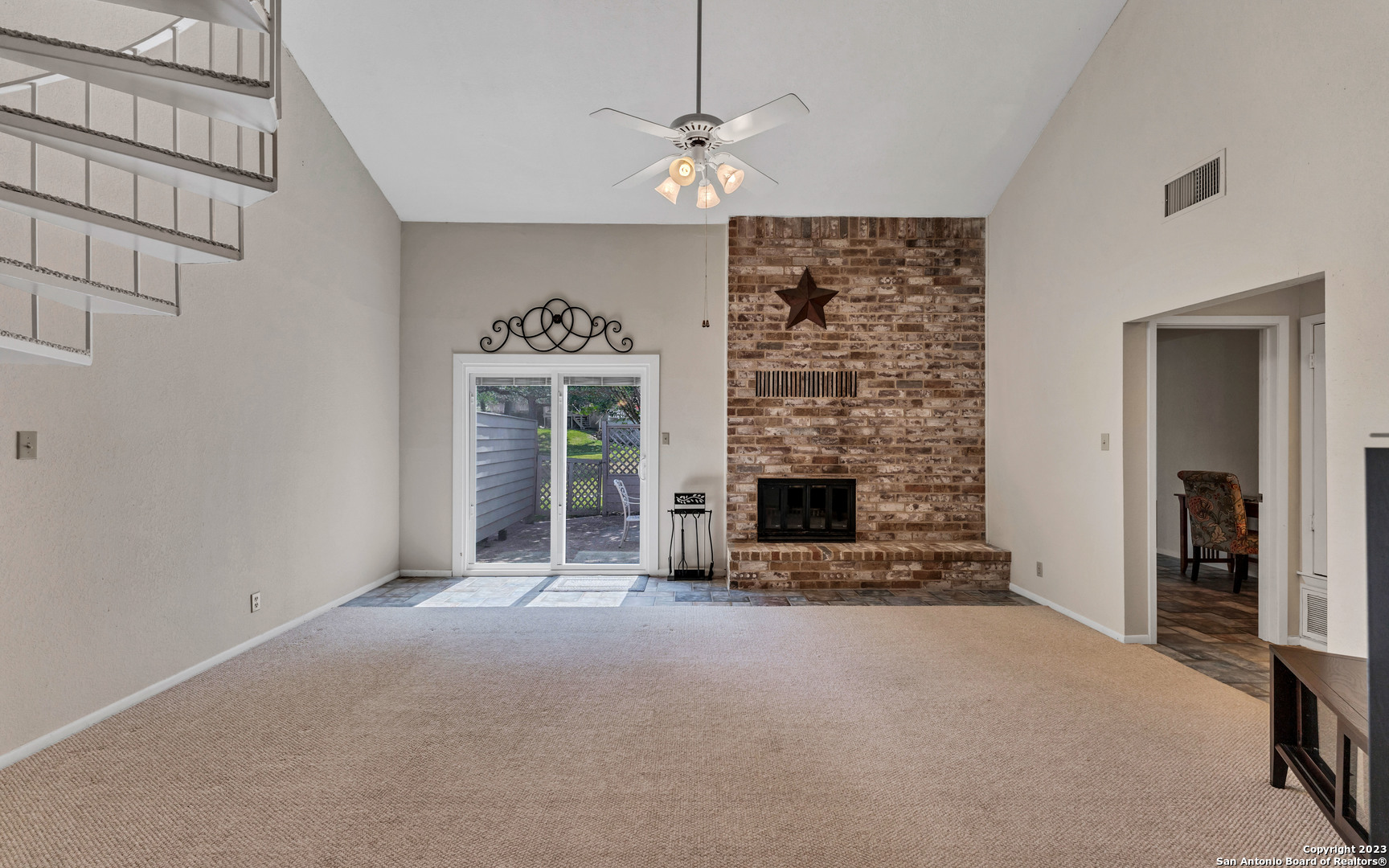 Just reduced this condo to sell! Just minutes away from Canyon Lake tucked away in the trees, you will find this open floor plan townhome that has not one but two fireplaces, privacy fenced patio and walking distance to community pool. The beautiful floor to ceiling brick fireplace in the living room can be enjoyed while you are in the dining room or cooking in the kitchen and the skylight gives you lots of natural lighting. Master has sitting are with floor to ceiling brick fireplace that could be great on winter days reading a nice book. Master also features double vanity, update walk-in tile shower and walk-in closet. Loft can be used as a bedroom with full bath. This condo is ready to be your new home or a great weekend place to get away.