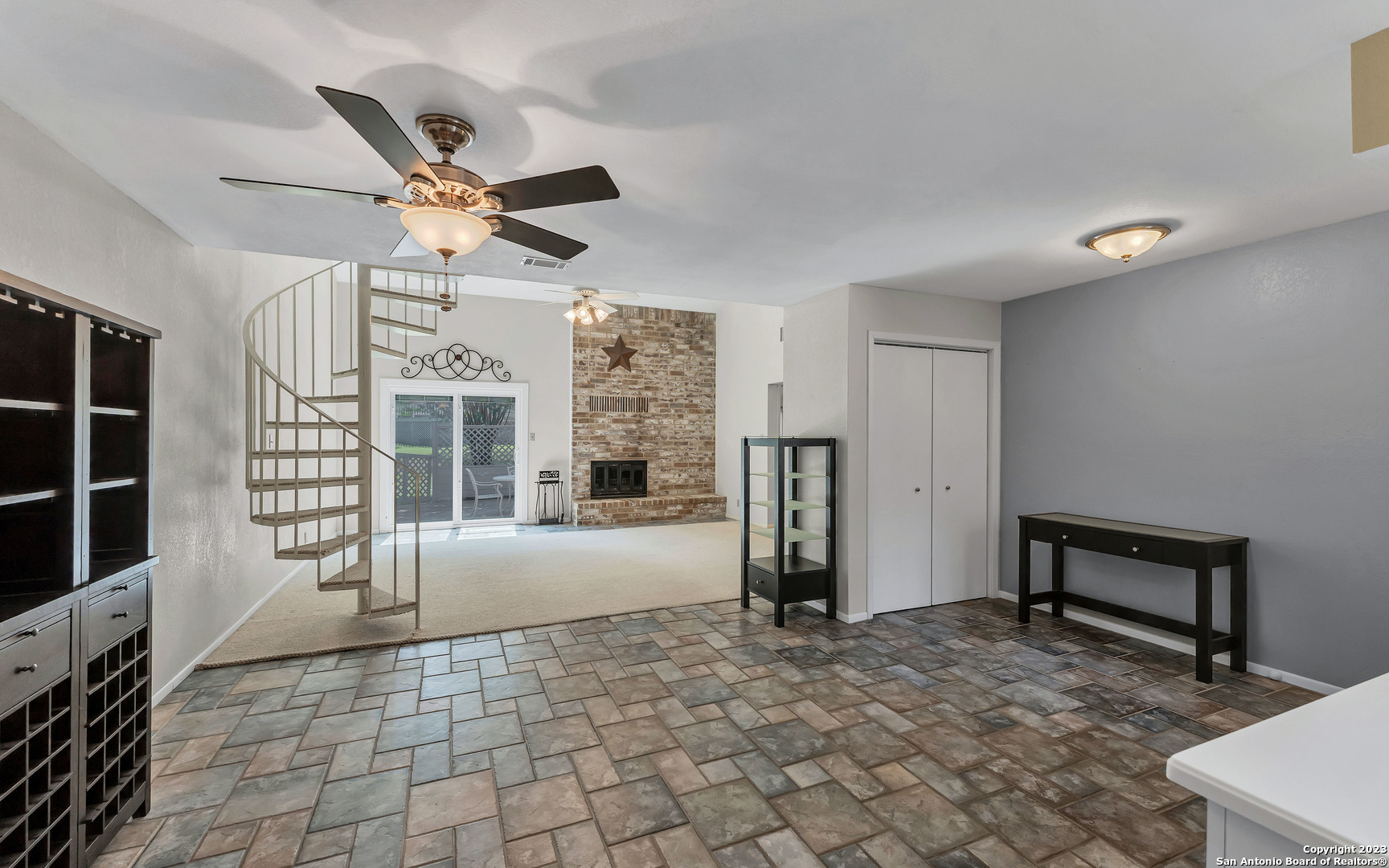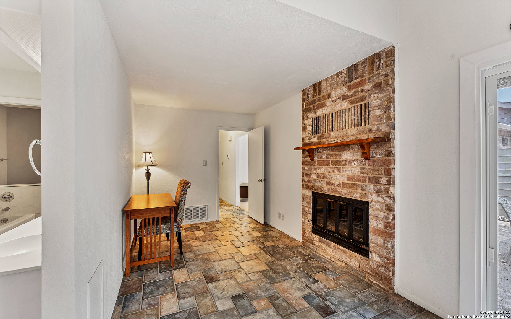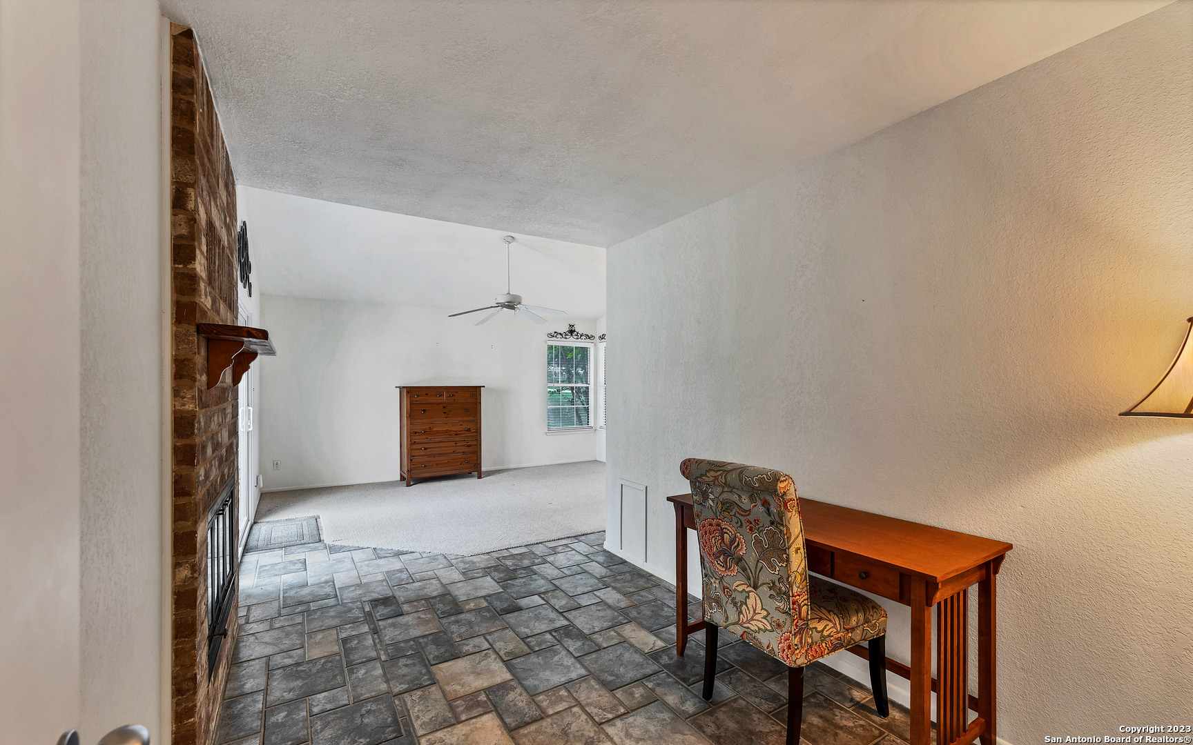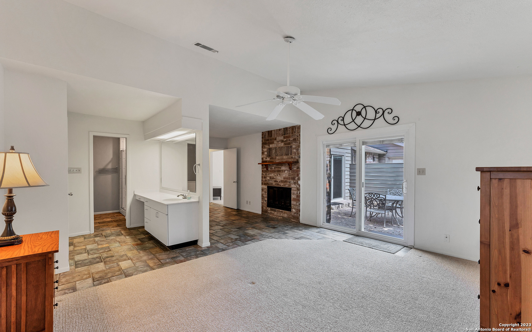 Just reduced this condo to sell! Just minutes away from Canyon Lake tucked away in the trees, you will find this open floor plan townhome that has not one but two fireplaces, privacy fenced patio and walking distance to community pool. The beautiful floor to ceiling brick fireplace in the living room can be enjoyed while you are in the dining room or cooking in the kitchen and the skylight gives you lots of natural lighting. Master has sitting are with floor to ceiling brick fireplace that could be great on winter days reading a nice book. Master also features double vanity, update walk-in tile shower and walk-in closet. Loft can be used as a bedroom with full bath. This condo is ready to be your new home or a great weekend place to get away.