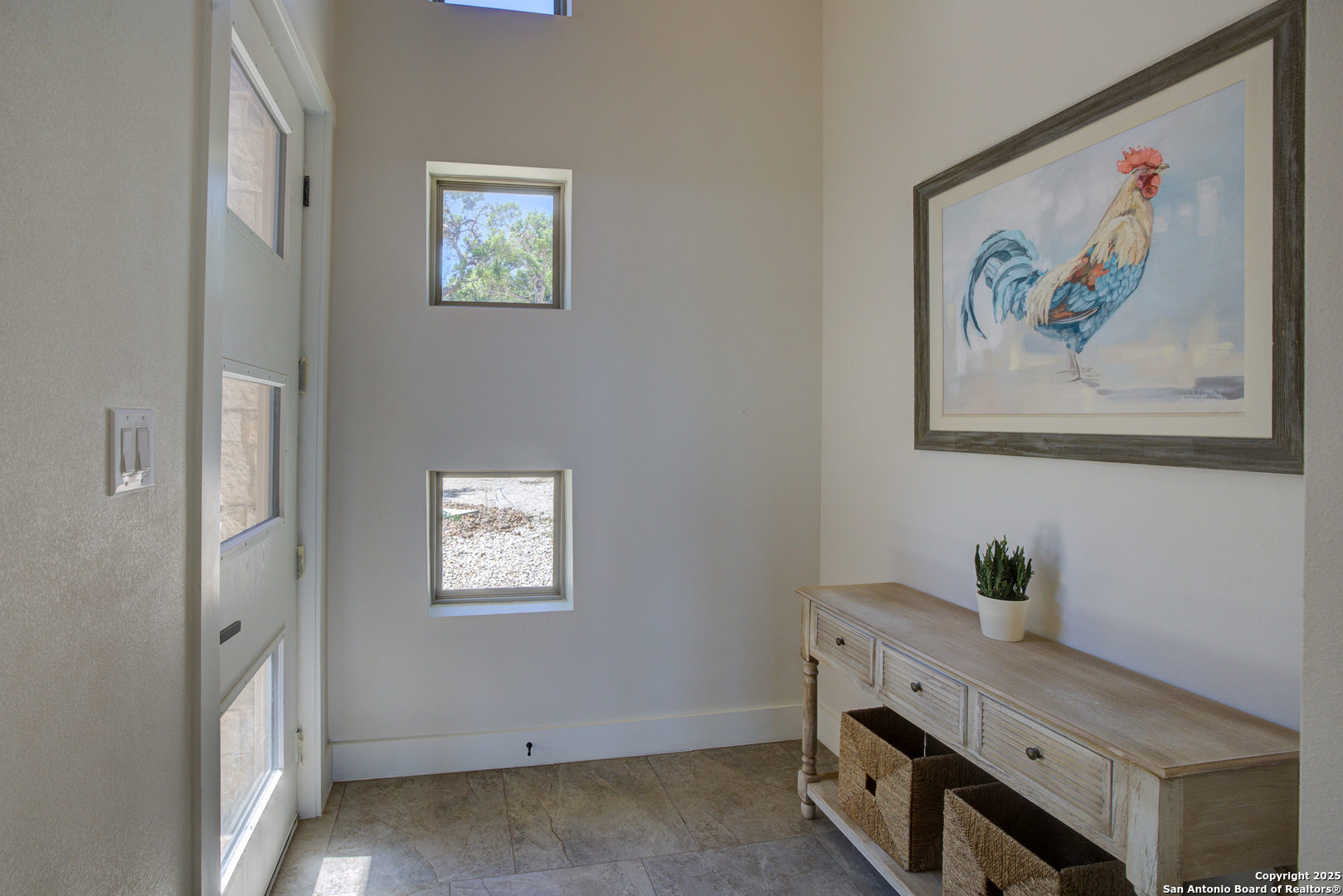 Welcome to Naked Indian Trail-where breathtaking panoramic views of Canyon Lake await from your private hilltop retreat. Better than new, this custom 2-year-old builder's home offers 2,125 square feet of thoughtfully designed living space, all situated on 5 unrestricted, partially fenced acres. Enjoy privacy, space, and flexibility to build, expand, or bring your animals-no HOA, no city restrictions. This 4-bedroom/2-bath home features an open-concept layout, ceramic tile flooring throughout, and a bright, airy island kitchen perfect for entertaining. Large windows and covered porches maximize the stunning views and natural light. Additional features include a detached garage, private well with storage tank, and an impressive stone entrance that adds charm and presence. Located just minutes from several county parks and Canyon Lake boat ramps, this property blends scenic Hill Country living with easy access to outdoor recreation, dining, and shopping.
