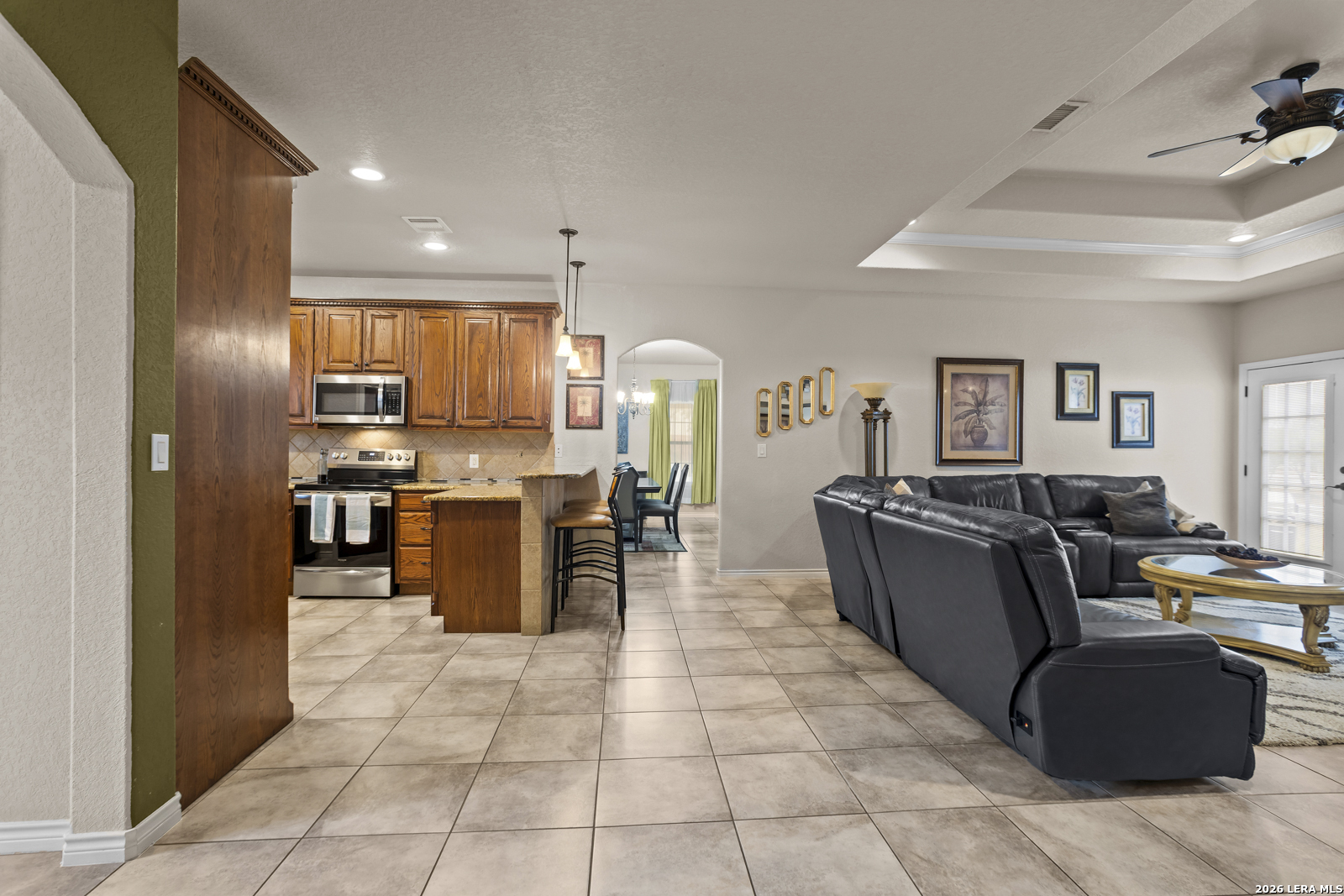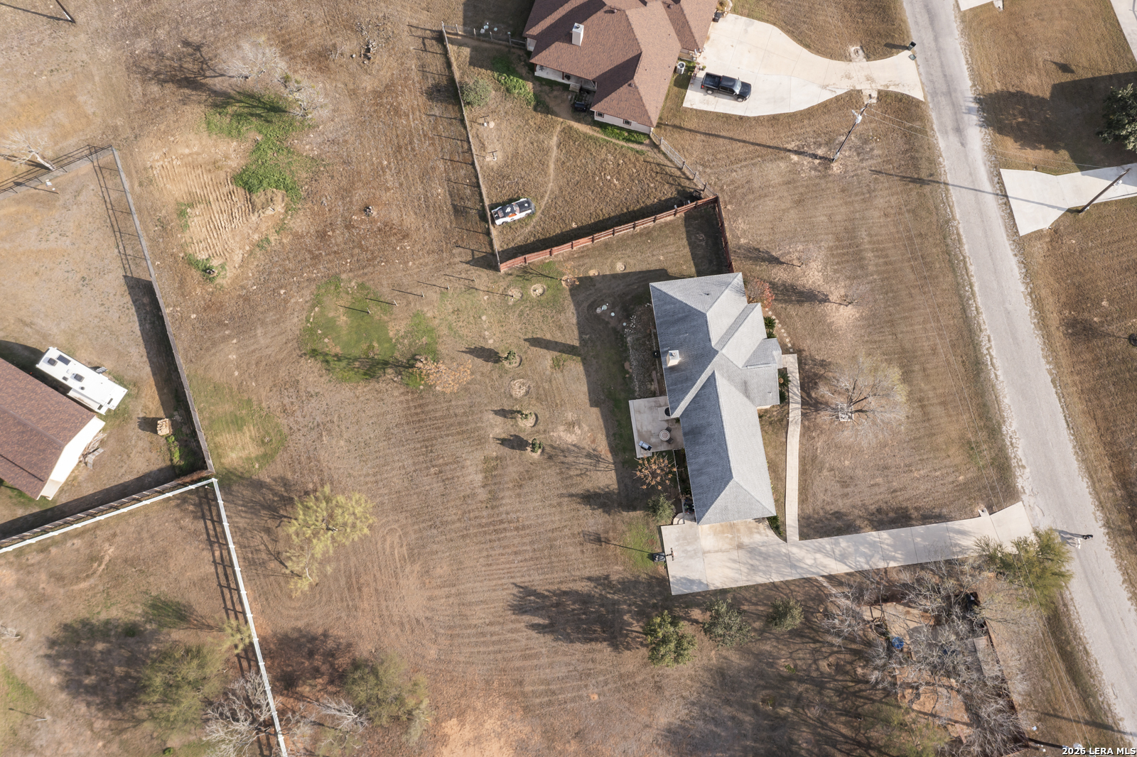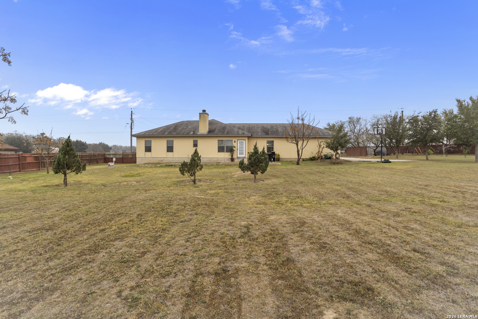 Welcome to this charming single-story home situated on a spacious 1.1-acre lot in the desirable Miller's Crossing neighborhood of La Vernia. Offering 3 bedrooms and 2 bathrooms across 1,926 square feet, this property provides a comfortable blend of space, functionality, and country-style living. Inside, the home features a large living room with a cozy fireplace that flows seamlessly into the kitchen, creating an open-concept layout ideal for everyday living and entertaining. The kitchen offers ample space and connects easily to the main living areas, enhancing the home's open feel. The primary suite is generously sized and filled with natural light, complete with a private ensuite bathroom featuring a double vanity and an extended walk-in shower. Secondary bedrooms are well-sized and versatile for guests, a home office, or additional living needs. Outside, enjoy a large backyard with plenty of room for outdoor activities, gardening, or future improvements. The expansive lot offers privacy and flexibility while still being part of an established neighborhood. This property is a great opportunity to enjoy space, comfort, and a peaceful setting just outside the city.