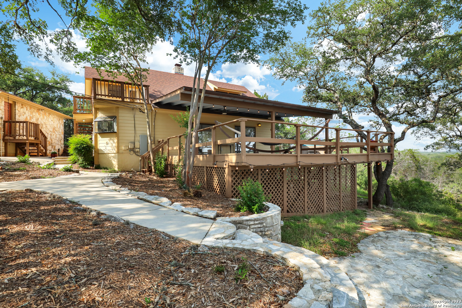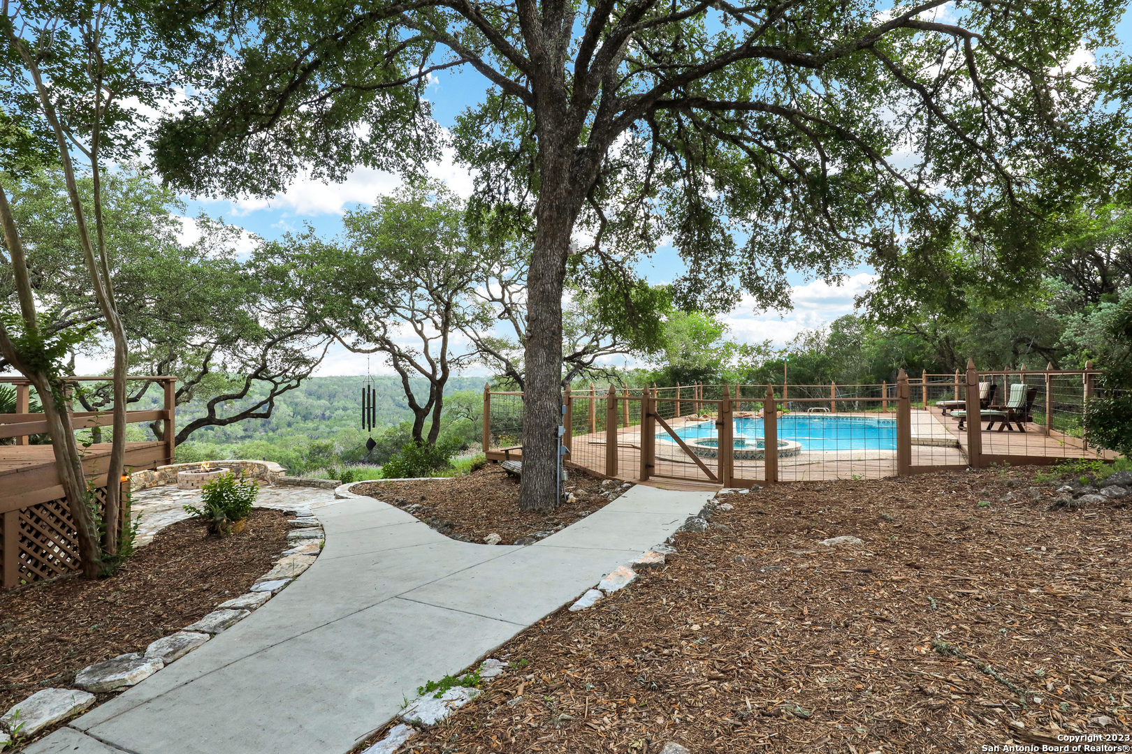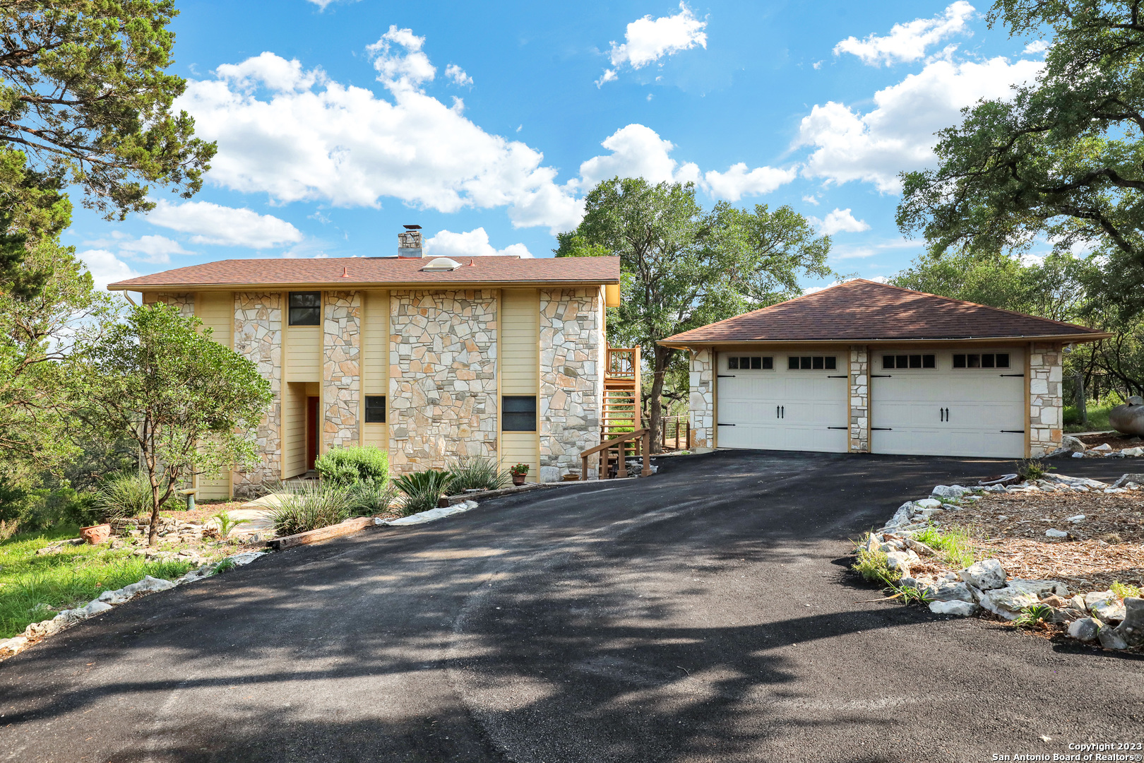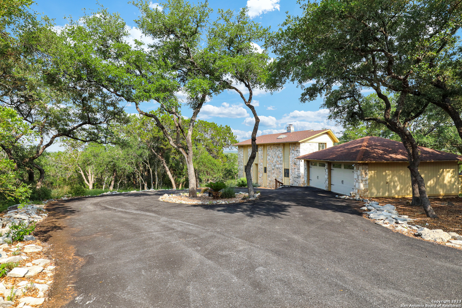 Rare opportunity! Hill Country Property walking distance to Guadalupe River in New Braunfels now for sale! Stunning home on 5 acres with extraordinary Hill Country views and River access is available now!! This home is a resort in of itself and your new life of leisure is waiting for you! Secured by a gated entry, this 5-acre resort style property has been updated and extremely well maintained and is ready for immediate move-in. The newly paved driveway has plenty of space for multiple cars and has a perfect slot for RV/boat storage. Inside you will find high wood ceilings, fresh paint, granite counter tops, custom cabinets, water softener, reverse osmosis systems, fireplace, a spiral staircase that leads to the master, dual vanity sinks, and even a jetted tub! The backyard will leave you speechless, over 5-acres of peace and tranquility with endless Hill Country views and privacy. Enjoy sipping coffee on cold mornings in your hot tub, or entertaining guests with your own private pool, outdoor firepit, and huge covered deck that is perfect for any get together or celebration. On the bottom floor you have tons of storage space as well as a separate one-bedroom apartment with full bath that can be used for friends, family, or additional income. This community also provides river front access to the Guadalupe River. Go fishing, swim, bike, entertain...this is your new life of leisure. Call today to schedule your showing before it's too late!