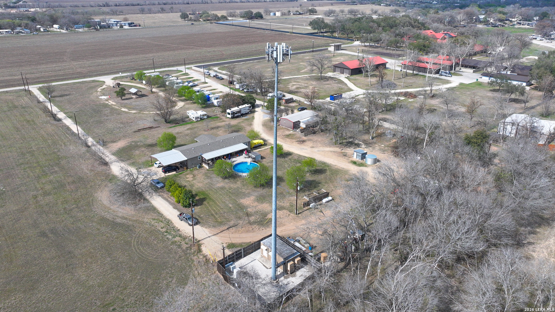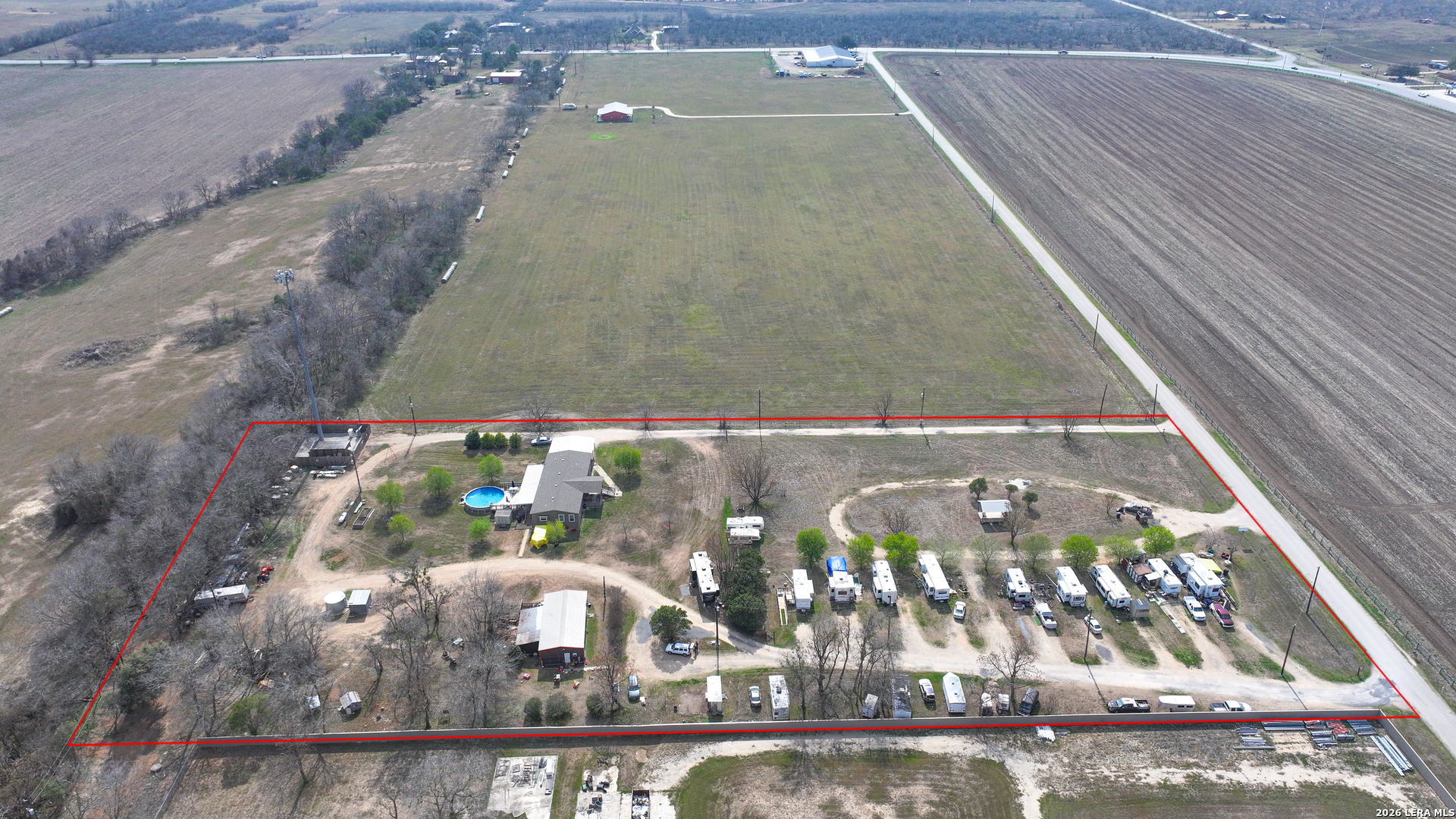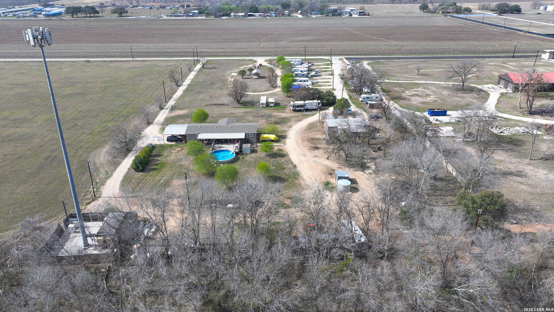 Existing RV Park business is ready for you to take on! Permitted for 20 plus RV slots, with10 fully established, individually power metered and leased month to month. Property features primary 2017 built home, secondary home, above ground pool, generator, propane tank, 4000 gl water tank and motor-powered water well in covered building, two circle driveways, three septic tanks, three electric meters on FIVE ACRES! Owners own five of the 10 leased RVs which they intend to retain. Refrigerator in primary home conveys. Tower and fenced area around the tower at back corner of property leased to utility company. FEMA Service Map indicates not in flood plain. Owners to discuss financials of their family owned business after acceptance of an offer.