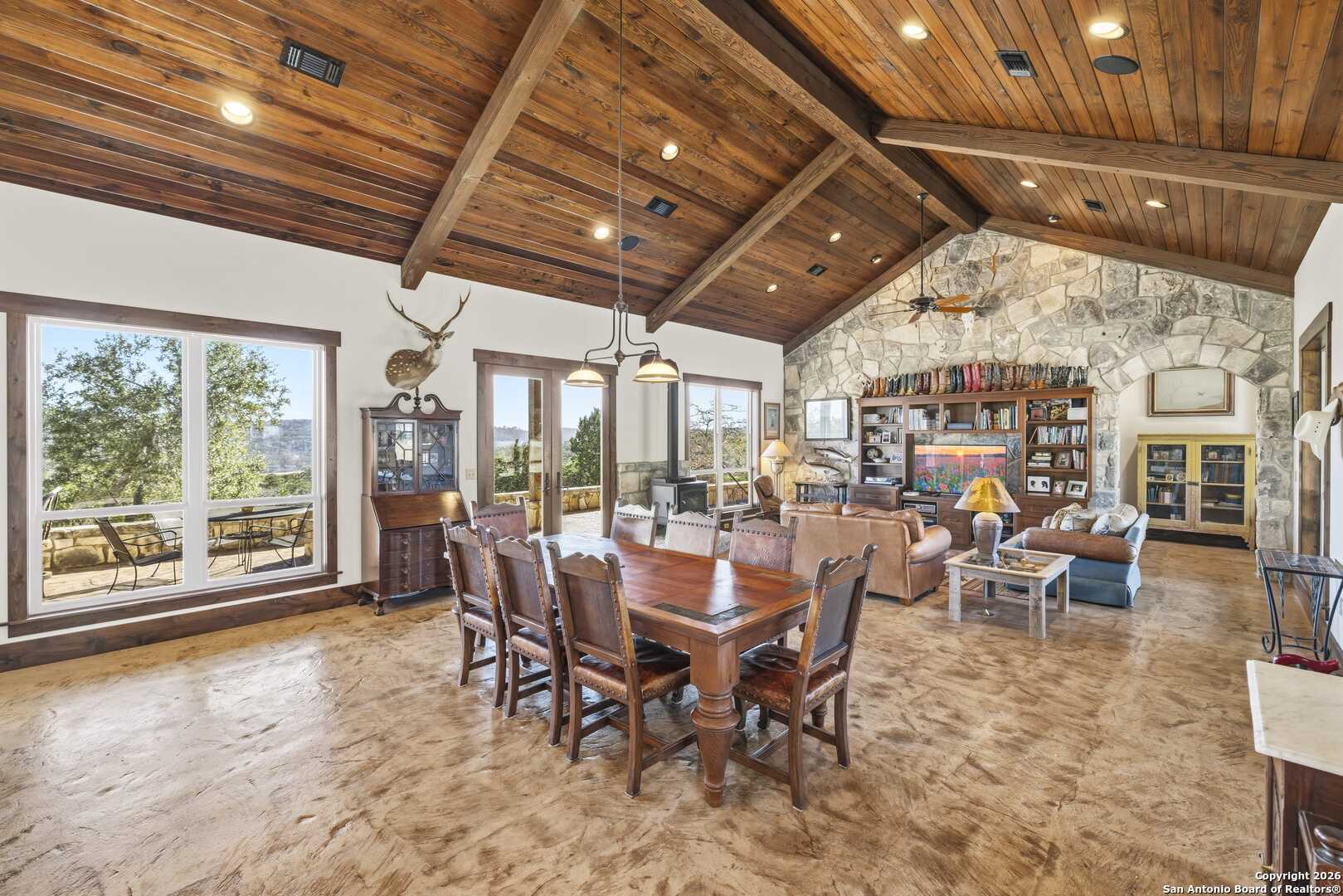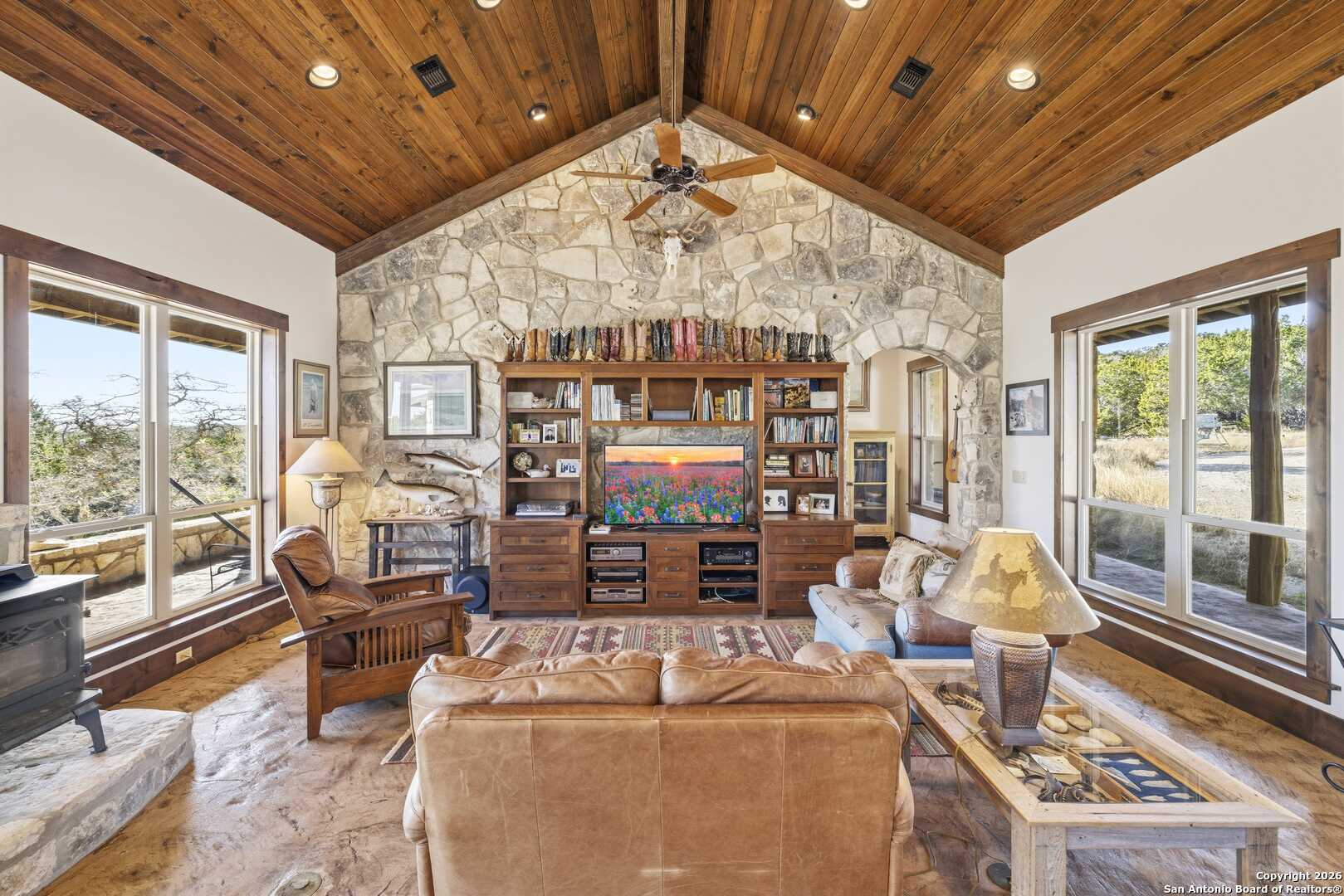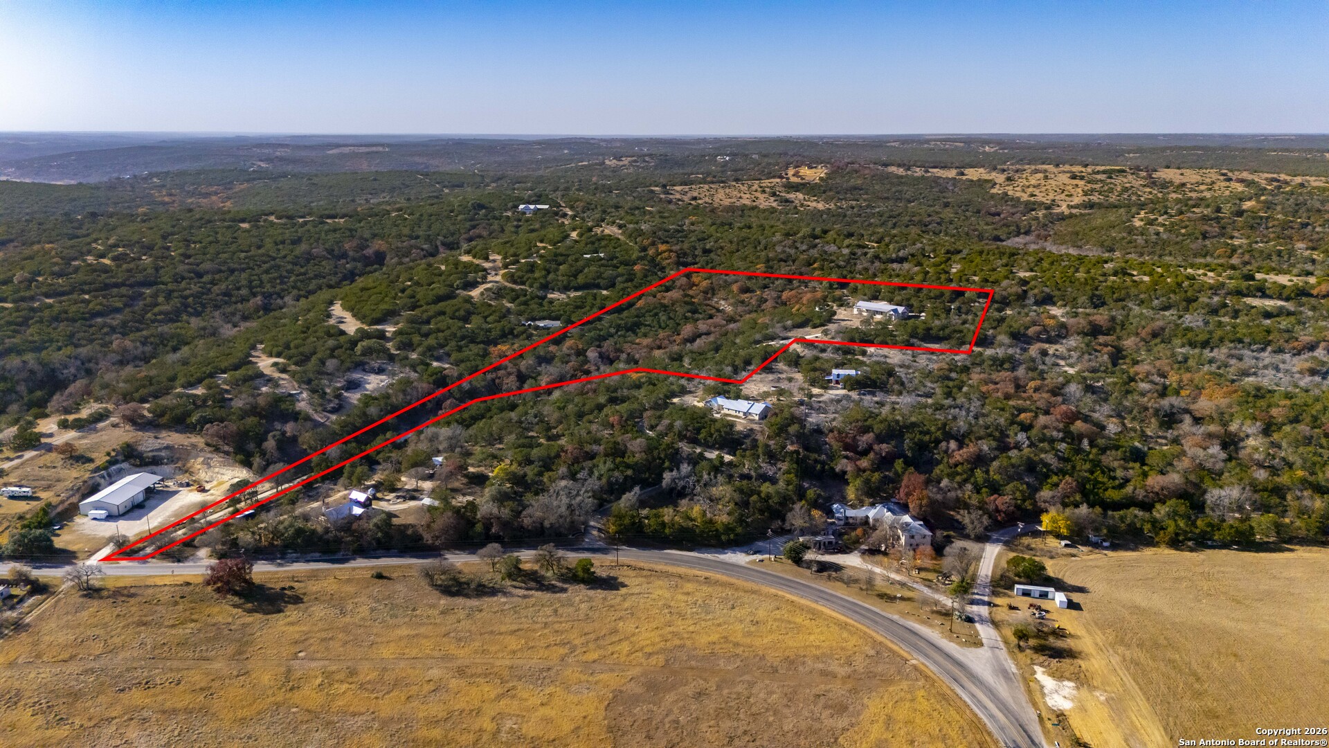 11.52 Ag Exempt Acres with Hill Country Views that truly take your breath away! The 2,825 sq. ft. residence features 3 spacious bdrms, each with its own private ensuite bath, offering comfort & privacy. Designed w/both style and functionality in mind, the home boasts soaring ceilings, an open-concept floor plan, distinctive stained floors & custom cabinetry. The chef's kitchen is highlighted by beautiful leathered granite countertops, a large pantry & seamless flow into the main living areas, perfect for entertaining. The split-bedroom layout provides an oversized primary suite complete w/additional space ideal for a home office, along w/direct access to both the front & back patios. Outdoor living is exceptional, w/expansive covered patios designed to take full advantage of the panoramic scenery. The back patio features a built-in BBQ area & striking stone fireplace, creating the perfect setting for relaxing & entertaining while enjoying Hill Country views. Additional amenities include a licensed septic system, an impressive rainwater catchment system, a two-car carport w/attached storage & an additional storage shed. Just 12 miles from Kerrville. Hill Country Living at its Best!