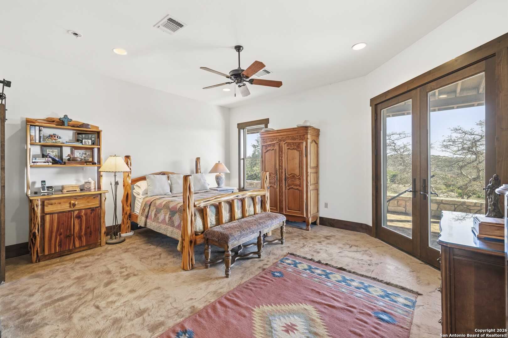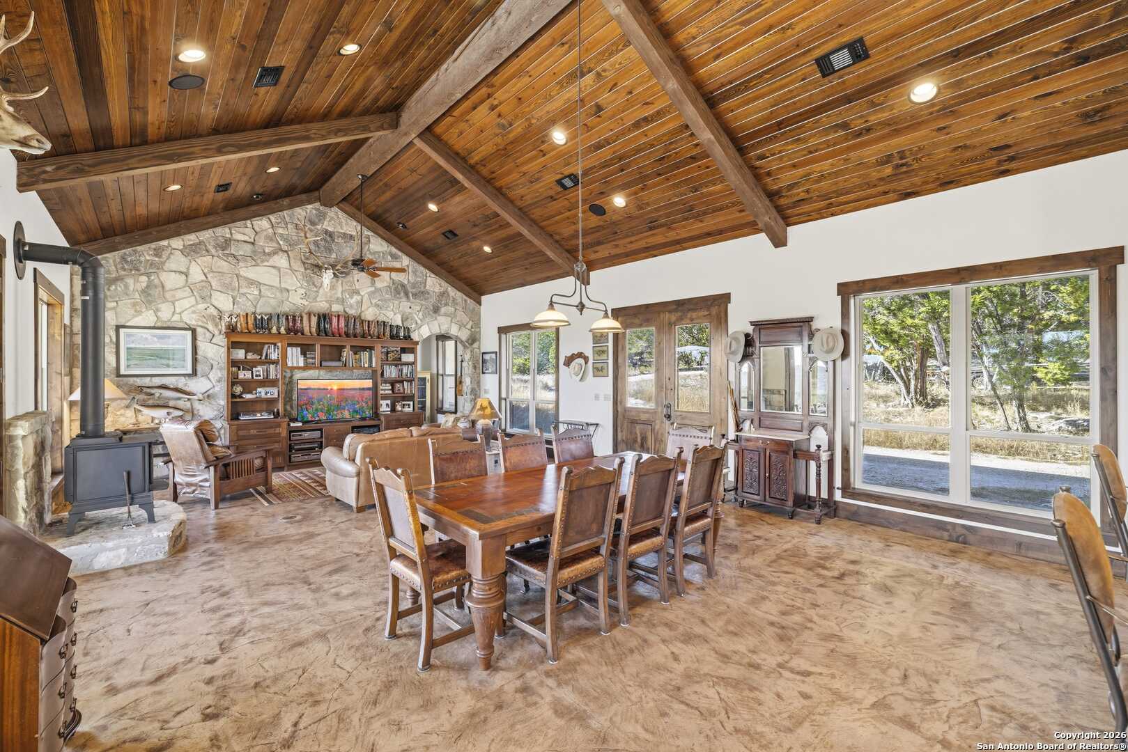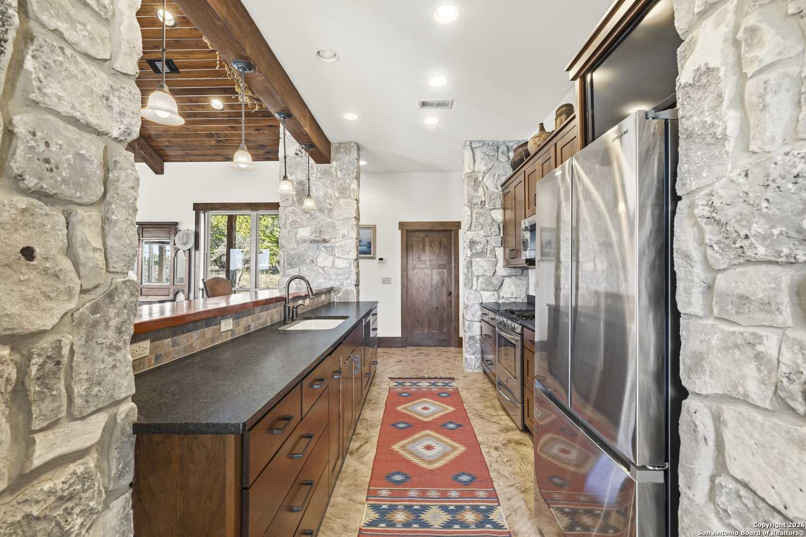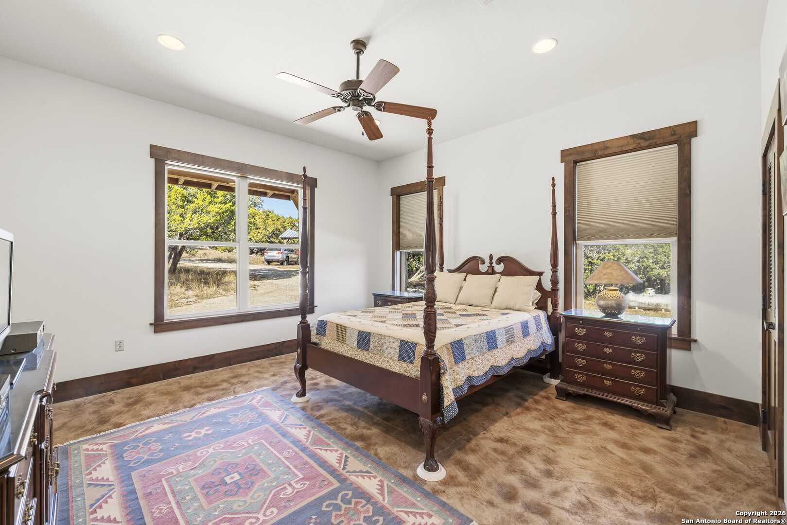 11.52 Ag Exempt Acres with Hill Country Views that truly take your breath away! The 2,825 sq. ft. residence features 3 spacious bdrms, each with its own private ensuite bath, offering comfort & privacy. Designed w/both style and functionality in mind, the home boasts soaring ceilings, an open-concept floor plan, distinctive stained floors & custom cabinetry. The chef's kitchen is highlighted by beautiful leathered granite countertops, a large pantry & seamless flow into the main living areas, perfect for entertaining. The split-bedroom layout provides an oversized primary suite complete w/additional space ideal for a home office, along w/direct access to both the front & back patios. Outdoor living is exceptional, w/expansive covered patios designed to take full advantage of the panoramic scenery. The back patio features a built-in BBQ area & striking stone fireplace, creating the perfect setting for relaxing & entertaining while enjoying Hill Country views. Additional amenities include a licensed septic system, an impressive rainwater catchment system, a two-car carport w/attached storage & an additional storage shed. Just 12 miles from Kerrville. Hill Country Living at its Best!