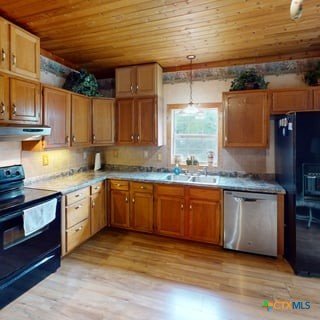 Charming Cottage-Style Home on an Oversized Lot This inviting 3-bedroom, 1.5-bath home sits on a .598-acre, tree-covered lot offering a spacious and peaceful setting right in town. The property backs up to a creek, where wildlife is frequently seen, adding to the home's unique charm. Inside, you'll find warm wood-accented ceilings, a generously sized living room with bay window and wood stove hook-up, and a functional layout that blends comfort and character. The kitchen opens to a large split-level deck with multiple sitting areas—perfect for enjoying the expansive backyard. The outdoor space is a true highlight, with a well-kept lawn, thoughtful landscaping, and two large storage buildings offering plenty of space for tools, hobbies, or extra storage. A durable metal roof adds to the lasting value of this special property.