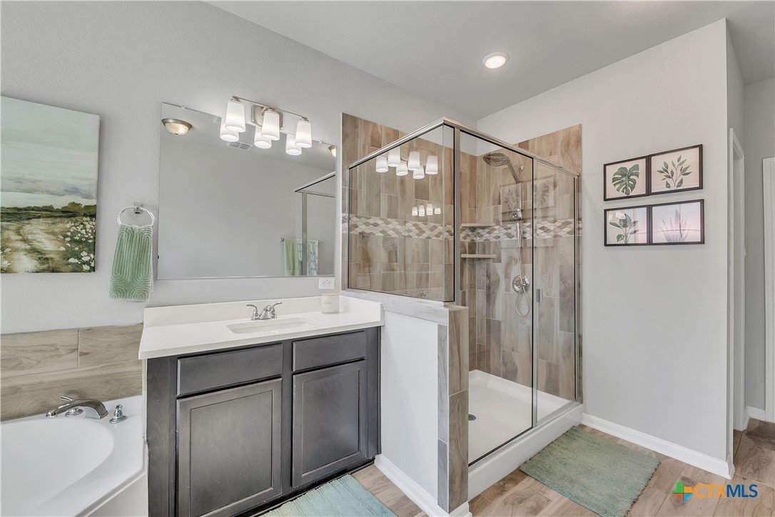 BACKYARD RETREAT!!! Sparkling in-ground pool and spa with tranquil waterfalls, a tanning ledge, and a fully equipped outdoor kitchen custom cabinetry, marble countertops, outdoor refrigerator. WELCOME HOME to this impressive 4-bedroom, 4.5-bath home perfectly situated on a quiet cul-de-sac in South Temple. Nestled on an oversized lot, this property is designed for both relaxation and entertaining. Features include: Indoor/Outdoor camera system, Alexa enabled blinds and light switches throughout home, under the kitchen sink water purifier, and full house water softener system. Smart home includes whole home wireless internet mesh router, security lighting 360 around home, app controlled pool pump, lighting, and fountain. Gourmet kitchen featuring custom backsplash, quartz countertops, LVP flooring, and upgraded lighting! The spacious primary suite overlooks the pool and offers dual vanities, and two expansive walk-in closets. Upstairs, a large second living area, three additional bedrooms, and flex room for office, fitness, crafts, etc. Two full baths provide plenty of space and flexibility for guests or family. Pet owners will love the private dog run and custom dog house! Located just minutes from Baylor Scott & White Medical Center, H-E-B, Lowe’s, and Temple Mall. Enjoy luxury, convenience, and outdoor living at its best!