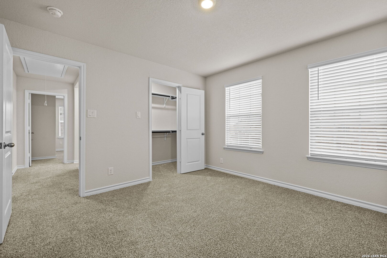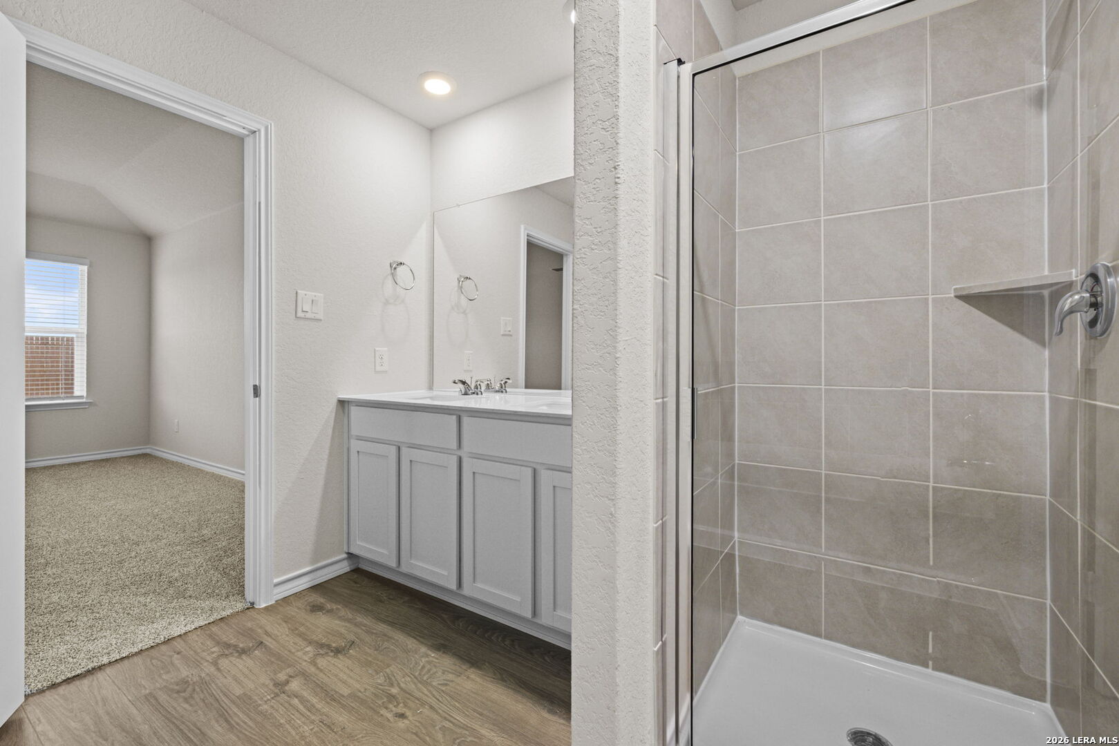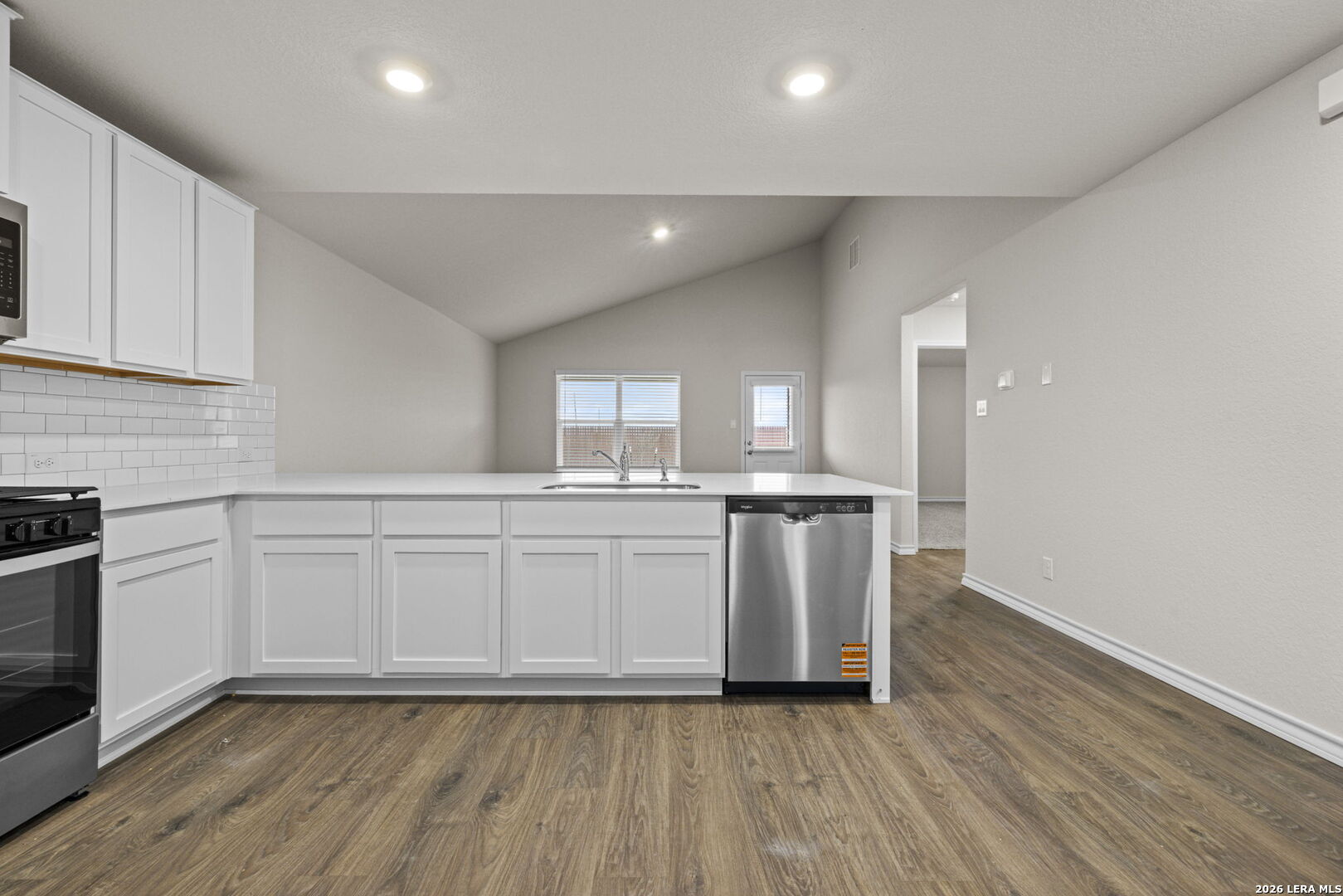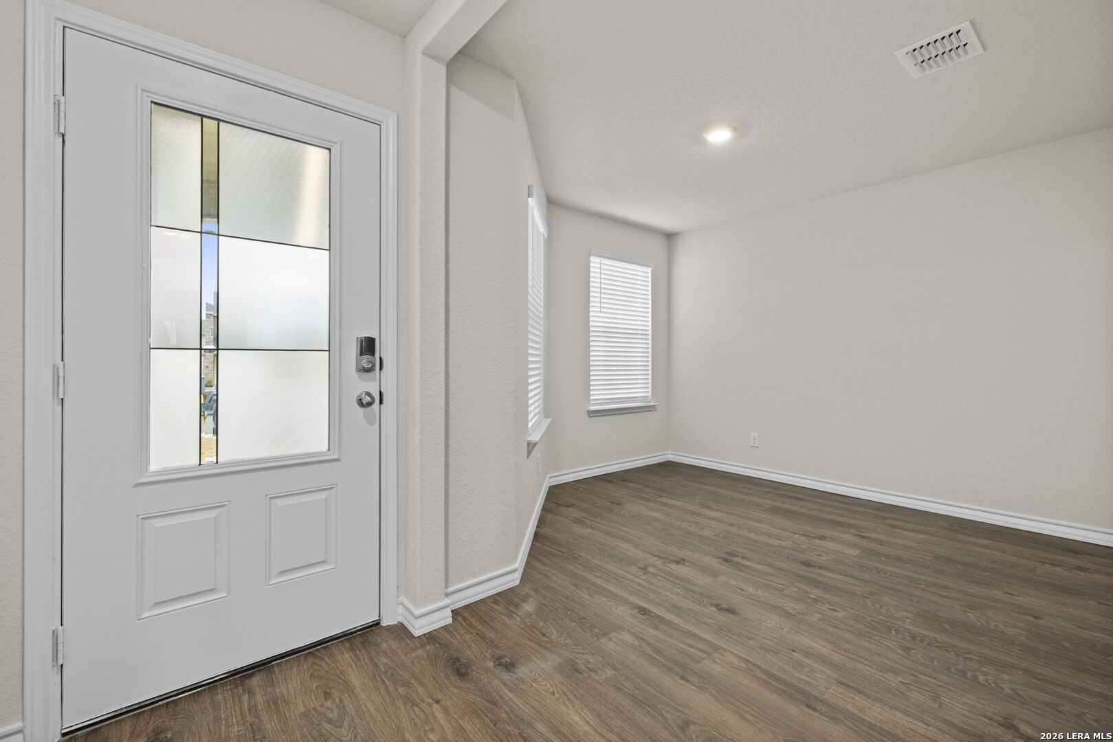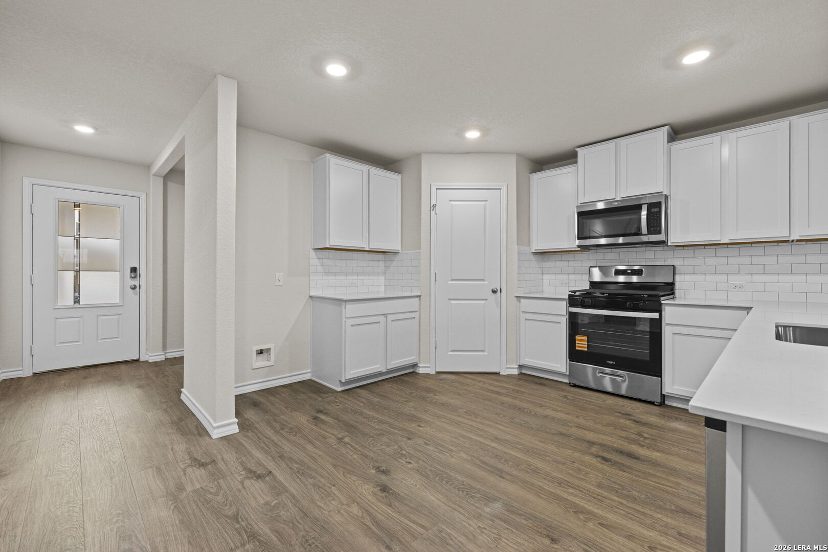 Welcome to The Walsh, a stunning two-story home located at Avenida in Converse, TX. A spacious covered front porch welcomes you inside this 4 bedroom, 2.5 bathroom home where you'll find 2323 square feet of living space. Follow the entry hallway past a beautiful formal dining room and into the open kitchen featuring stainless steel appliances, quartz countertops, stylish white subway tile backsplash, spacious corner pantry, tons of cabinet space and a large eat-in breakfast bar. The kitchen opens to a spacious living room, complete with a stunning vaulted ceiling and easy-maintenance hard surface flooring. The living room extends to a lengthy covered back patio, perfect for outdoor dining. The private main bedroom suite is located downstairs off the family room and offers dual vanities, a separate tub and walk-in shower, ceramic tile flooring, and a storage-friendly walk-in closet with shelving. Head upstairs to find a spacious game room or office area, a second full bath, and three large secondary bedrooms with quality carpet and walk-in closets. Additional features of The Walsh include 2-inch faux wood blinds throughout the home, luxury vinyl plank flooring in entryway, family room, kitchen, and dining room, ceramic tile at all bathrooms and utility room, and pre-plumb for water softener loop. You'll enjoy added security in your new home with our Home is Connected features. Using one central hub that talks to all the devices in your home, you can control the lights, thermostat and locks, all from your cellular device.