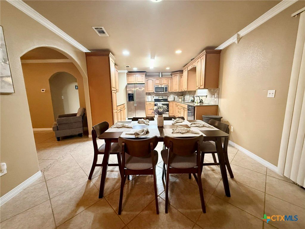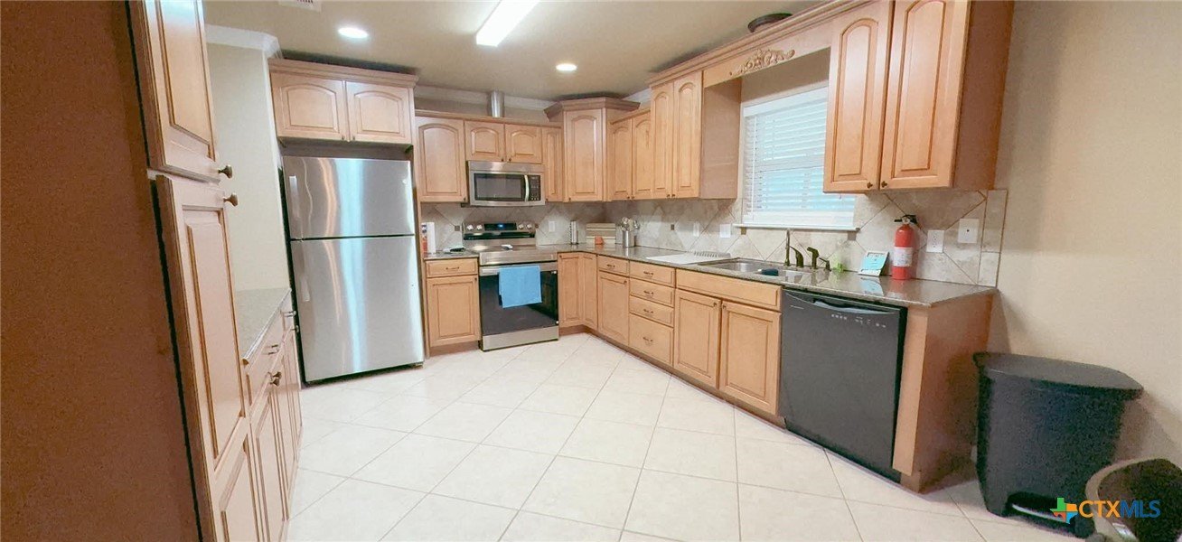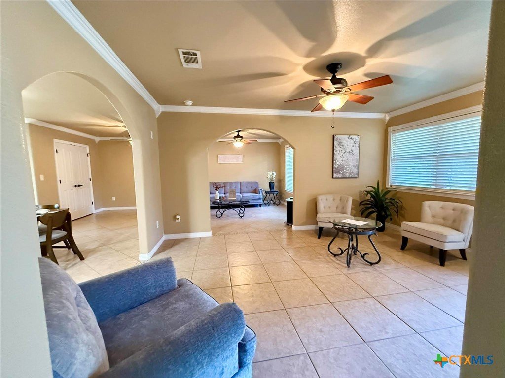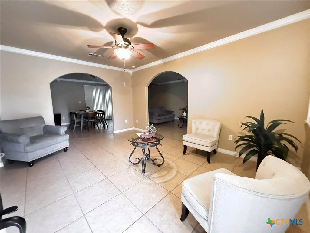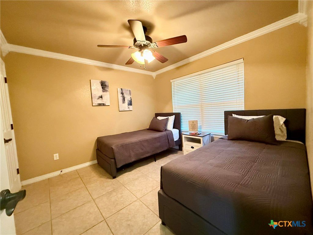 Relax with the whole family at this peaceful fully furnish place to stay. Fully renovated home. Three bedrooms, two living areas, two baths, spacious kitchen and dining area, utility closet. Front Porch, Covered patio and fenced yard. TVs in living room and 2 bedrooms. Spacious and comfortable rooms. No carpet, tiled floors. Ceiling fans in all rooms. 2 rooms with TVs. Nightstands have charging ports and lights.