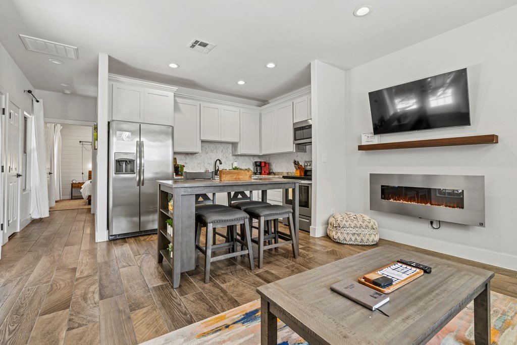 Looking for a second home in the Texas hill country? Eagle Street Retreat features a thoughtfully designed space with stylish finishes and is the perfect short-term rental opportunity. Ideal for couples or small families, the home comfortably sleeps four guests with its cozy bedroom and spacious full bathroom. Nestled near historic Main Street, you'll enjoy the convenience of local shops, dining, and attractions just a stroll away. After exploring the vibrant surroundings, unwind around the fire pit or in the inviting hot tub, offering a relaxing retreat under the stars. This property combines comfort and charm, making it an excellent investment for those seeking a lucrative rental property or a serene escape in the heart of Texas Hill Country. Don't miss your chance to own this enchanting cottage – where new memories are made and Texas hospitality welcomes you.