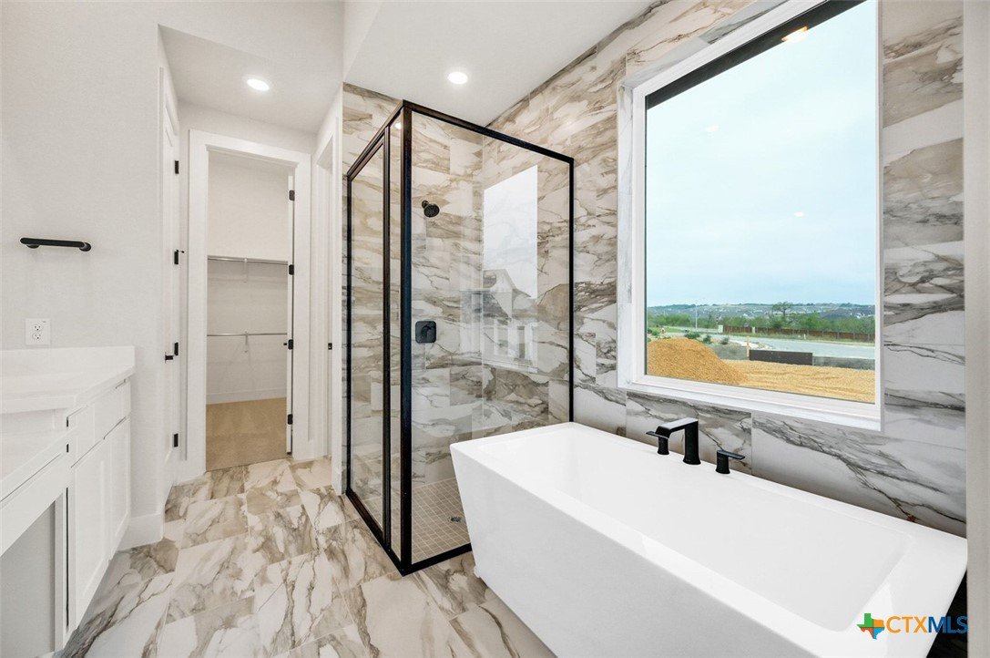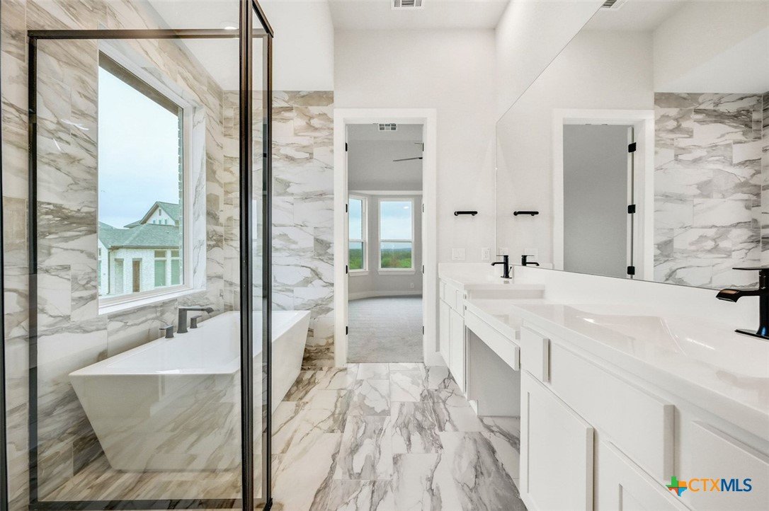 Beautiful Continental Plan one-story home with spacious layout. Four bedrooms, three full baths, and a thoughtful floor plan featuring an extended outdoor living space with sliding glass doors leading to the patio. The primary suite is both elegant and relaxing — bay window plus freestanding tub and separate shower. High quality finishes inside and out including rear brick and designer touches. Homestead’s full-amenity resort community offers the best of comfort and convenience.