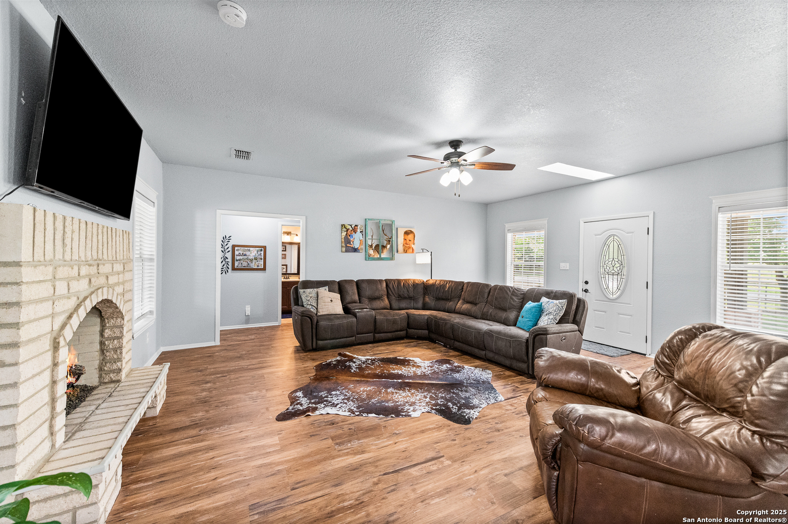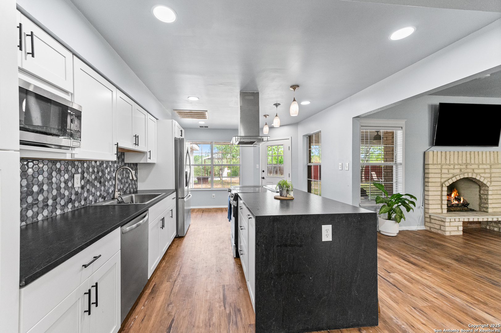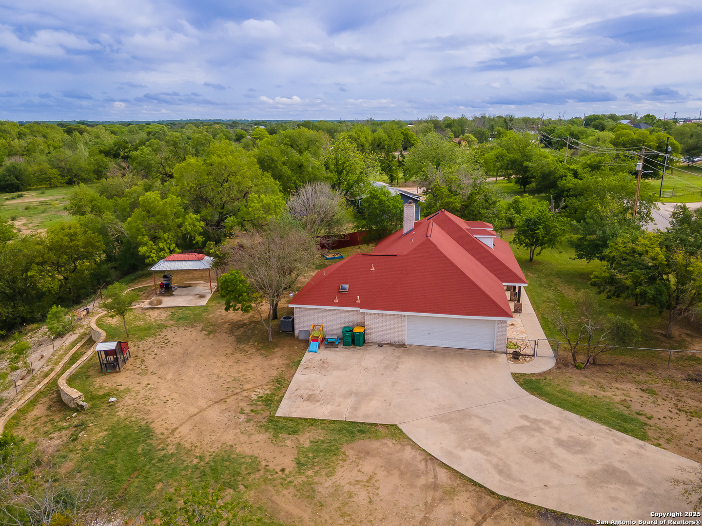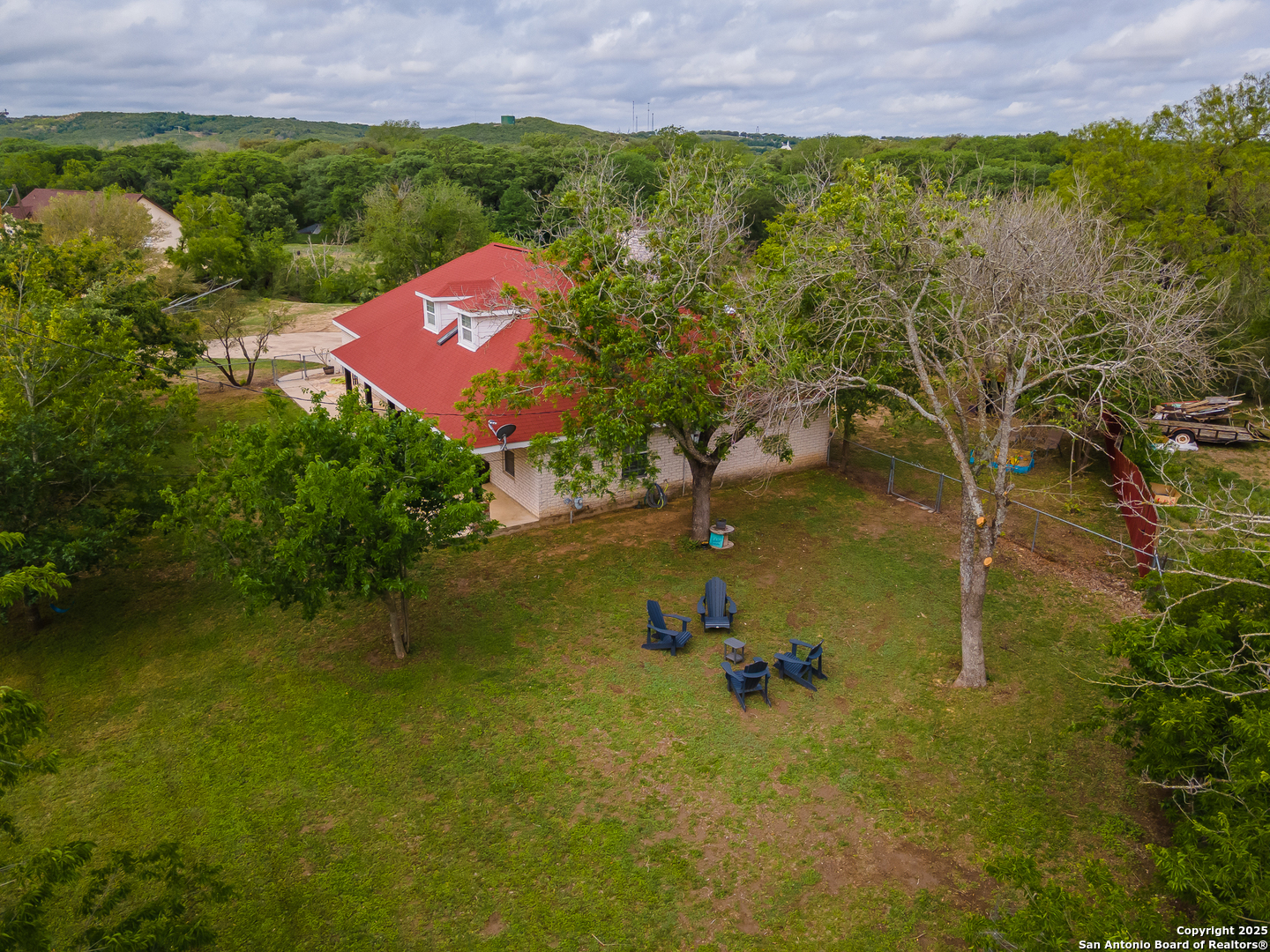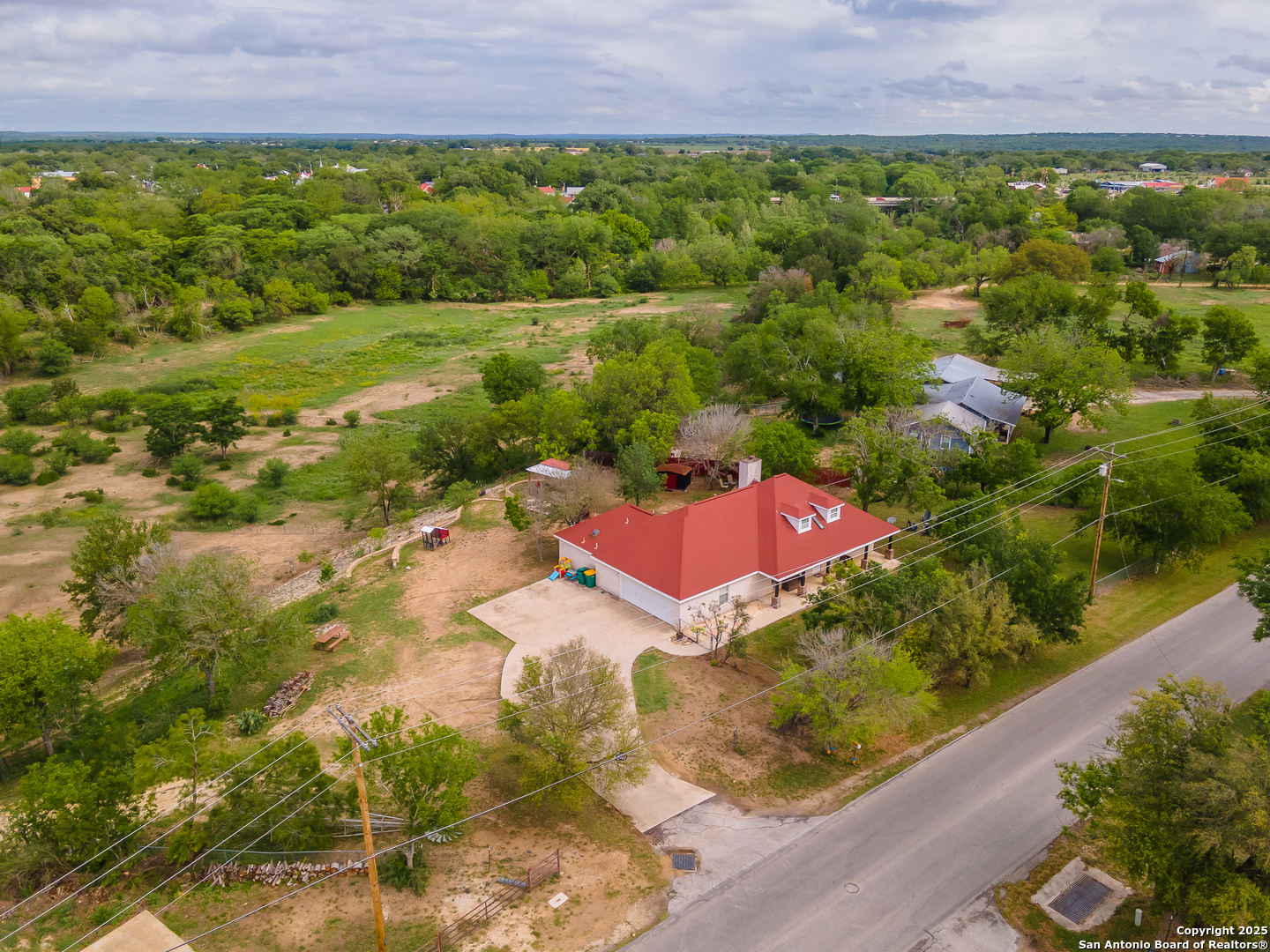 Updated 3 bed, 2 bath home situated on 2.3 acres just outside of Castroville, perched on a high bank overlooking a beautiful stretch of the Medina River! With 180+ feet of river frontage and mature trees throughout the property, there's plenty of room to relax or entertain outdoors. Inside, you'll find 2,175 sq ft of living space, including an upstairs game room and a walk-in attic with phenomenal storage. The layout includes a split master, luxury vinyl plank flooring throughout, a gas fireplace, and a fully updated kitchen. It's a great blend of comfort, space, and a peaceful riverfront setting-all in a prime location!