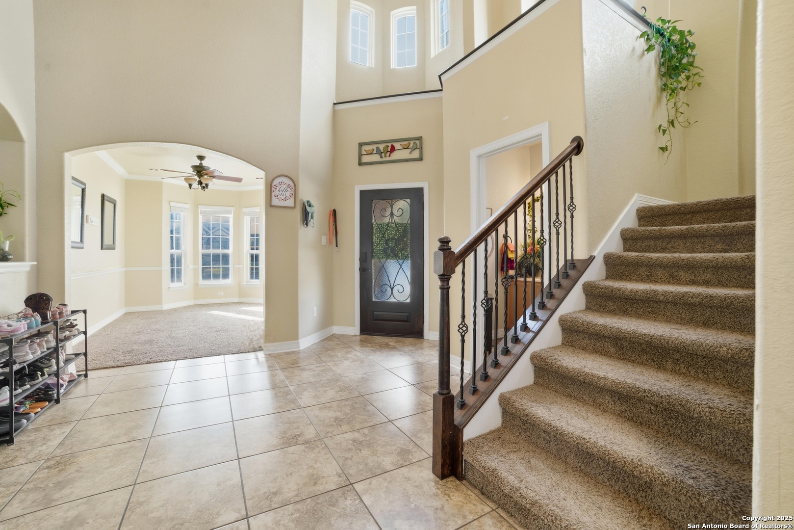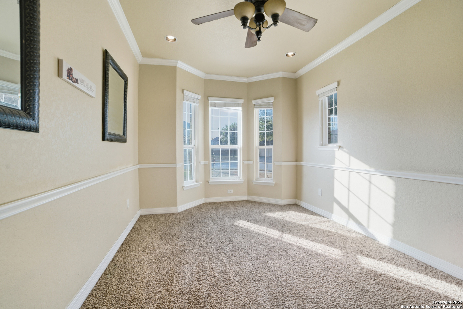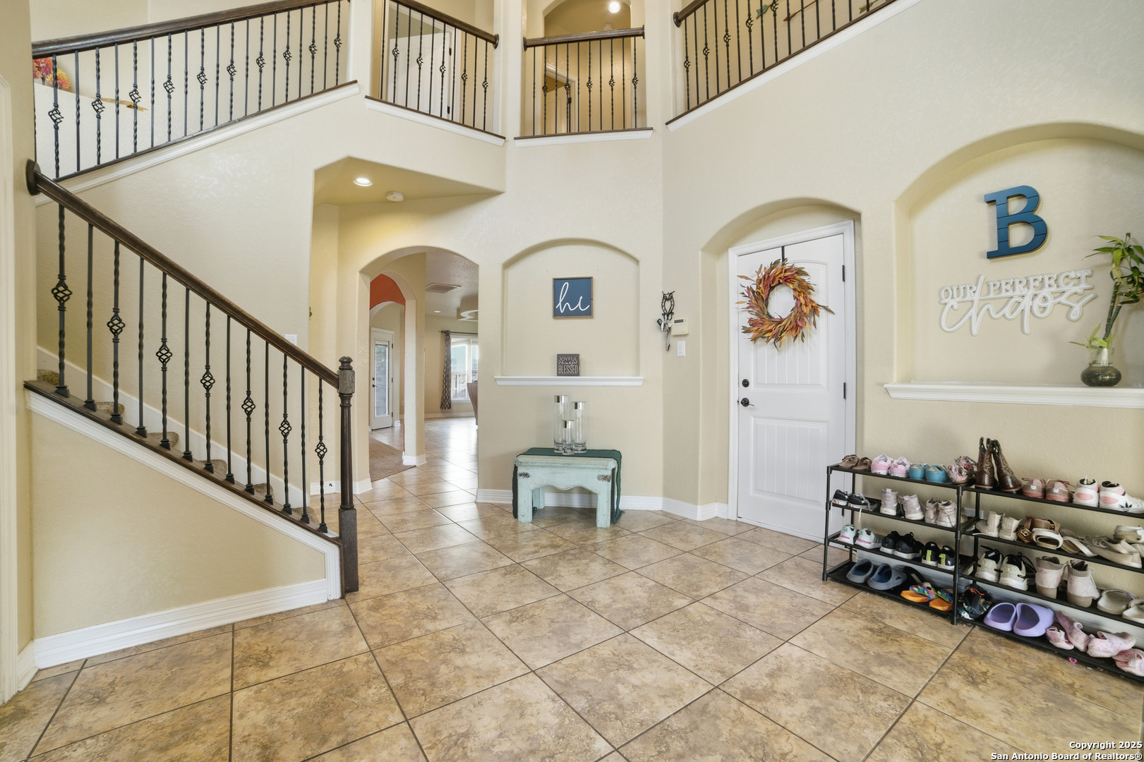 Beautiful Two-Story New Leaf Home with Grand Foyer and Spacious Layout Welcome to this stunning 4-bedroom, 3.5-bath New Leaf home built in 2013, offering style, comfort, and space in every detail. Step into the impressive foyer with soaring nearly 20-foot ceilings that set the tone for the rest of this elegant residence. The first floor features a private office-perfect for working from home-and a separate formal dining room ideal for gatherings and entertaining. The open-concept living area flows seamlessly into the kitchen, creating a warm and inviting space for family and friends. Upstairs, you'll find a large media room for movie nights and relaxation, along with all four spacious bedrooms. The primary suite is truly a retreat, boasting a huge bedroom, luxurious ensuite bath, and an oversized walk-in closet. Built with quality and designed for modern living, this home combines thoughtful architecture with timeless comfort.