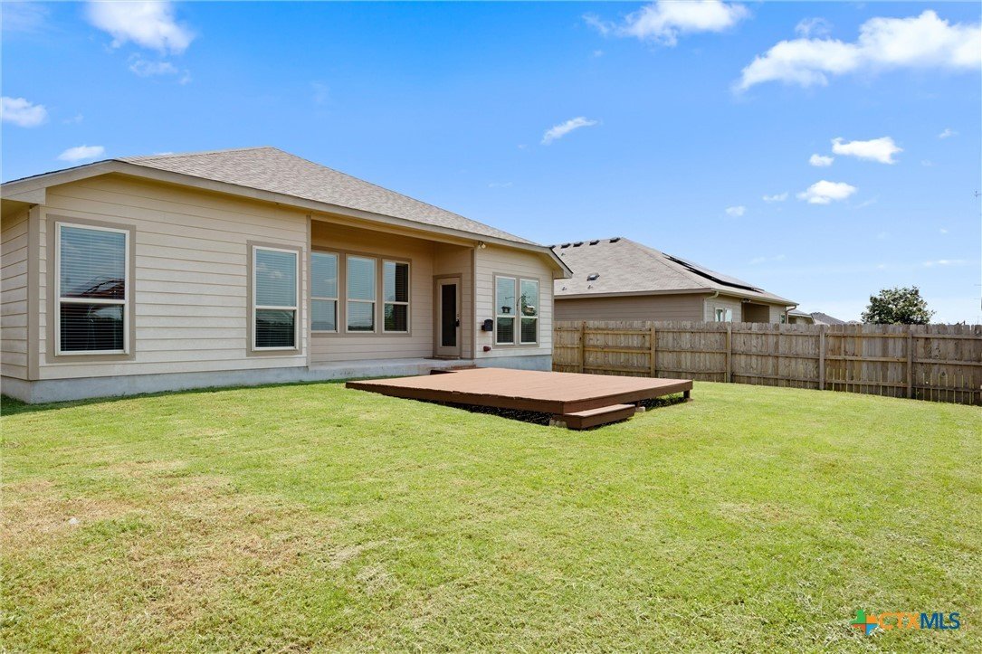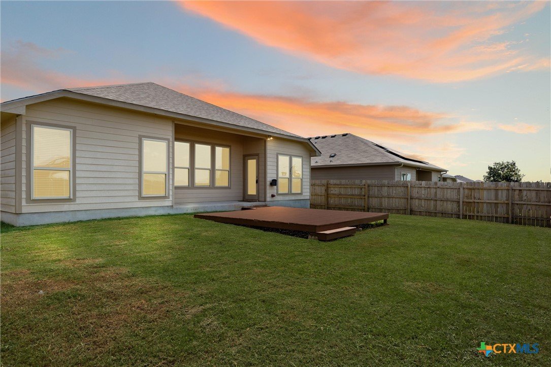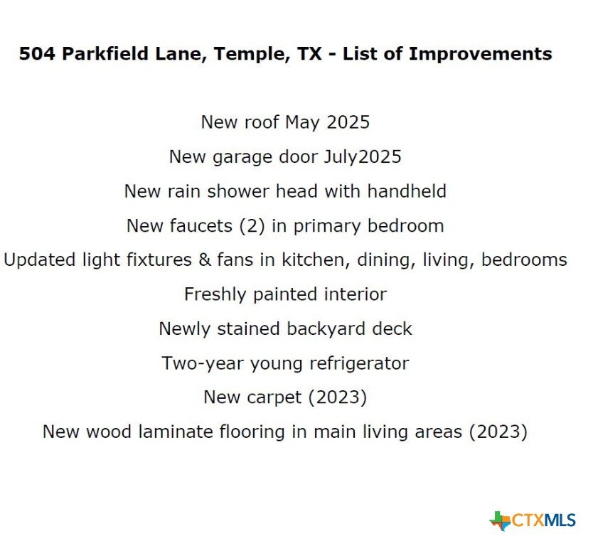 Well-cared-for home in West Temple’s highly sought-after Westfield community. This neighborhood offers a true sense of community with beautifully maintained parks, walking trails, recreational spaces and in close proximity to top-rated schools, shopping, dining and medical facilities. **BE SURE TO CHECK OUT THE PROPERTY WEBSITE FOR LINKS AND INFO ON SCHOOLS AND AREA HIGHLIGHTS* This move-in ready 3 bedroom, 2 bath home, home features fresh interior paint, new carpet (2023), wood-look laminate flooring (2023), and a freshly stained backyard deck. Recent updates also include a NEW roof (May 2025), NEW garage door (July 2025), updated light fixtures and ceiling fans throughout, new faucets, 2-year-young refrigerator and full exterior irrigation. Open-concept layout with spacious living, kitchen, dining areas and large windows providing a healthy amount of natural light. The kitchen offers a very generous amount of custom cabinetry, granite countertops, a large copper farmhouse sink, a breakfast bar, a step-in pantry and large eat-in dining space with widows looking out to the back yard space. The private primary suite includes an ensuite bath with dual sinks, a garden tub, a separate walk-in shower and a large walk-in closet. Additional highlights include a dedicated laundry room, ceiling fans in every room, and high-speed internet. Step outside to a large backyard deck and private fenced yard—beautiful unobstructed Texas sunsets with NO back neighbors —perfect for outdoor relaxing or entertaining. All-electric and easy to maintain, this home checks all the boxes in one of West Temple’s most desirable neighborhoods.
