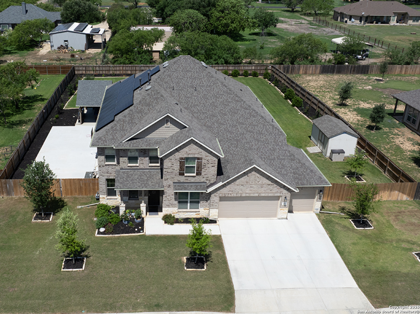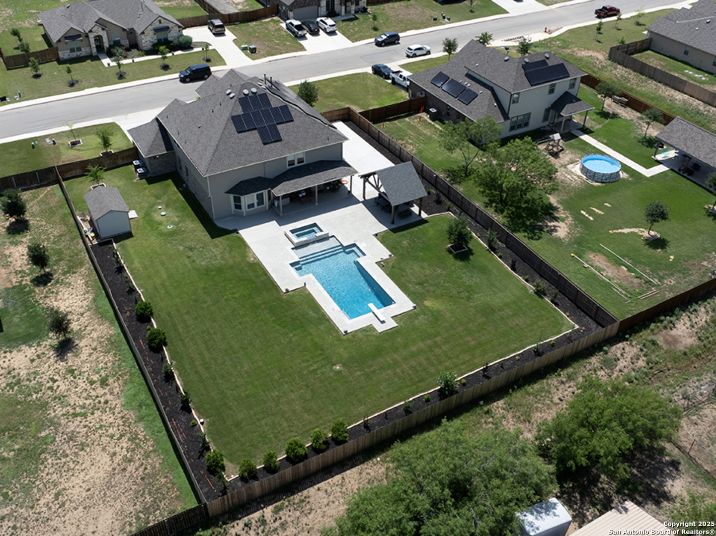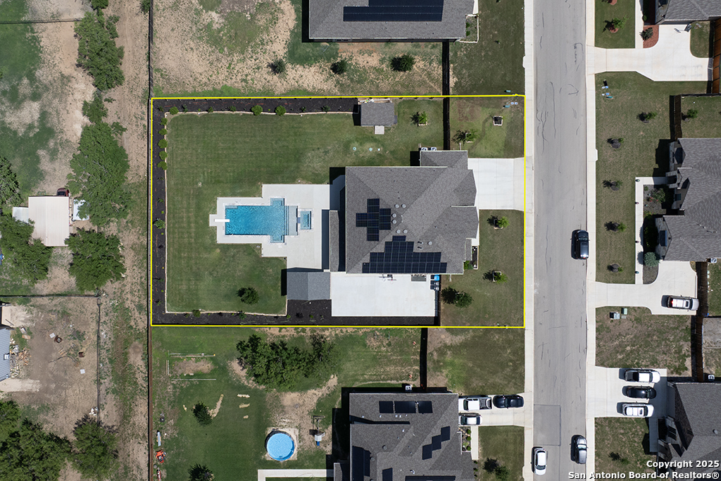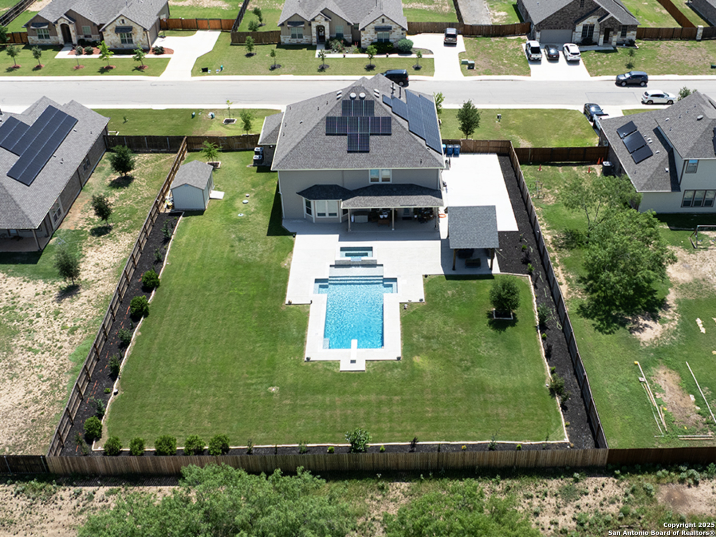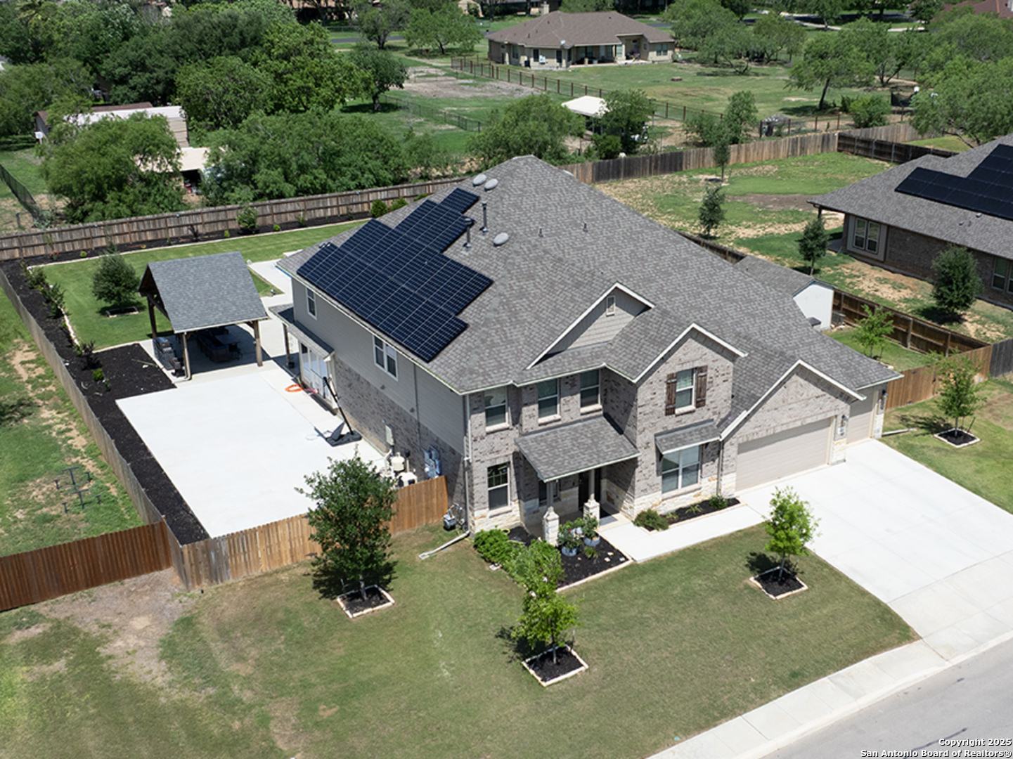 Seller to pay $5K in the buyer's closing costs!! Breathtaking 5-bedroom located in the desirable Annabelle Ranch community has a welcoming entrance, open floor-plan, high ceilings, offering comfort, charm and style. The kitchen is designed for both cooking and entertaining, featuring ample prep countertop space, striking just the right balance between being an entertainer's dream and enjoying family time. The primary suite is downstairs looking out to your backyard paradise is a true retreat, upstairs game room, and media room. Exterior features offer the perfect setting for families who love outdoor living, resort-style pool, pavilion, outdoor kitchen, sitting on half-acre beautiful well-manicured back yard, fully fenced, 16.15 kWh solar panel system, in-ground septic field, 30k gallon self-cleaning pool, 3 car garage, EV charger, tankless water heater, extra storage attic. Walmart 7minutes, HEB 14minutes they both offering delivery services