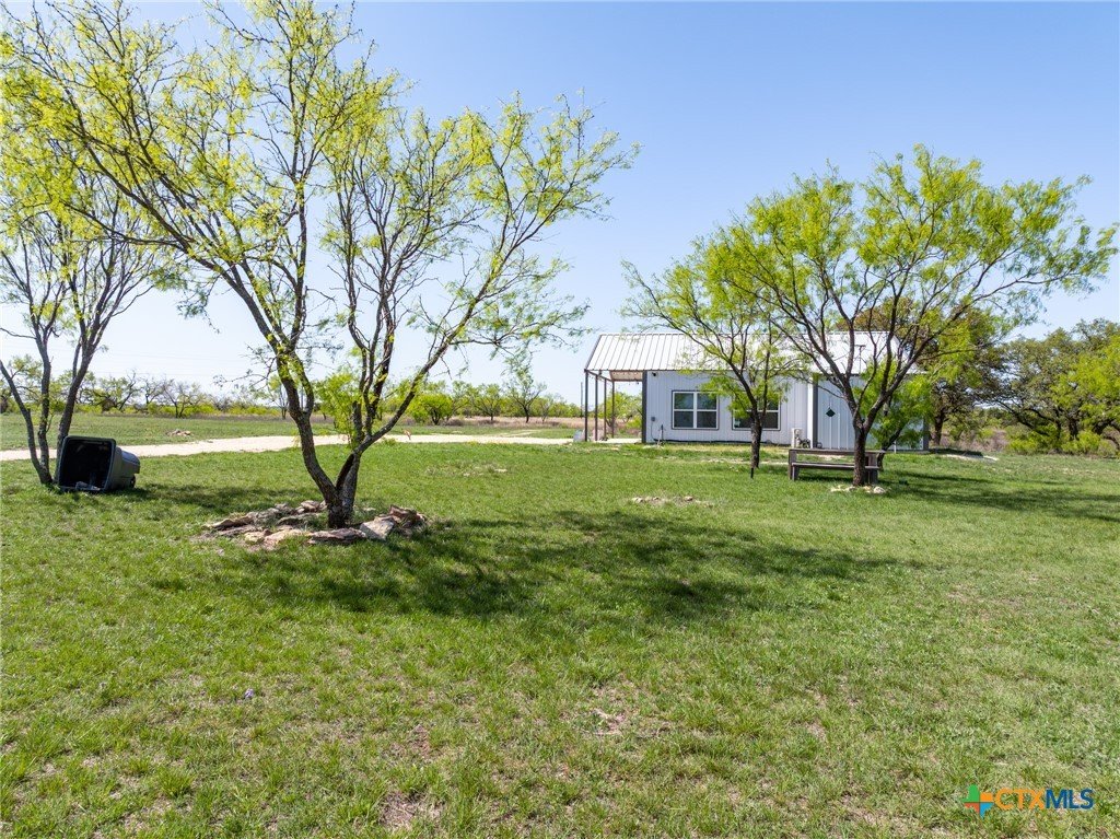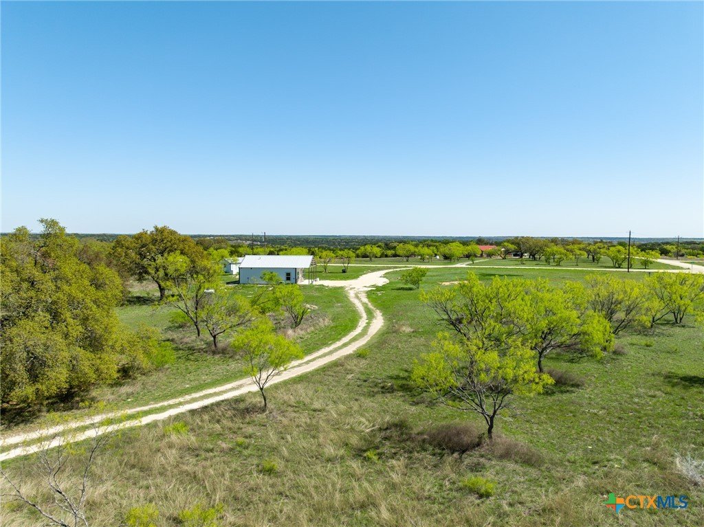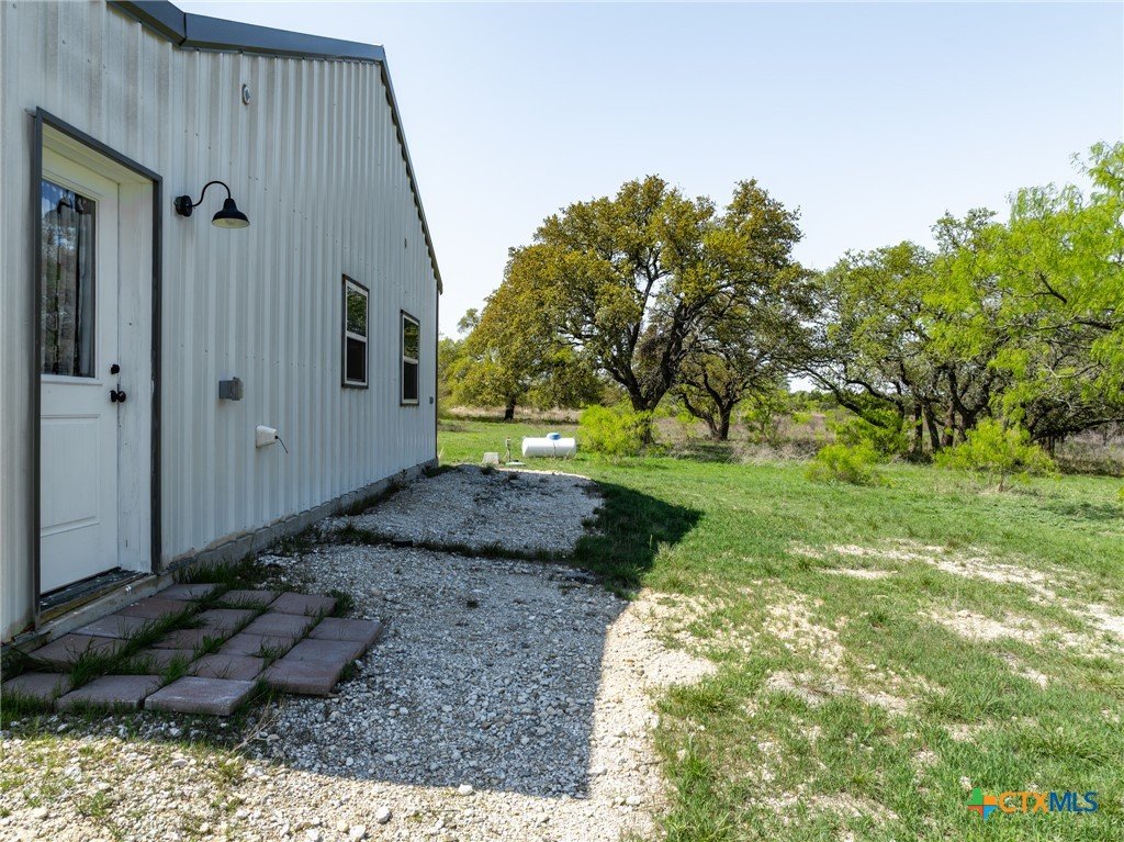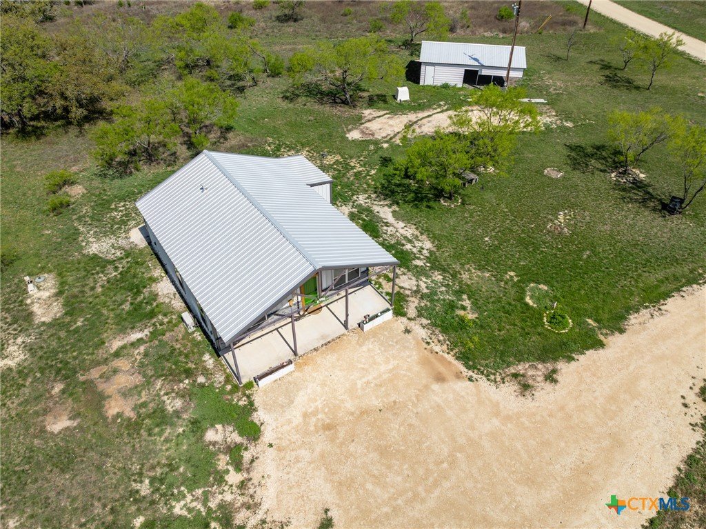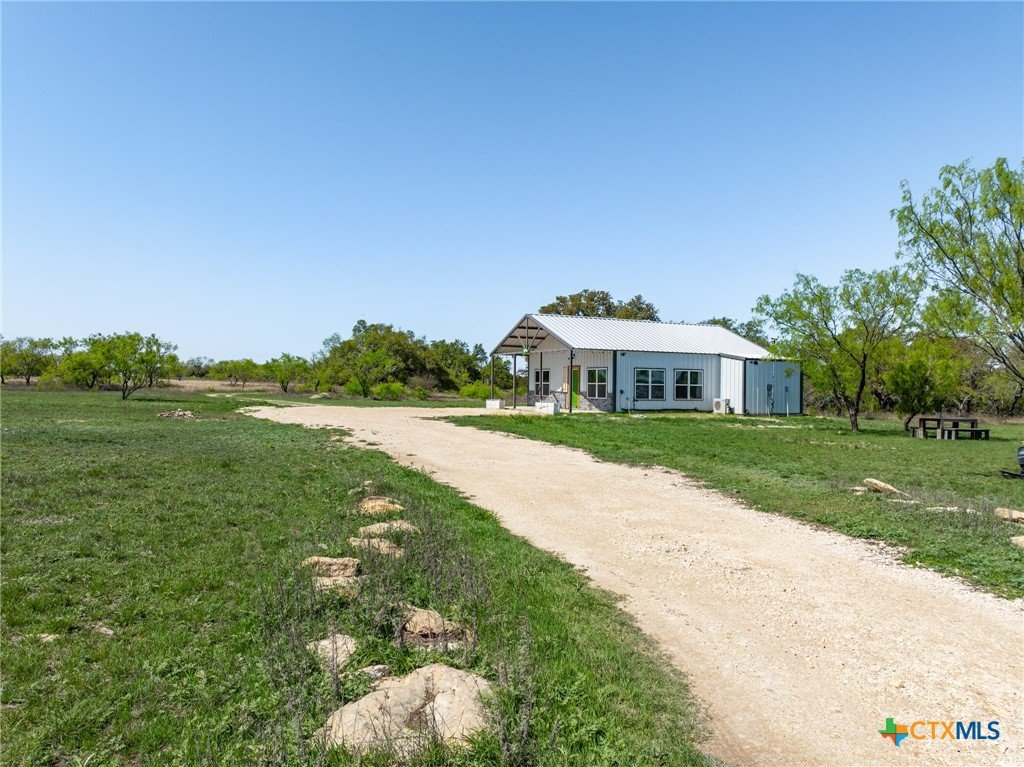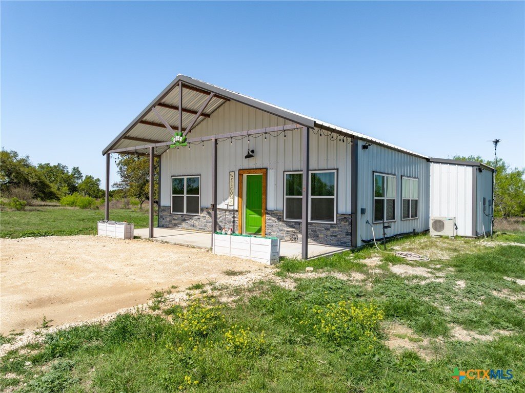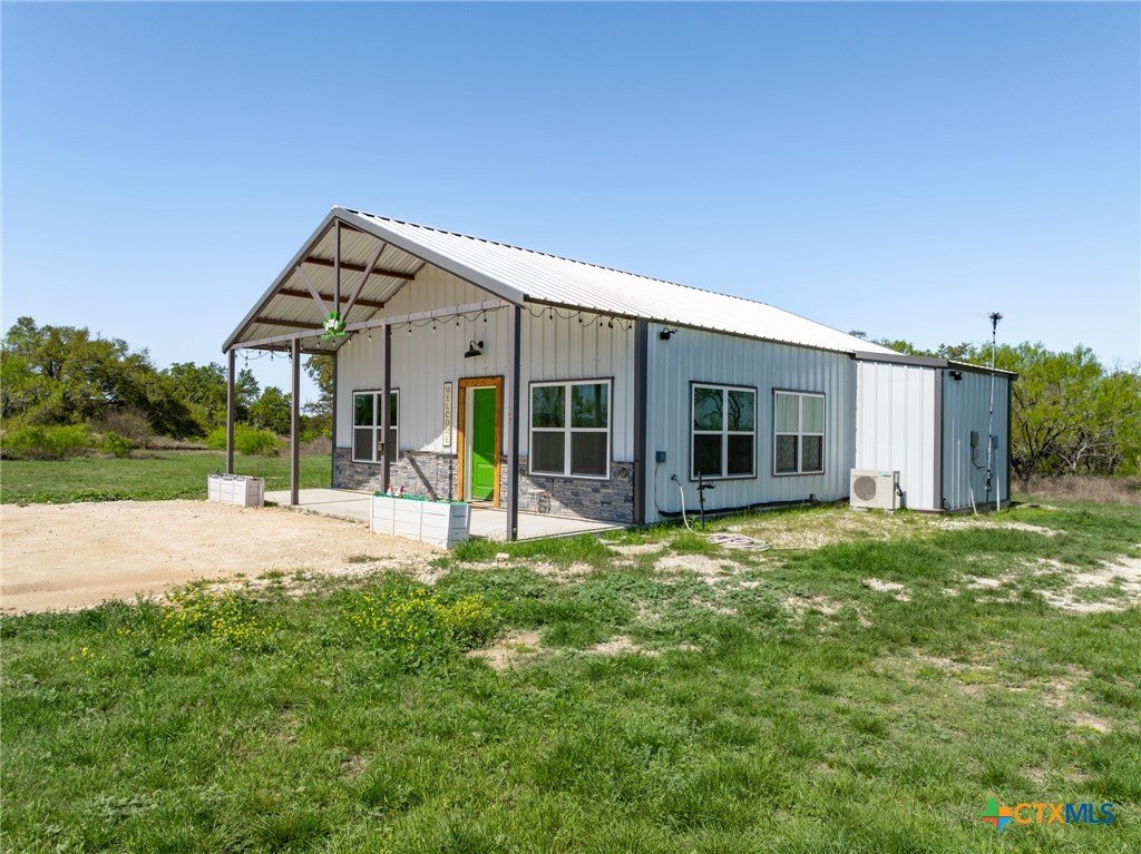 This stunning 10.01-acre lot is the perfect canvas for your future, featuring a modern single-family residence that combines comfort and style in a pristine setting. The 1,131sq. ft. metal mini barndominium, built in 2021, showcases a durable metal roof and a raised solid foundation that has been tested and compacted to 90% by a certified third party, ensuring long-lasting quality. Inside, you'll find a thoughtfully designed space with 1 spacious bedroom and 1 full bathroom equipped with a luxurious shower and separate tub, plus an additional half bathroom for guests. The open living and kitchen area enhances connectivity, perfect for entertaining or relaxing. A separate pantry and laundry/mudroom add convenience, while ample closet space and attic storage provide all the room you need for your belongings. Experience optimal climate control with two mini-split heating and cooling units for the living area and bedroom. Stay comfortable year-round with foam insulation, a tankless water heater, and energy-efficient double-pane windows. Enjoy the elegance of stained concrete flooring and the refreshing breeze from ceiling fans in the living room, bedroom, bathroom, pantry, and laundry. This property comes fully equipped with essential appliances, including a propane stove, dishwasher, refrigerator, washer and dryer, and microwave. Relax and enjoy the views from your 8x30 (concrete) front porch. Step outside to discover a 22x12 shed with a 20 ft awning, offering additional storage or workspace. Plus, there's a dedicated RV parking pad with 110 and 220 RV hookups, providing added convenience for your adventures. Water well on the property. Fiber Optic Internet (CTTC), Electricity from Hamilton County Electric, propane from Farmers Propane. Property is in the Evant ISD School District and is centrally located: Dallas 2.5 hrs, Austin 1.5 hrs, Waco 1 hr, Lampasas 35 min, Hamilton 20 min, Gatesville 30 min.