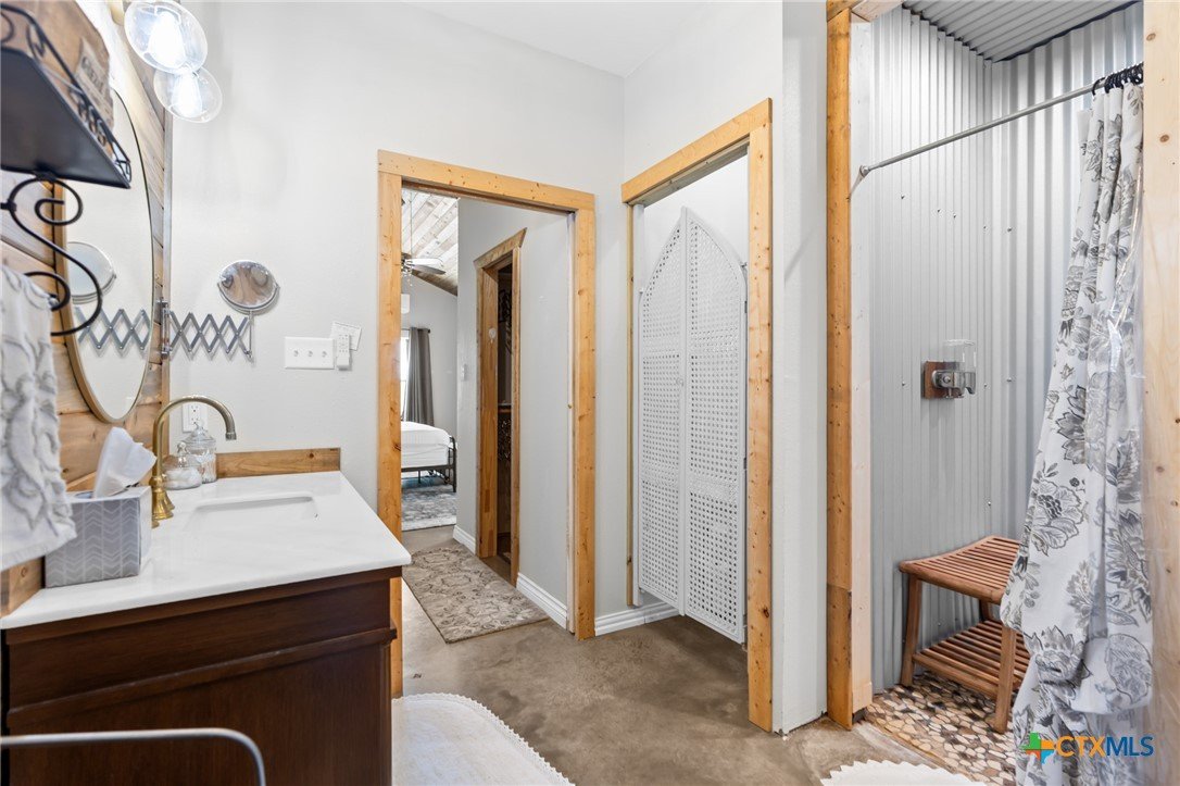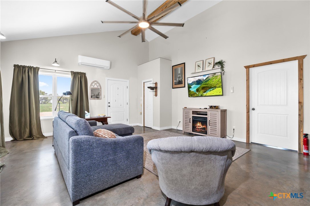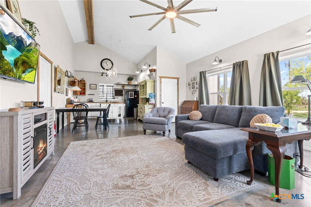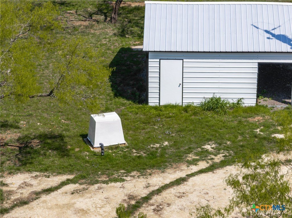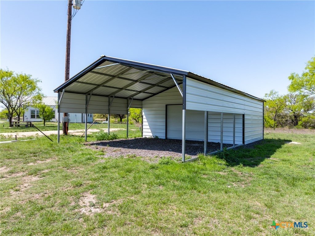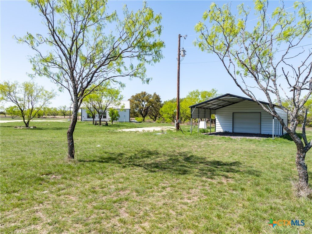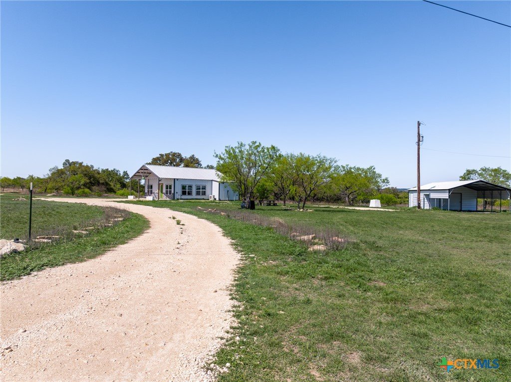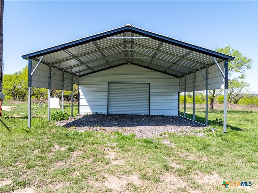 This stunning 10.01-acre lot is the perfect canvas for your future, featuring a modern single-family residence that combines comfort and style in a pristine setting. The 1,131sq. ft. metal mini barndominium, built in 2021, showcases a durable metal roof and a raised solid foundation that has been tested and compacted to 90% by a certified third party, ensuring long-lasting quality. Inside, you'll find a thoughtfully designed space with 1 spacious bedroom and 1 full bathroom equipped with a luxurious shower and separate tub, plus an additional half bathroom for guests. The open living and kitchen area enhances connectivity, perfect for entertaining or relaxing. A separate pantry and laundry/mudroom add convenience, while ample closet space and attic storage provide all the room you need for your belongings. Experience optimal climate control with two mini-split heating and cooling units for the living area and bedroom. Stay comfortable year-round with foam insulation, a tankless water heater, and energy-efficient double-pane windows. Enjoy the elegance of stained concrete flooring and the refreshing breeze from ceiling fans in the living room, bedroom, bathroom, pantry, and laundry. This property comes fully equipped with essential appliances, including a propane stove, dishwasher, refrigerator, washer and dryer, and microwave. Relax and enjoy the views from your 8x30 (concrete) front porch. Step outside to discover a 22x12 shed with a 20 ft awning, offering additional storage or workspace. Plus, there's a dedicated RV parking pad with 110 and 220 RV hookups, providing added convenience for your adventures. Water well on the property. Fiber Optic Internet (CTTC), Electricity from Hamilton County Electric, propane from Farmers Propane. Property is in the Evant ISD School District and is centrally located: Dallas 2.5 hrs, Austin 1.5 hrs, Waco 1 hr, Lampasas 35 min, Hamilton 20 min, Gatesville 30 min.