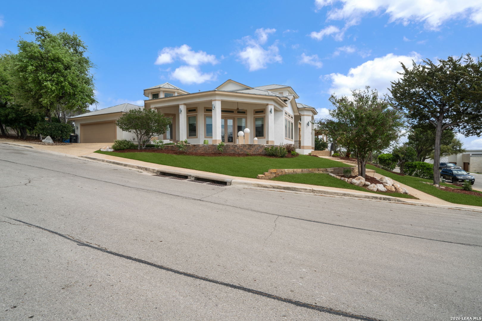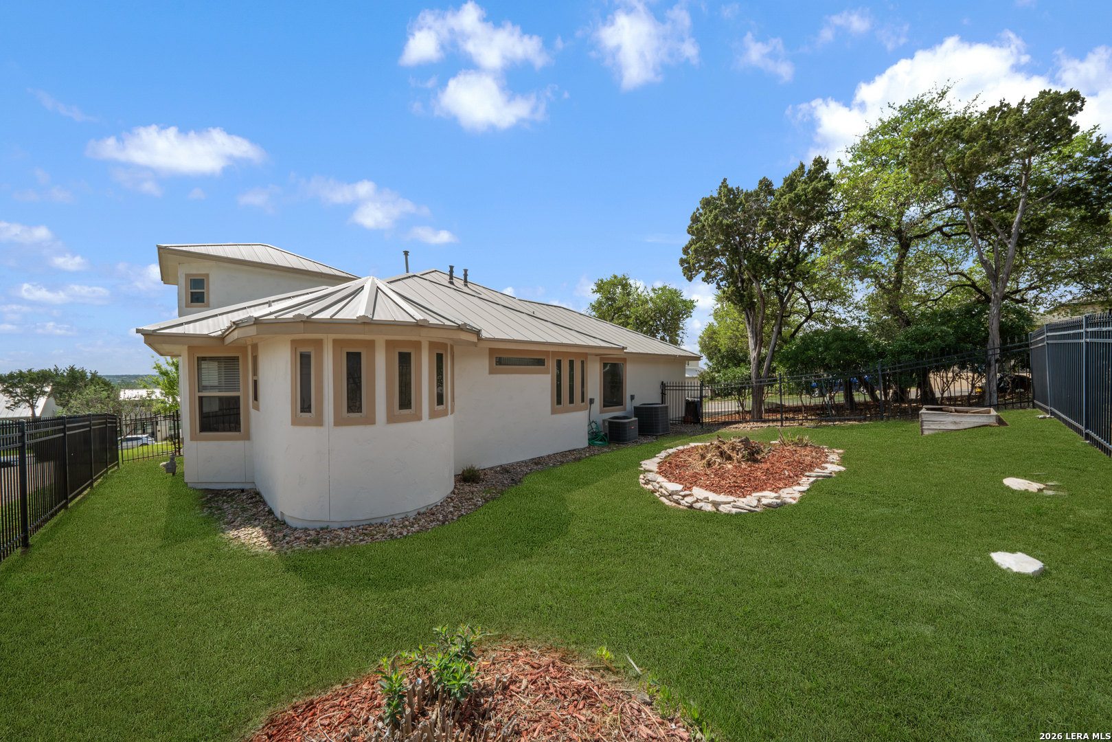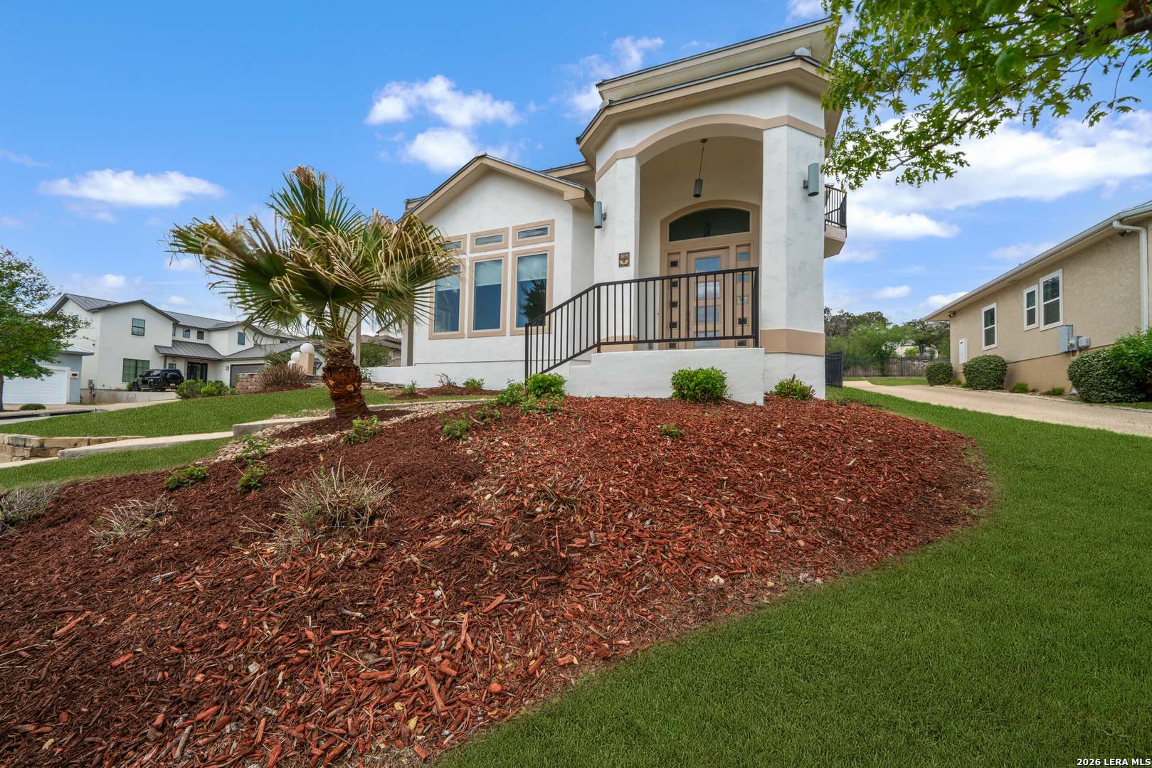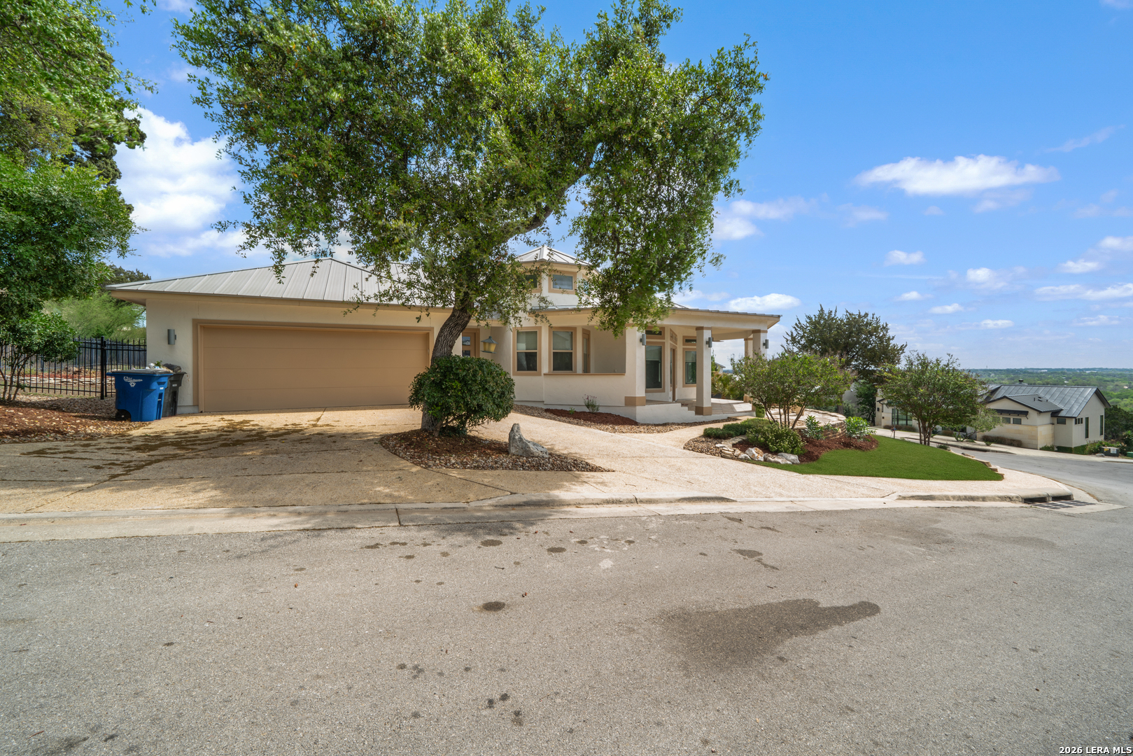 This one of a kind, timeless designed custom home residing on the coveted New Braunfels "Hill" in Mission Ridge boasts unique features throughout. Nestled on a picturesque corner lot in the heart of New Braunfels, 505 Persimmon Trail epitomizes luxurious modern living with breathtaking views and impeccable craftsmanship. As you approach, the stucco exterior and elegant wrought iron fence set the tone for the sophistication within. A sleek metal roof crowns this architectural masterpiece, hinting at the quality and attention to detail found throughout. Step inside to discover an open living space bathed in natural light throughout this home. Schedule today not to miss your opportunity to purchase this Gem of a home.